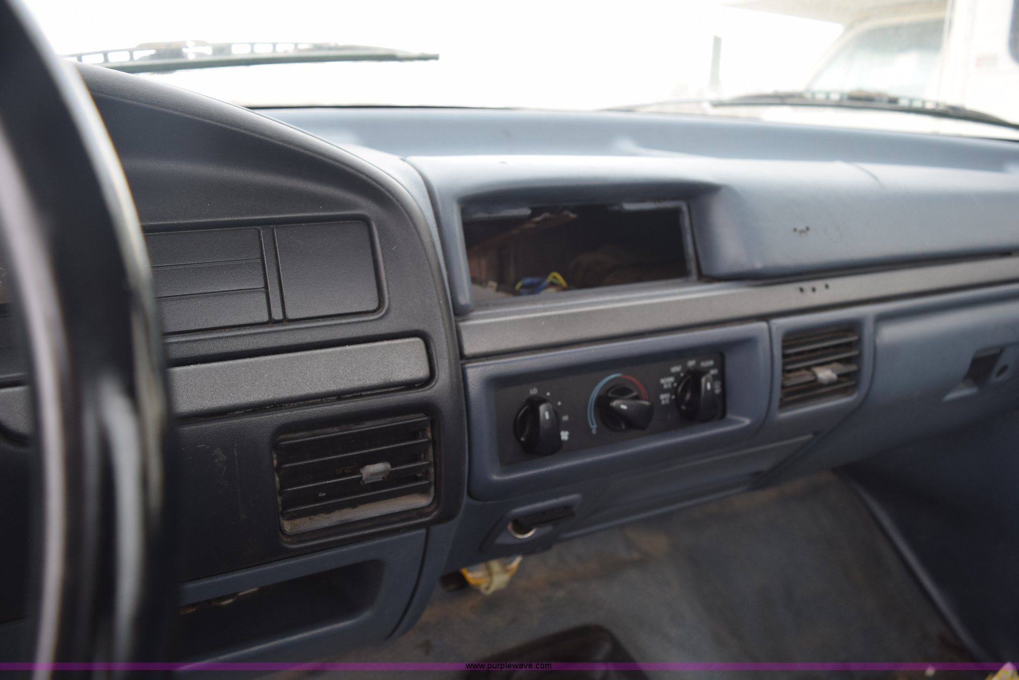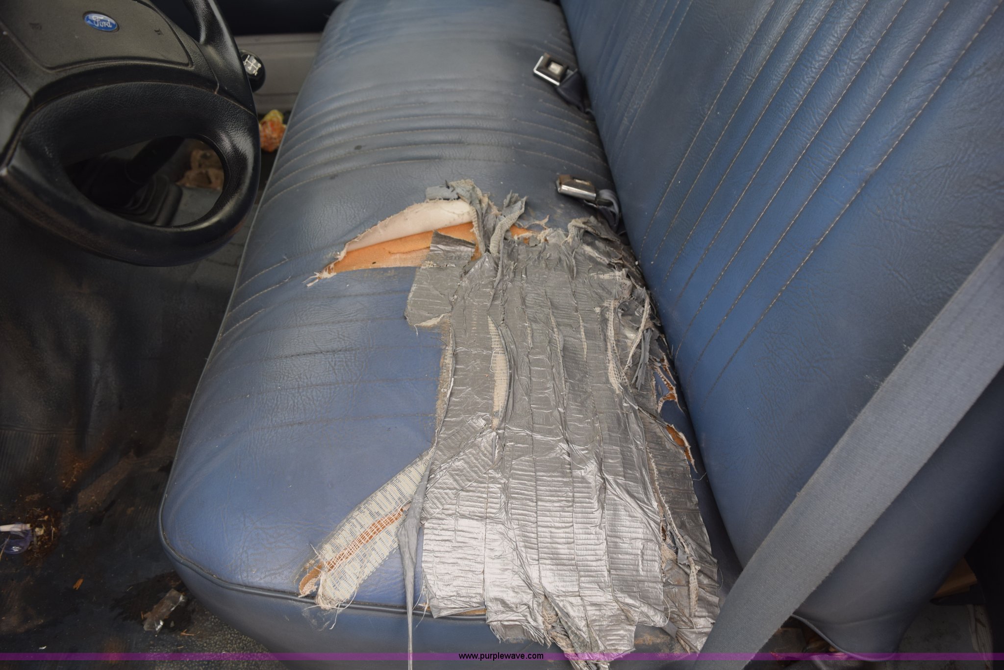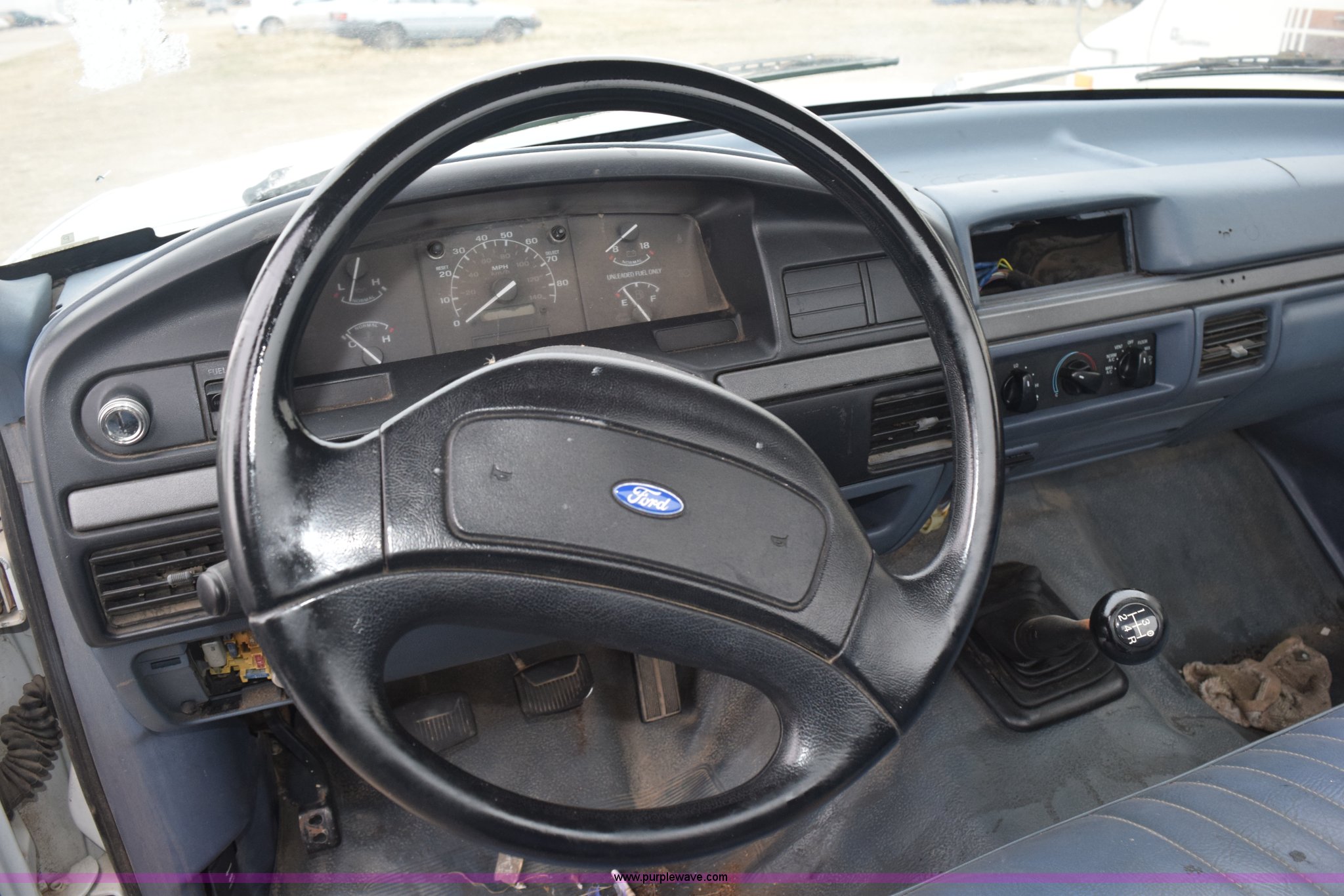 Purple Wave is selling a used 1/2 Ton Pickup or Van in Kansas. This item is a 1993 Ford F150 XL pickup truck with the following: Unknown miles on odometer, 4.9L L6 OHV 12V gas engine, Four speed manual transmission, Manual windows and locks, Vinyl interior, 235/75R15 tires, No keys, Interior/exterior cosmetic damage, Unknown operating condition, Unit# AV2012169