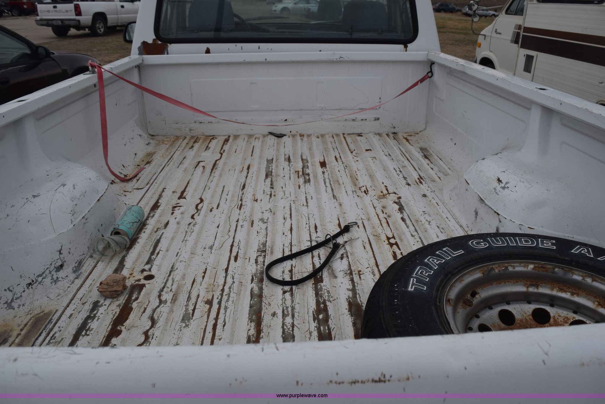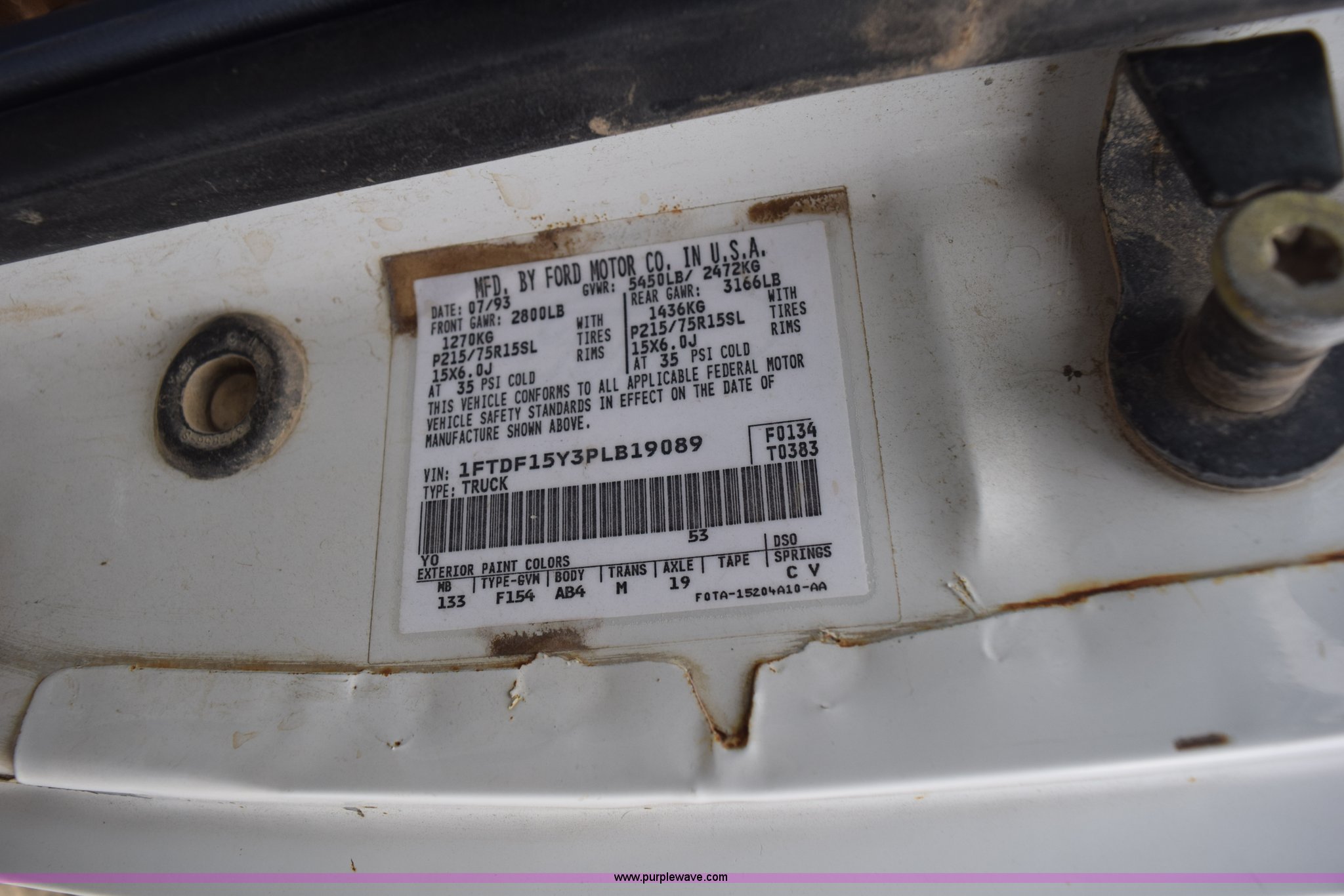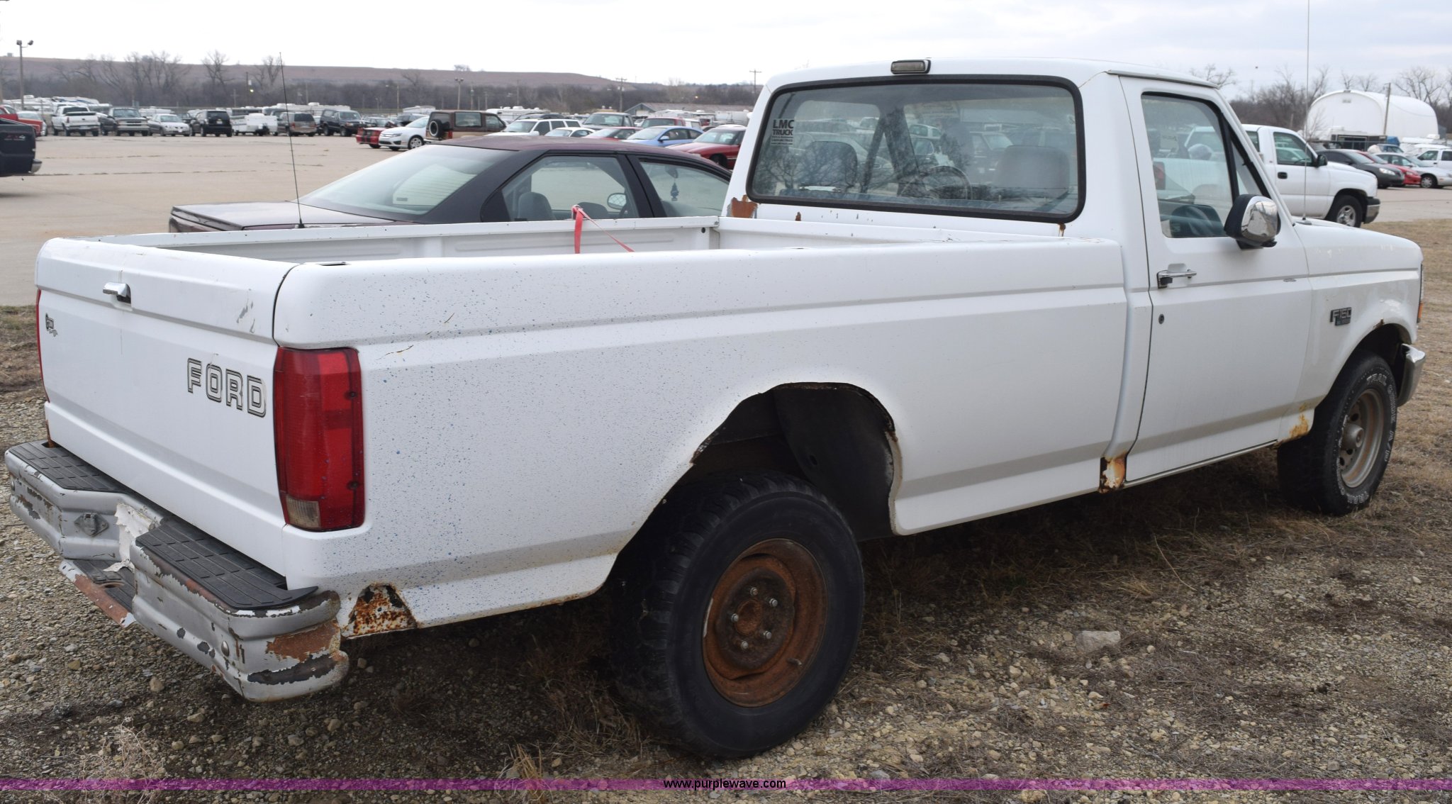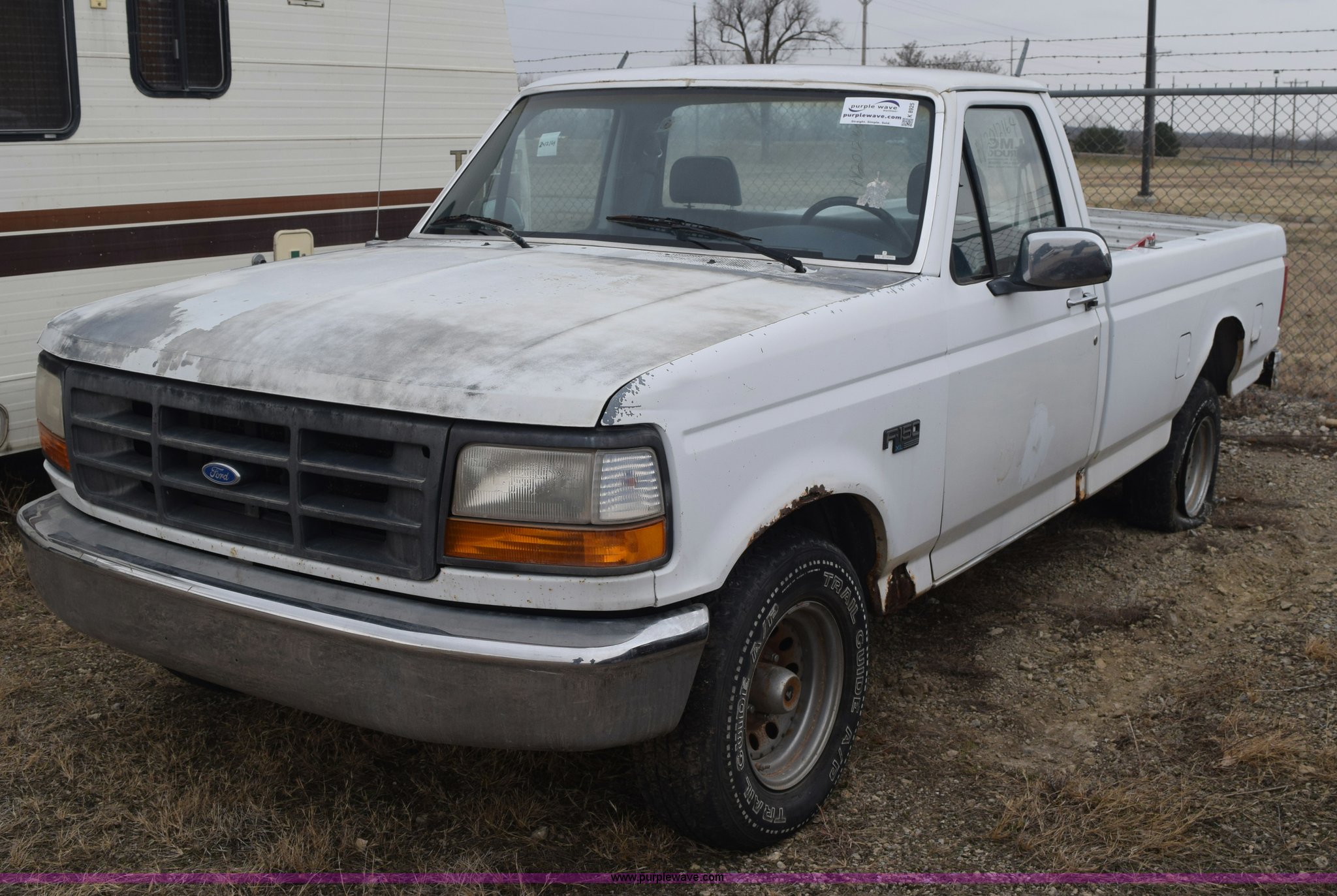 Purple Wave is selling a used 1/2 Ton Pickup or Van in Kansas. This item is a 1993 Ford F150 XL pickup truck with the following: Unknown miles on odometer, 4.9L L6 OHV 12V gas engine, Four speed manual transmission, Manual windows and locks, Vinyl interior, 235/75R15 tires, No keys, Interior/exterior cosmetic damage, Unknown operating condition, Unit# AV2012169