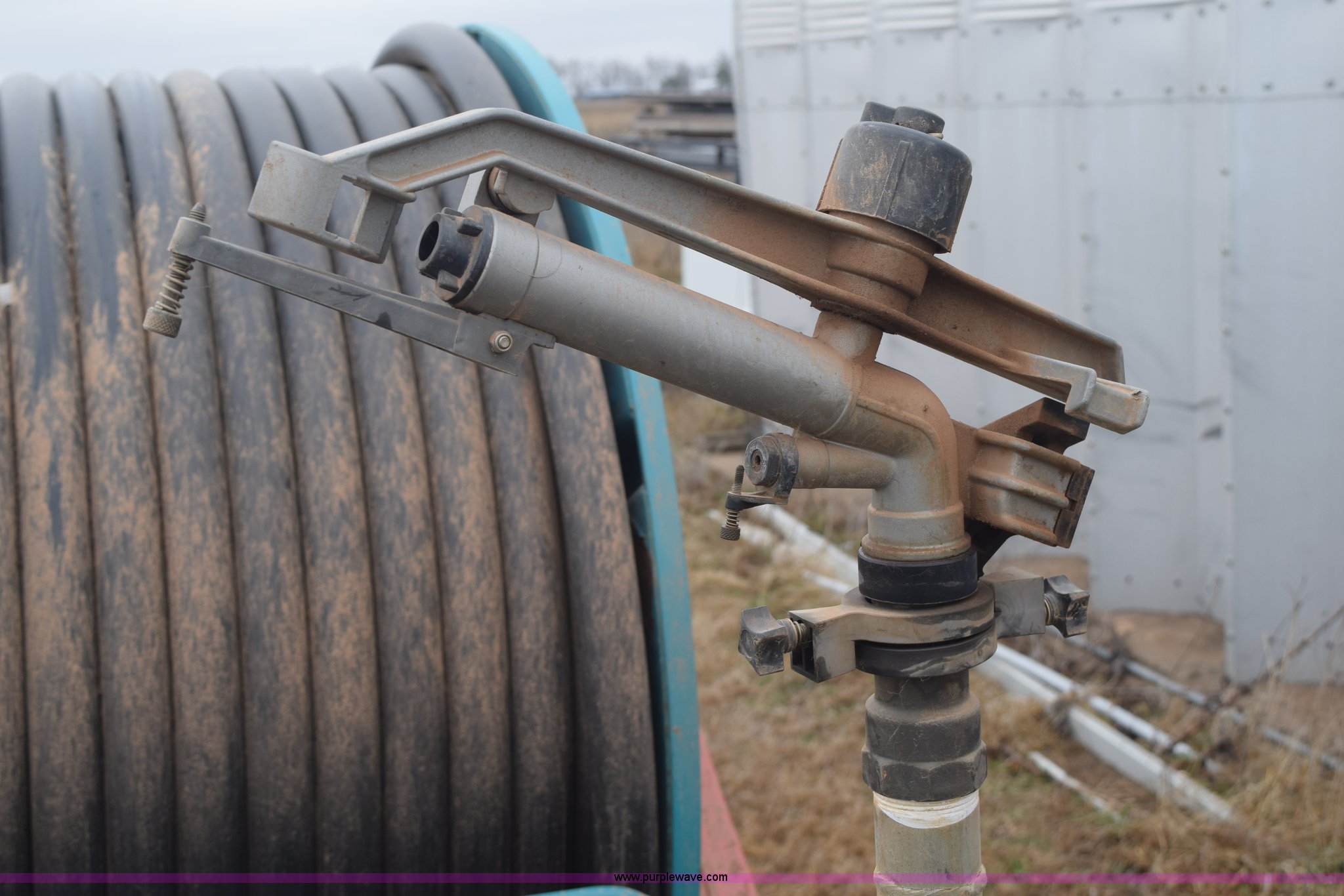 Purple Wave is selling a used Irrigation Equip. Attach. in Kansas. This item is a Micro Rain MR50 water reel with the following: 1.67" I.D. tubes, 558"L hose, 30 to 75 gallon per minute, Automatic shudown, 16 x 6.50-8 tires, Manual included, Serial 01157