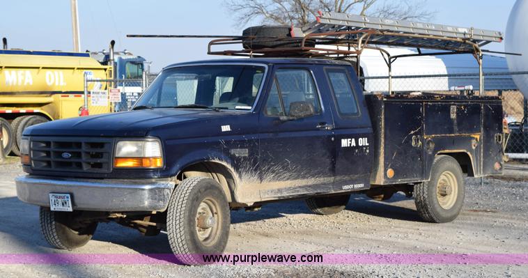 1994 Ford F250 XL utility truck. 311,369 miles on odometer, 5.8L V8 OHV 16V gas engine, Four speed manual transmission, Four wheel drive, Heat, AM/FM/cassette, Cloth interior, 696FA utility bed (6) compartments, Serial 98418, 235/85R16 tires, Contents and CB radio are not included, Interior/exterior cosmetic damage, Seats torn, Paint peeling, Unit# 1068. Title distribution may be delayed up to 14 days from verification of funds. 1FTHX26H2RKA82127. MFA Oil. 4424 Highway 49. Lexa, AR 72355