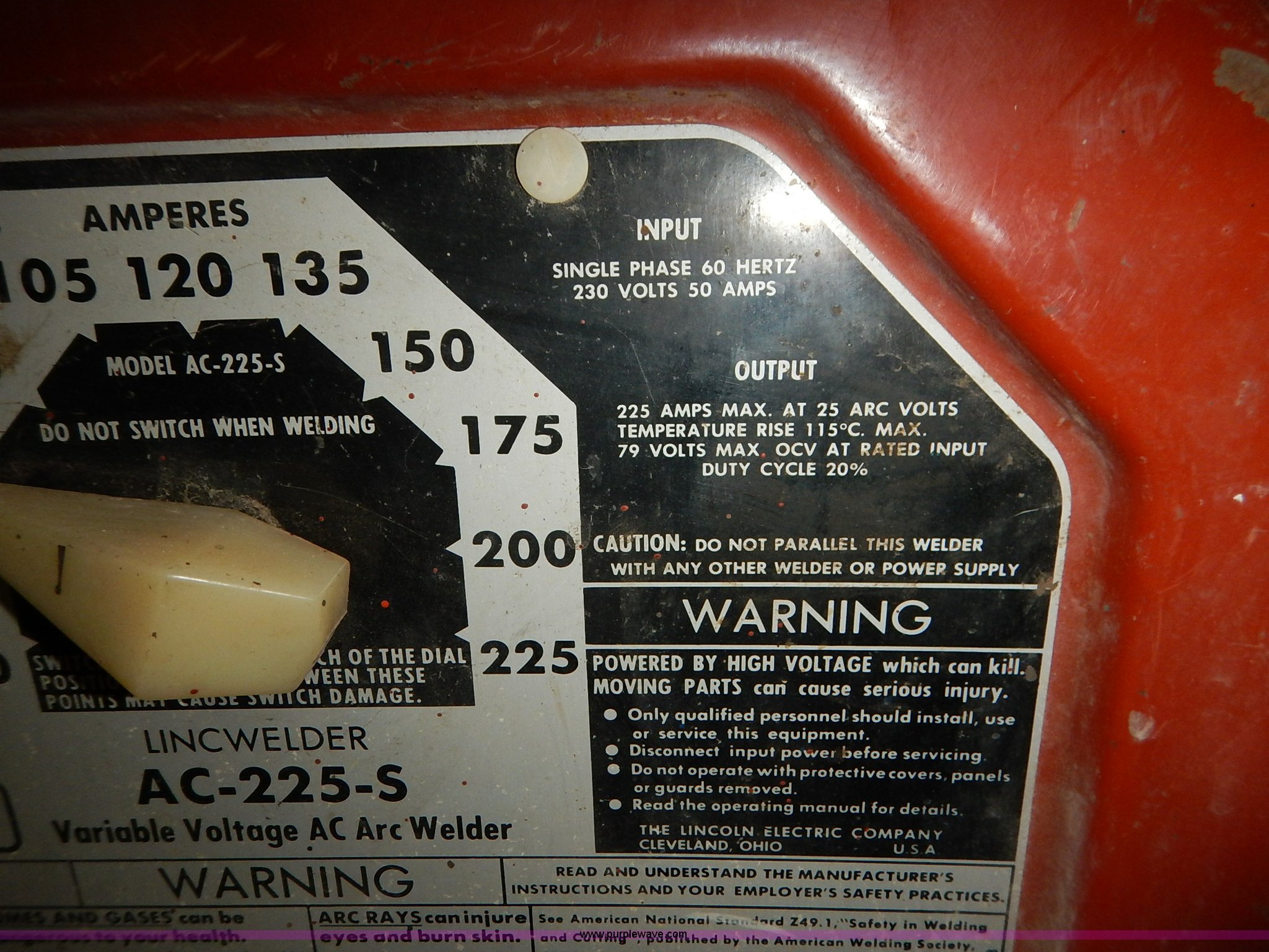 Lincoln AC-225-8 Linc welder has sold in Louisburg, Kansas for $143. Item BC9509 sold on April 22nd, 2015.