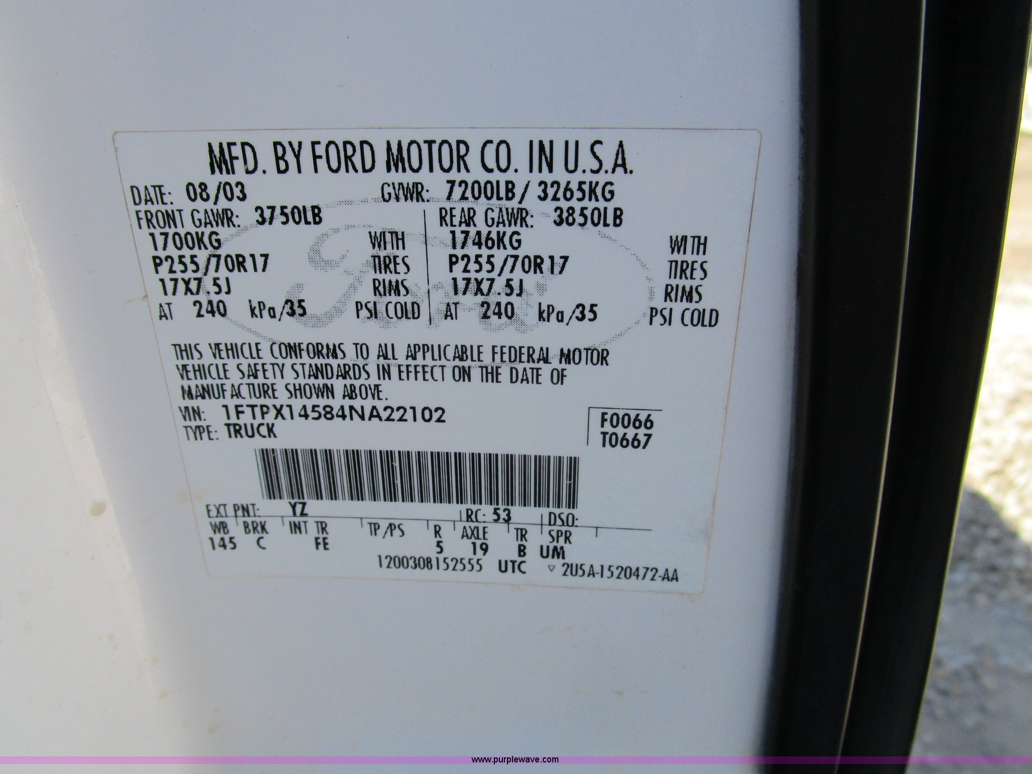 Purple Wave is selling a used 1/2 Ton Pickup or Van in Oklahoma. This item is a 2004 Ford F150 XLT pickup truck with the following: 324,951 miles on odometer, 5.4L V6 SOHC 16V gas engine, Automatic transmission, Four wheel drive, AC and heat, Tilt, Cruise, AM/FM/CD, Power windows, locks, mirrors, and seat, Cloth interior, Trailer brake controller, Spray in bed liner, LT265-70R17 tires, Paint peeling, Unit# 426