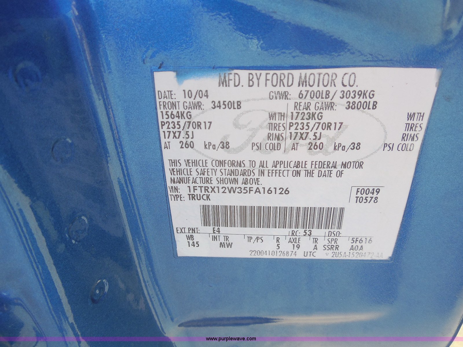 Purple Wave is selling a used 1/2 Ton Pickup or Van in Kansas. This item is a 2005 Ford F150 SuperCab pickup truck with the following: 119,712 miles on odometer, 4.6L V8 SOHC 16V gas engine, Automatic transmission, AC and heat, Tilt, Cruise, AM/FM/CD, Power windows, locks, and mirrors, Cloth interior, Bed liner, Receiver hitch, 235/70R17 tires