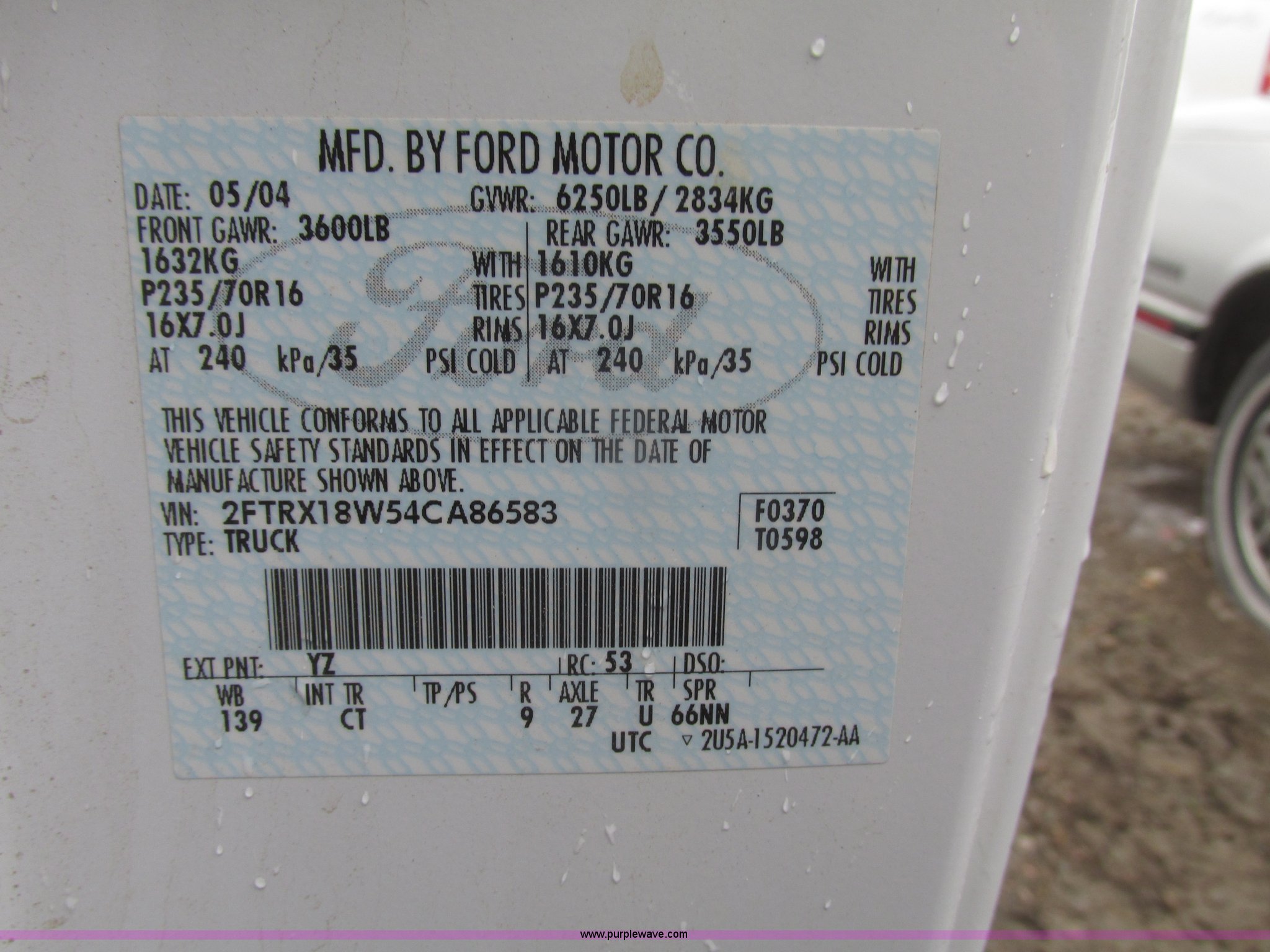 Purple Wave is selling a used 1/2 Ton Pickup or Van in Nebraska. This item is a 2004 Ford F150 XL SuperCab pickup truck with the following: 240,370 miles on odometer, 4.6L V8 16V SOHC gas engine, Automatic transmission, Four wheel drive, AC and heat, Tilt, Cruise, AM/FM/cassette, Manual windows and locks, Cloth interior, Receiver hitch, Trailer wiring, LT265/75R16 tires, Transmission slips, One engine cylinder inoperable, Light switch knob broken, Rust, Windshield cracked, Interior/exterior cosmetic damage, Unit# 04-105