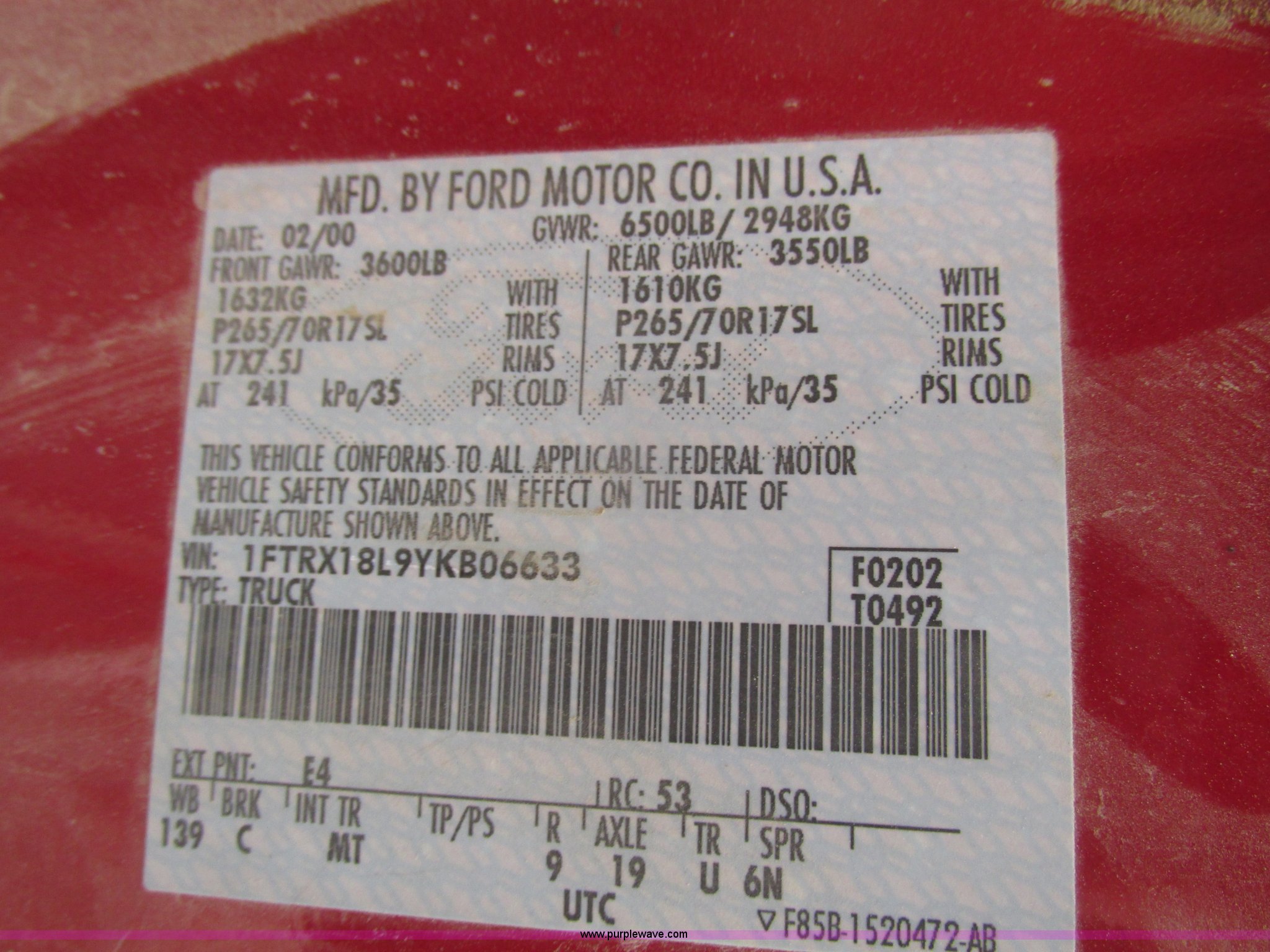 Purple Wave is selling a used 1/2 Ton Pickup or Van in Nebraska. This item is a 2000 Ford F150 XLT SuperCab pickup truck with the following: Unknown miles on odometer, 5.4L V8 SOHC 16V gas engine, Non-operational engine, Automatic transmission, Four wheel drive, AC and heat, Tilt, Cruise, AM/FM/cassette, Power windows, locks, and mirrors, Cloth interior, Luverne running boards, Fog lights, Bug deflector, Tow hooks, Mud flaps, Michelin LT265/70R17 tires, Hole in bed floor, Rear bumper and taillight missing, No battery, Non-operational vehicle, Unit# 00-900