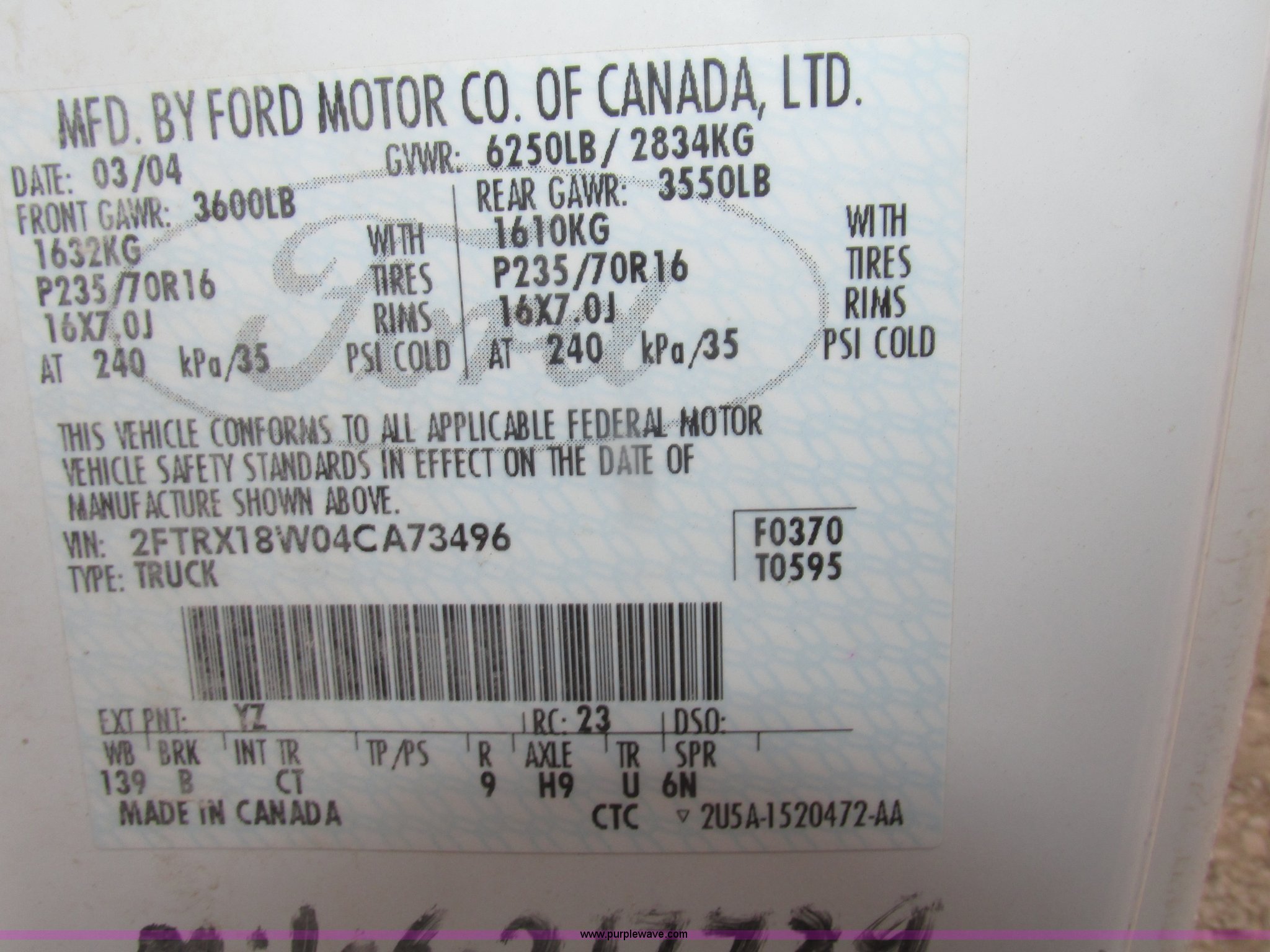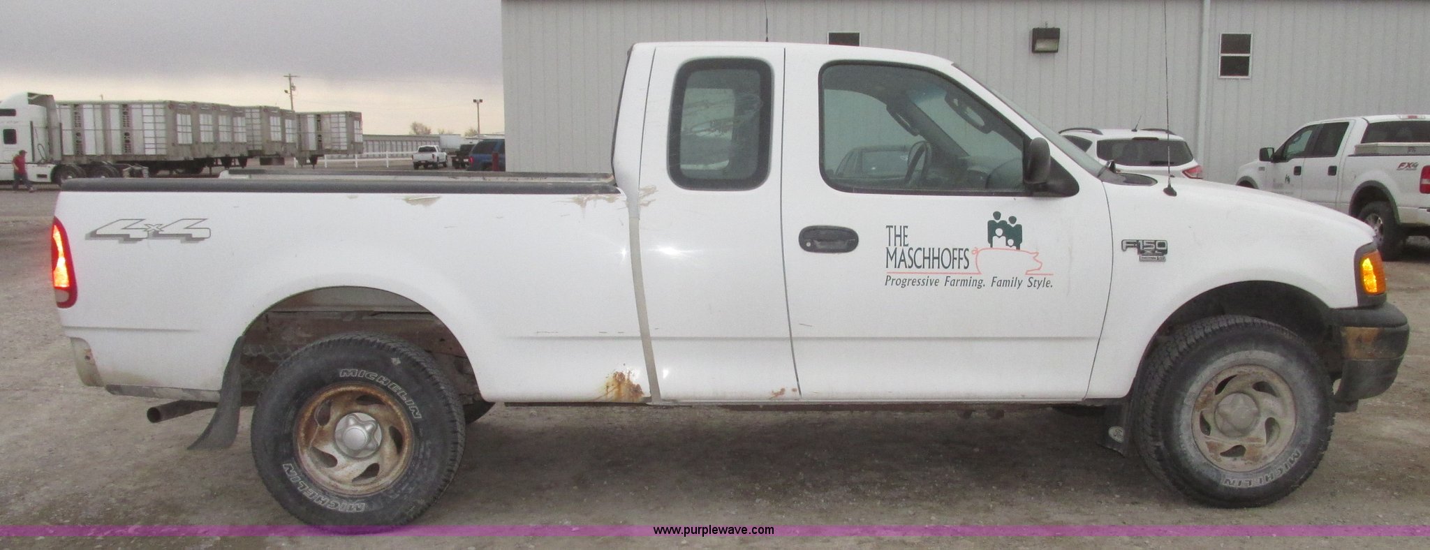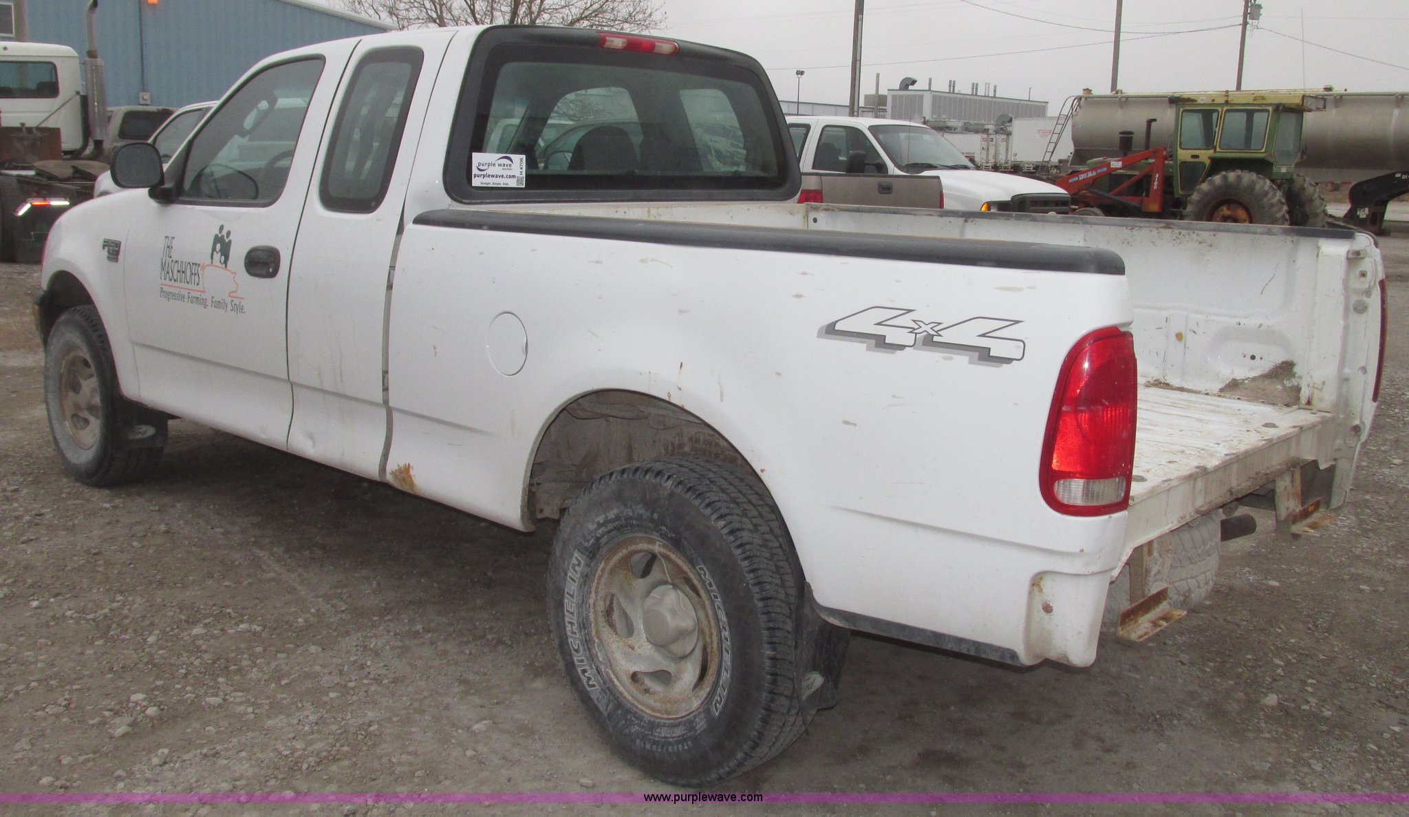 Purple Wave is selling a used 1/2 Ton Pickup or Van in Nebraska. This item is a 2004 Ford F150 XL SuperCab pickup truck with the following: 286,155 miles on odometer, 4.6L V8 16V SOHC gas engine, Automatic transmission, Four wheel strive, AC and heat, Tilt, Cruise, AM/FM/cassette, Manual windows and locks, Cloth interior, Mud flaps, Michelin LT265/75R16 tires, Tailgate and rear bumper missing, Unit# 04-115