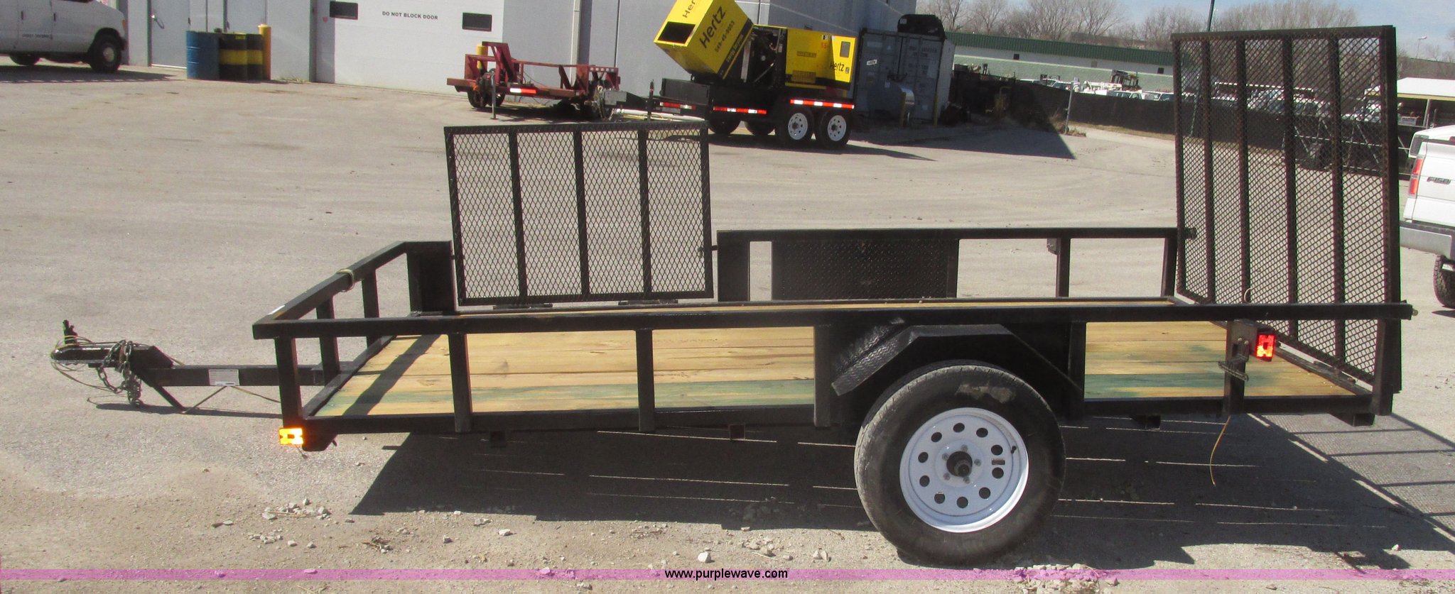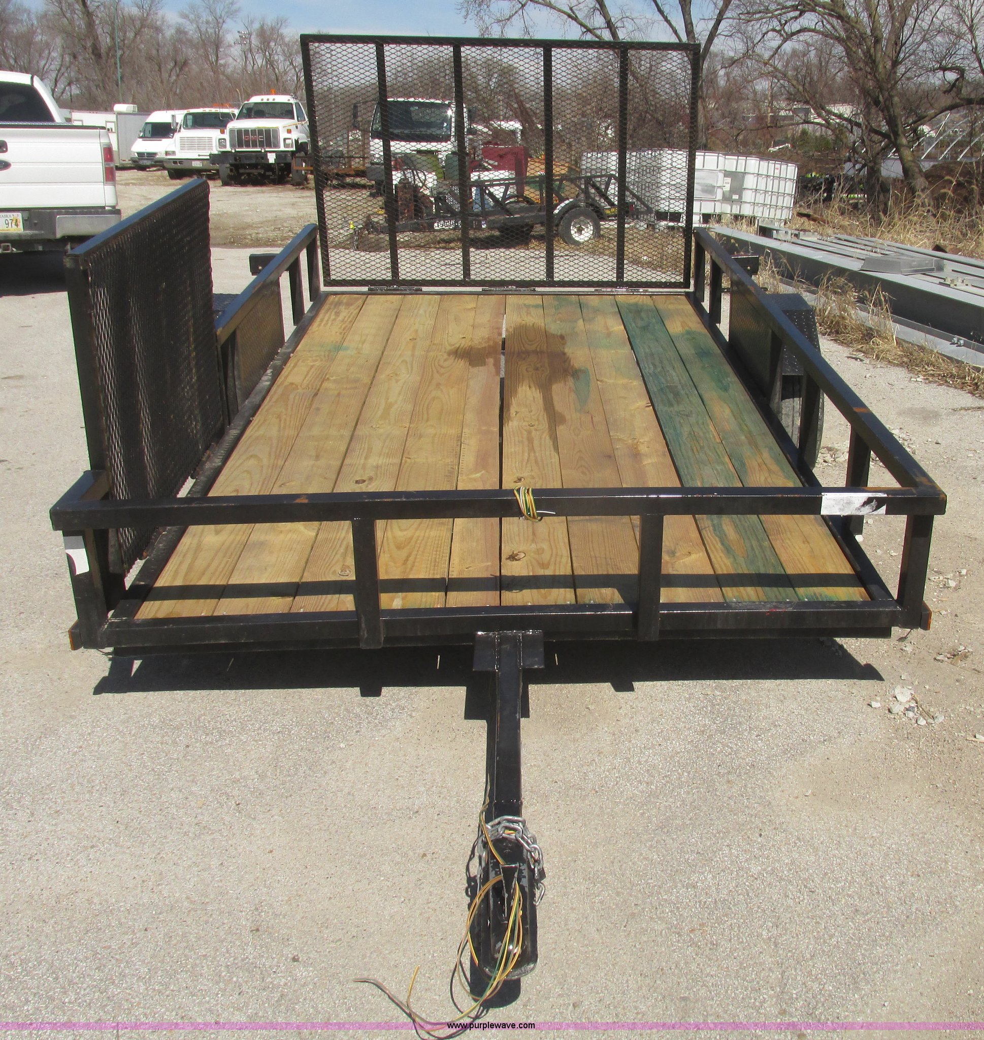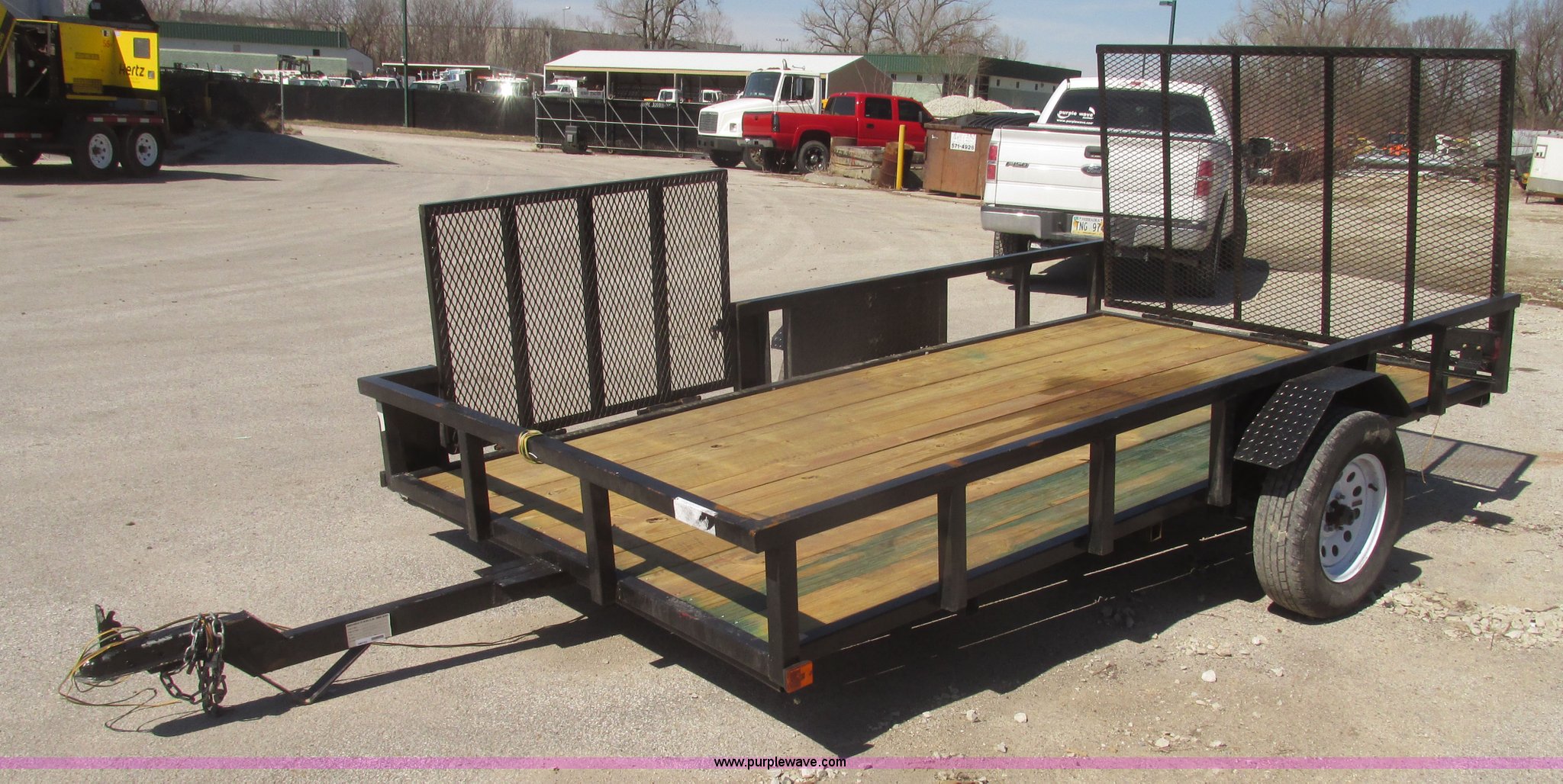 Purple Wave is selling a used Car or Utility Trailer in Nebraska. This item is a 2015 Topline JTW-12 utility trailer with the following: 140"L x 72"W I.D., 18"H rails, Wood deck, 32.5"L x 47"W mesh side ramp, 48"L x 75"W mesh rear ramp, 2" ball hitch, Taillights, Steel fenders, Spring suspension, P205/70R15 tires, GVWR 3,500 lbs, Wire is not hooked up, Side ramp bracket broken