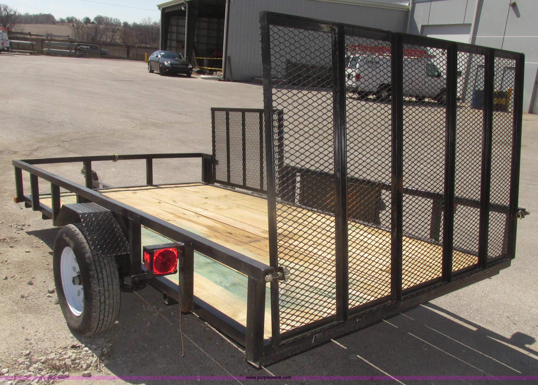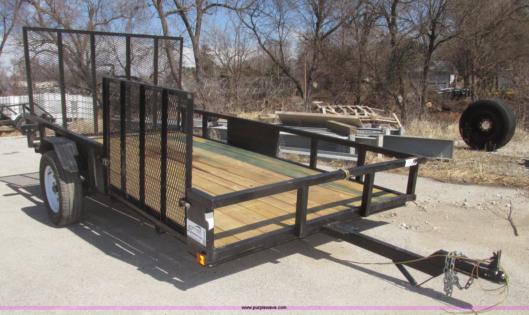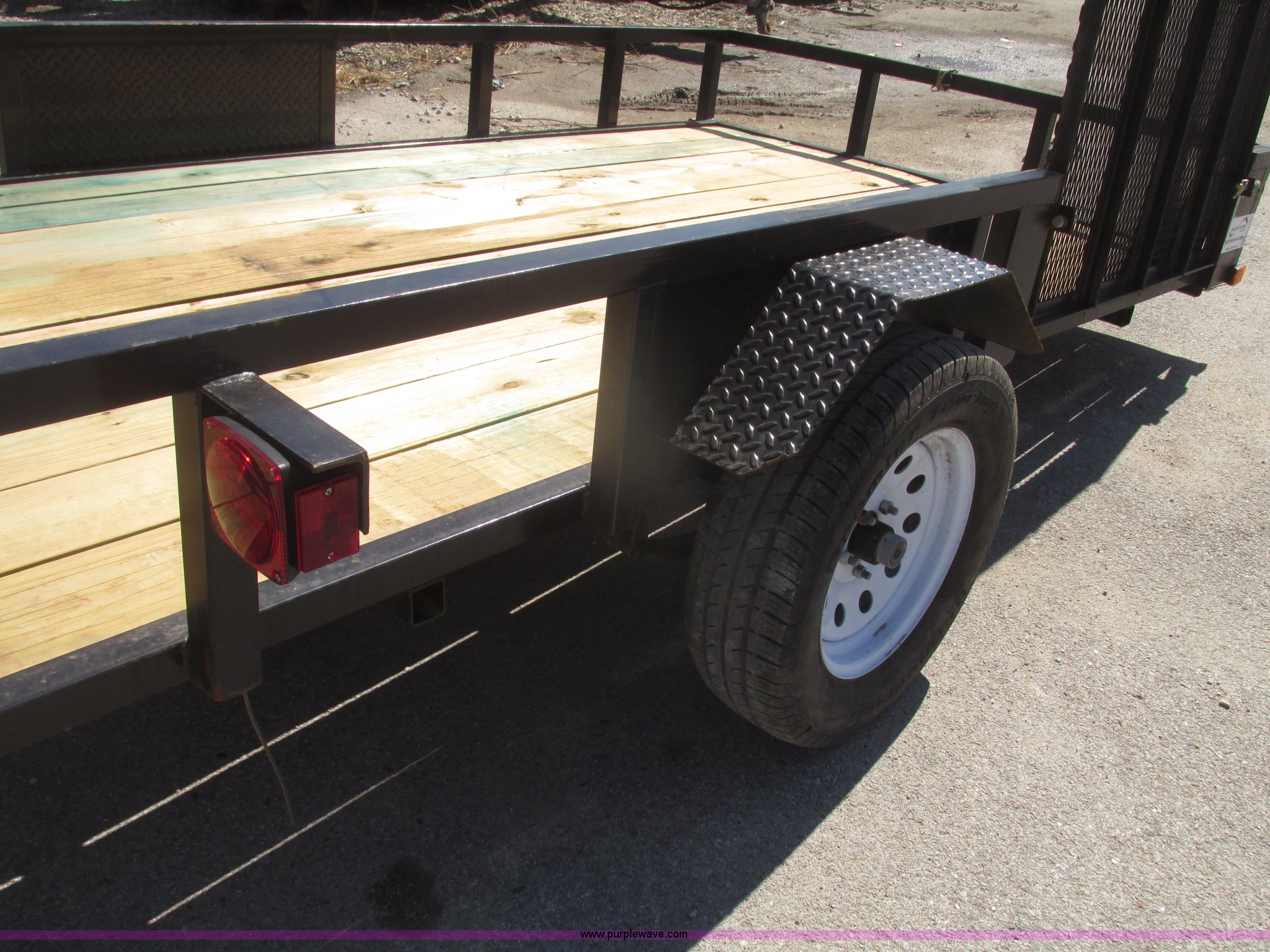 Purple Wave is selling a used Car or Utility Trailer in Nebraska. This item is a 2015 Topline JTW-12 utility trailer with the following: 140"L x 72"W I.D., 18"H rails, Wood deck, 32.5"L x 47"W mesh side ramp, 48"L x 75"W mesh rear ramp, 2" ball hitch, Taillights, Steel fenders, Spring suspension, P205/70R15 tires, GVWR 3,500 lbs, Wire is not hooked up, Side ramp bracket broken