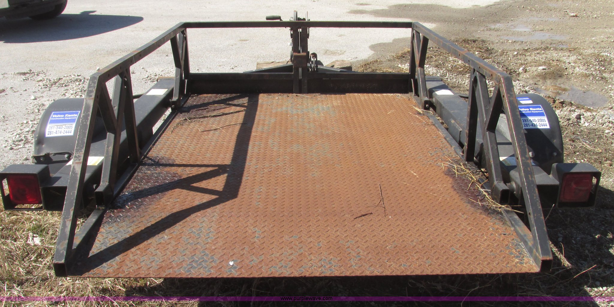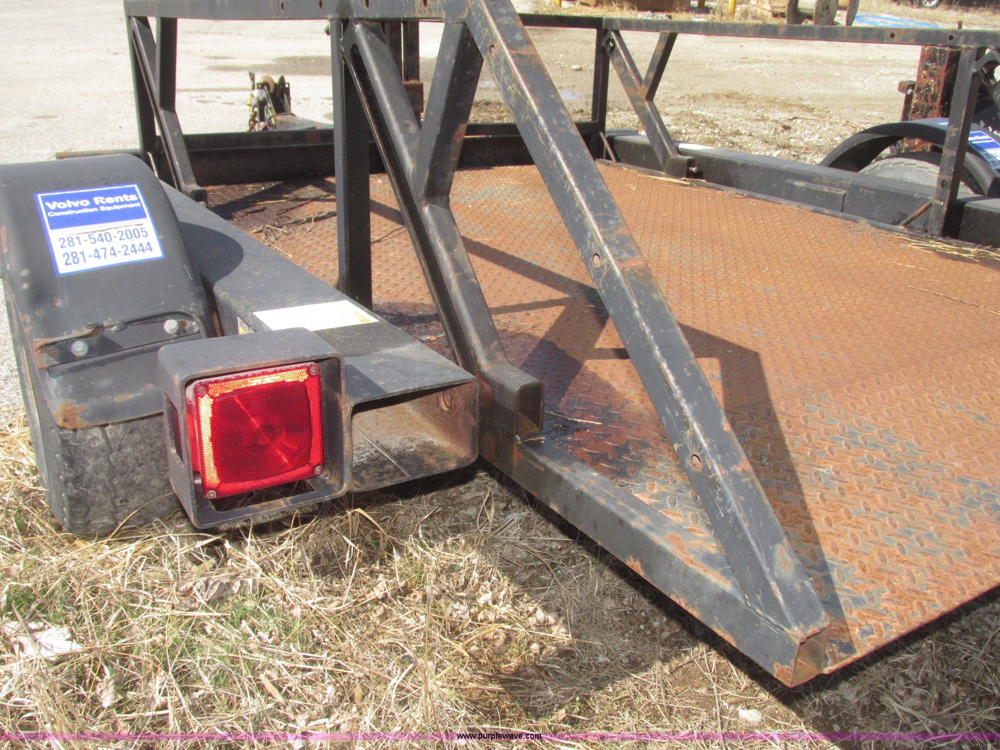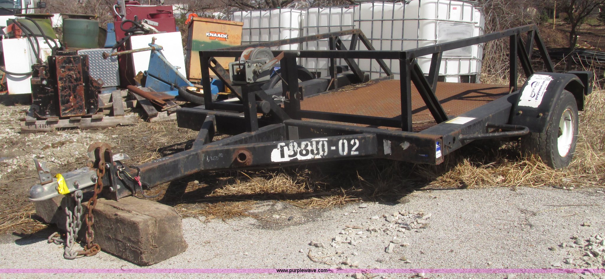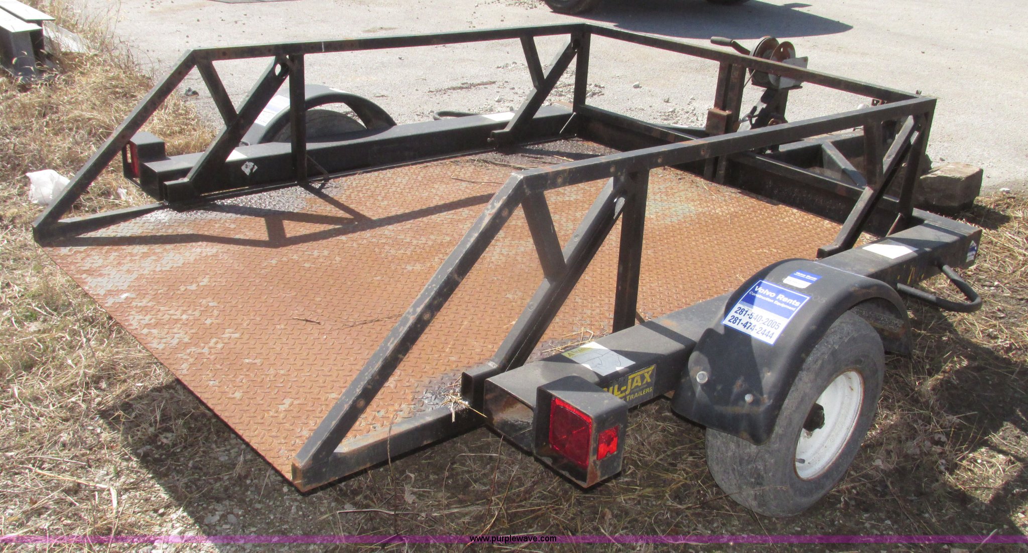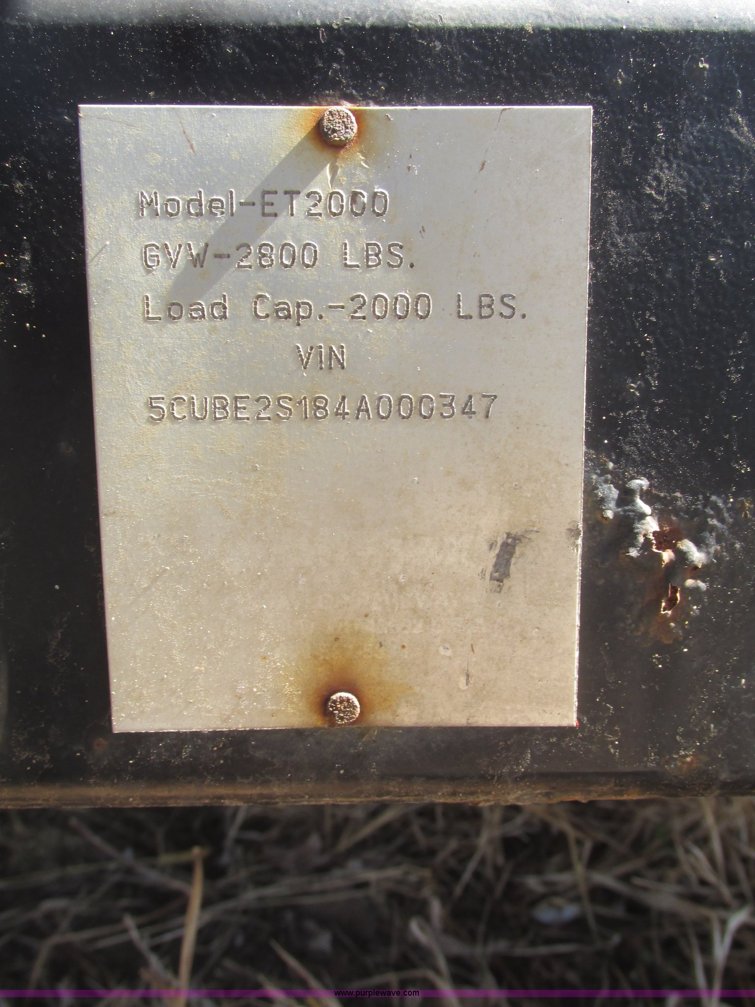 Purple Wave is selling a used Car or Utility Trailer in Nebraska. This item is a 2004 Bil-jax ET-2000 deck level ground loading trailer with the following: 86"L x 58"W I.D., 19"H rails, (2) safety chains, Hooks, Taillights, 2" ball hitch, Manual winch, Four wire trailer wiring, Adapter removed, Spring suspension, 20.5x8.0-10 tires, 2,000 lbs load capacity, GVW 2,800 lbs, Unit# 58510-02