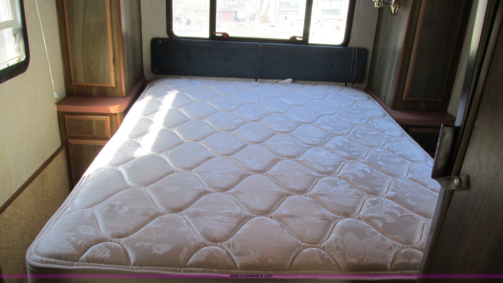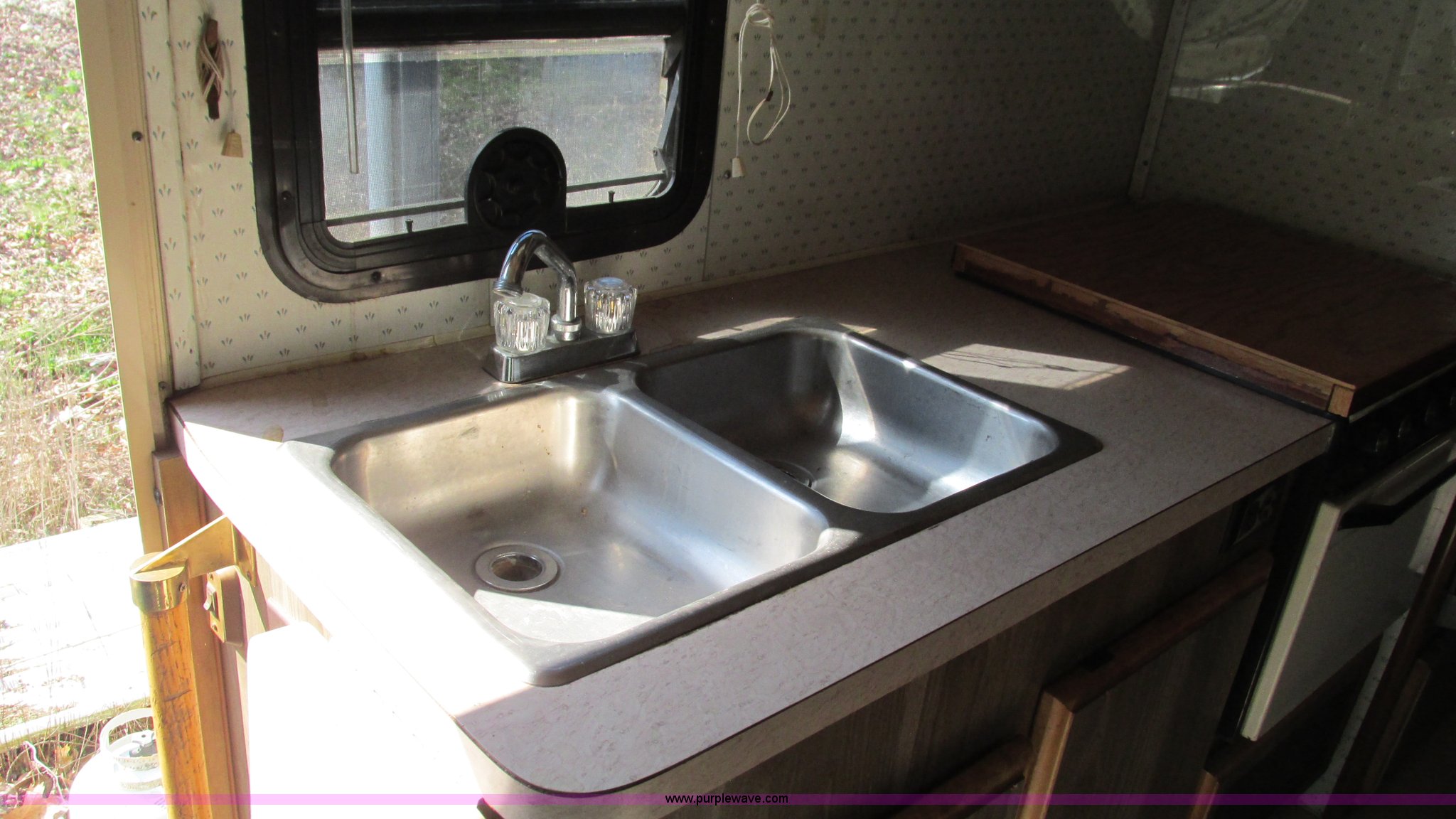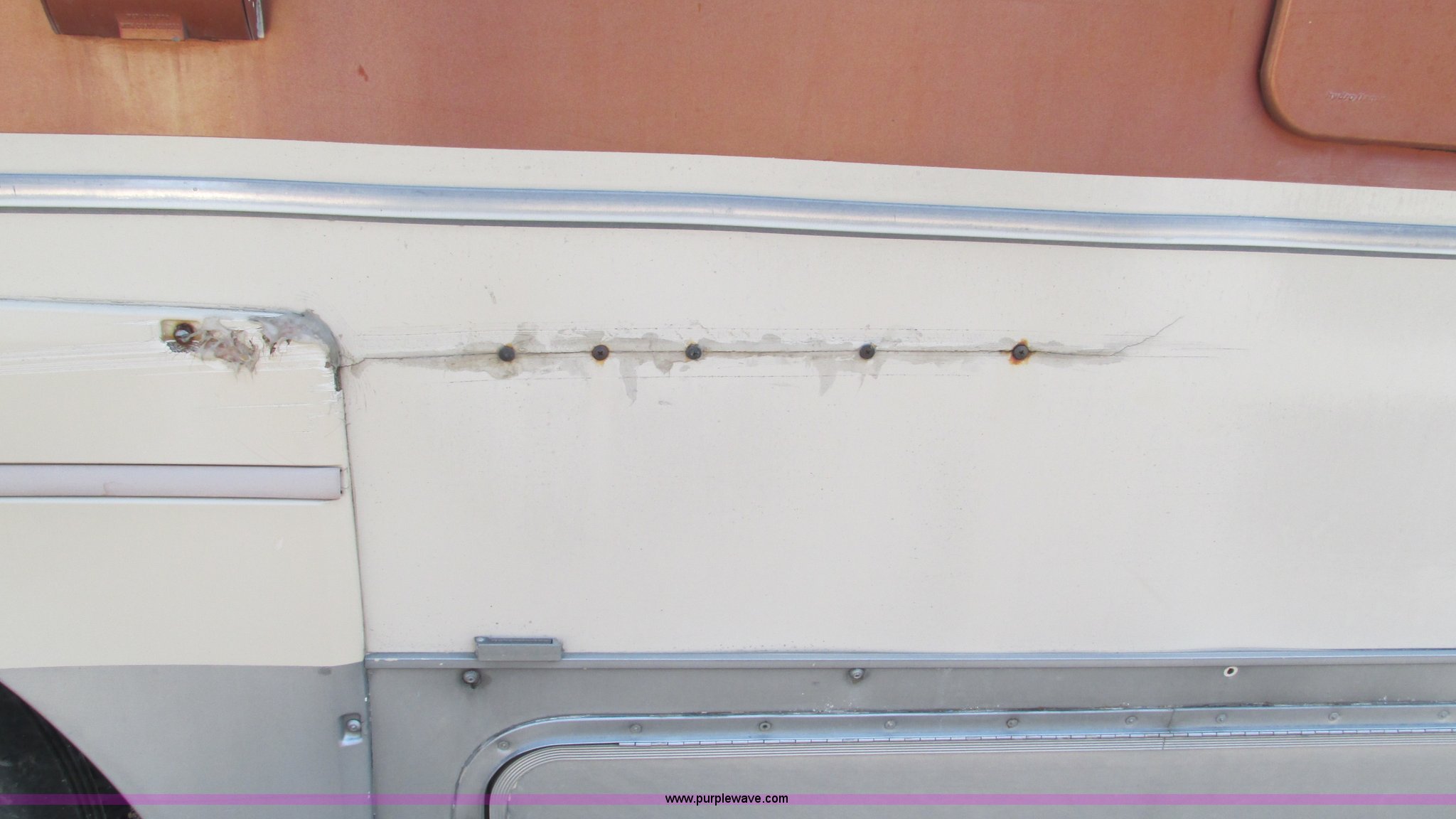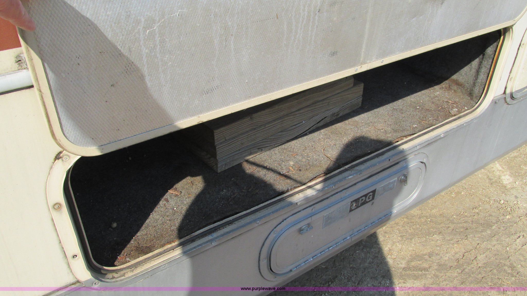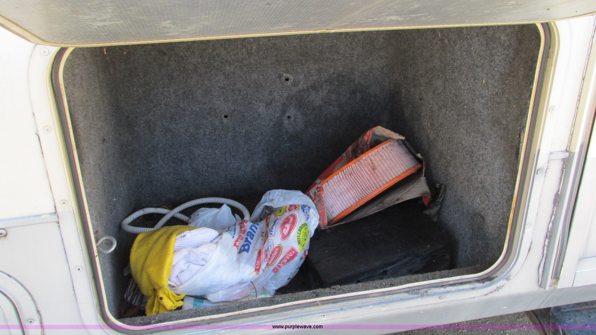 Purple Wave is selling a used RV in Missouri. This item is a 1987 Chevrolet P30 Fleetwood/Southwind RV with the following: 88,645 miles on odometer, 398 hours on meter, 7.4L V8 gas engine, Automatic transmission, AC and heat, Tilt, Cruise, AM/FM/cassette, Manual windows and locks, Cloth interior, Bathroom, Shower, Sink, Shurflow toilet, Bedroom, Four burner propane stove, Dual fuel refrigerator, Gas or electric, Magic Chef microwave, Television, Onan Emerald I generator, Model 4.0BC-E-1R126100AC, 120V AC, 4 kVA, 4 kW, Serial D870887634, Generator will not start, unknown operating condition, Hydraulic level, Passenger sliding window, Dinning seats fold out to a bed, Overhead storage, Awning, Approx. 27'L overall, Trailer wiring, LT235/85R16 tires, GVWR 12,300 lbs, FAWR 5,579 lbs, RAWR 7,500 lbs, Interior/exterior cosmetic damage