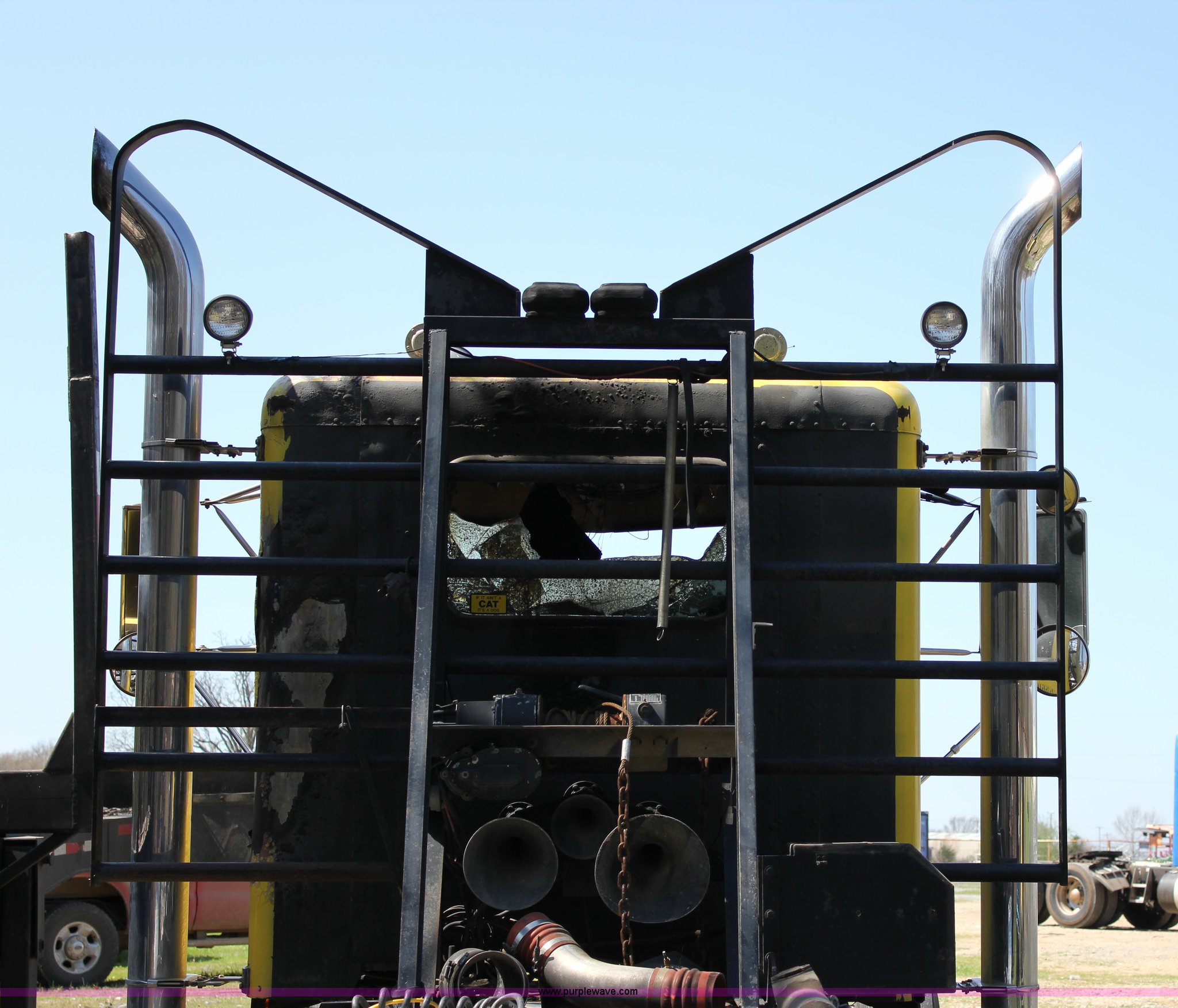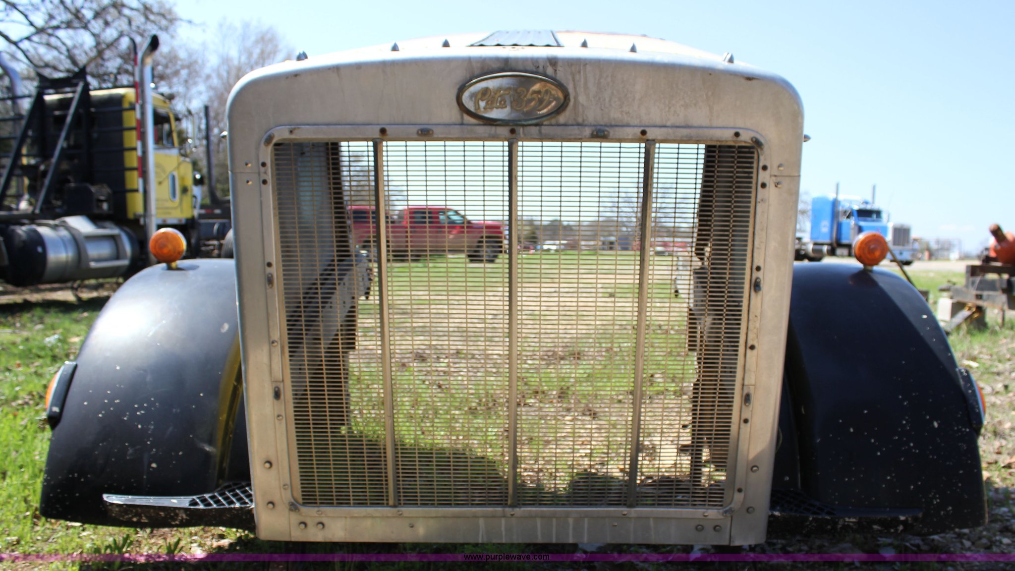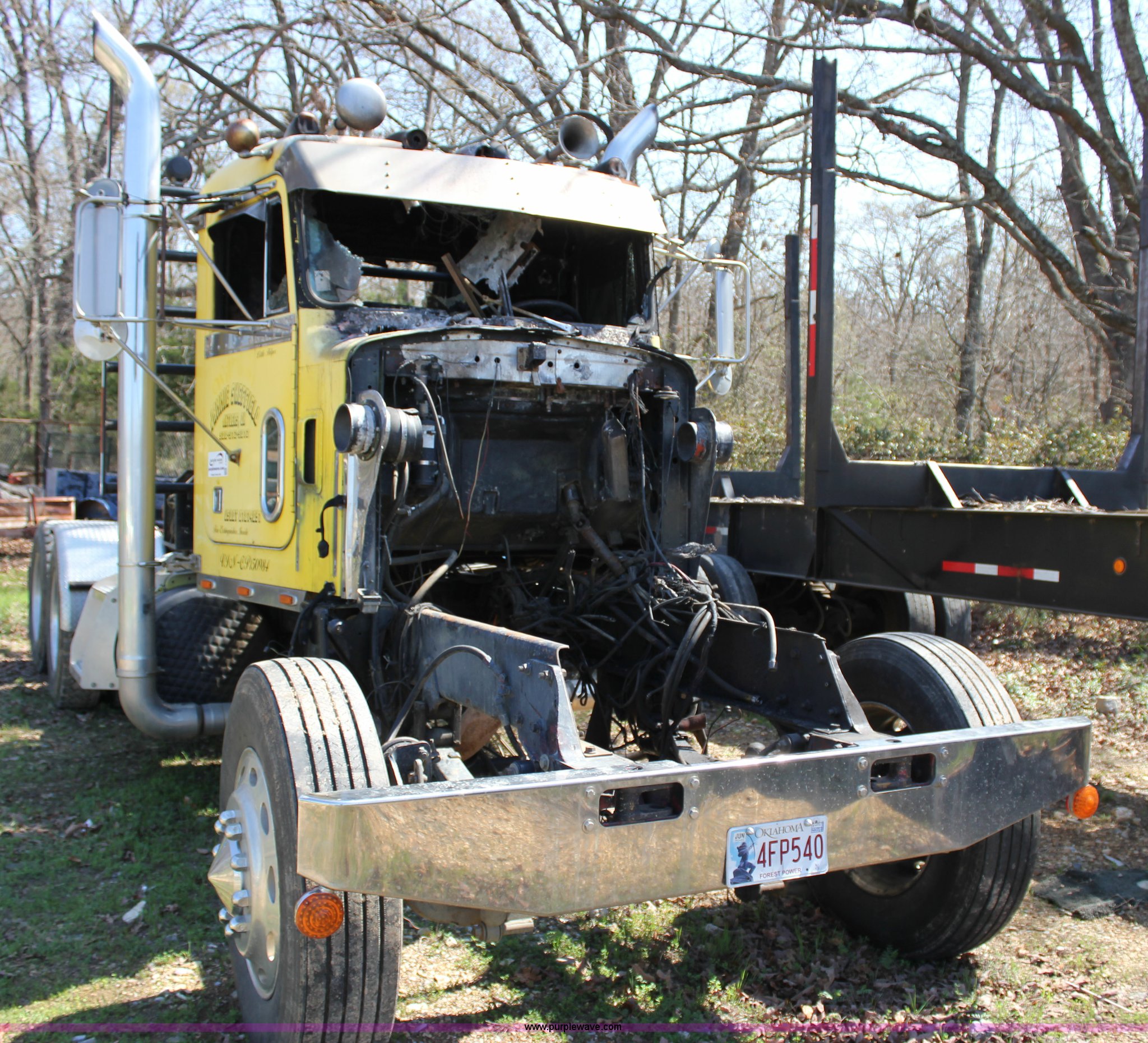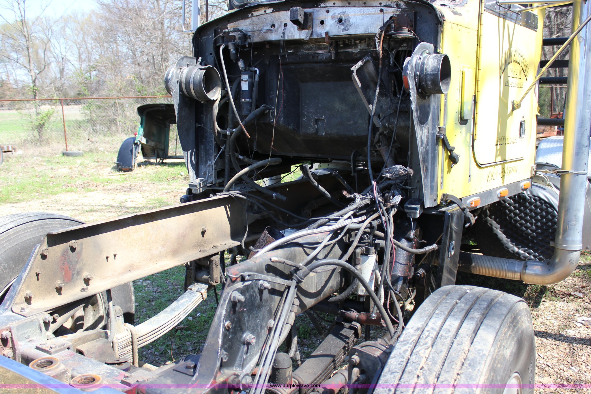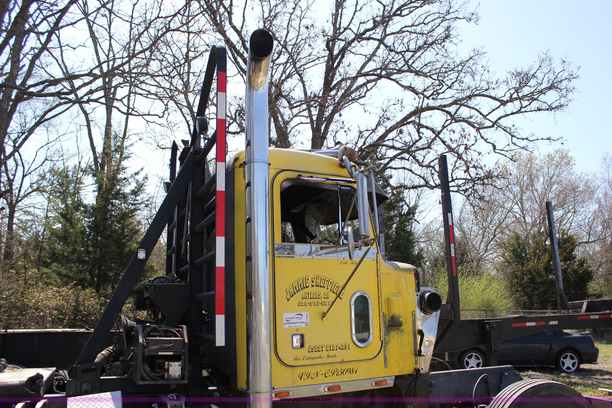 Purple Wave is selling a used Truck Tractor in Oklahoma. This item is a 1982 Peterbilt 382 semi truck with the following: Unknown miles on odometer, Caterpillar 3406B 14.6L L6 diesel engine, No transmission, Passenger daylight door, Visor, Custom headache rack, Pierce winch system, Dual 100 gallon fuel tanks, Dual rear exhaust stacks, PTO, Air suspension, Air brakes, 11R24.5 tires, Air horns will be removed prior to auction, Fire damage, Parts missing