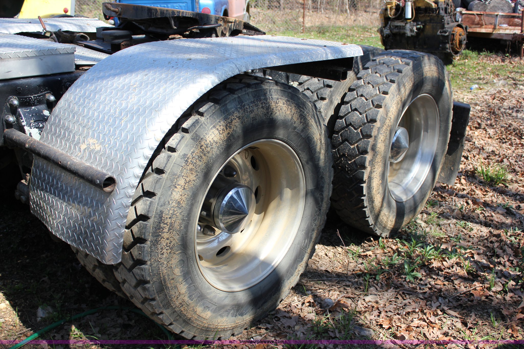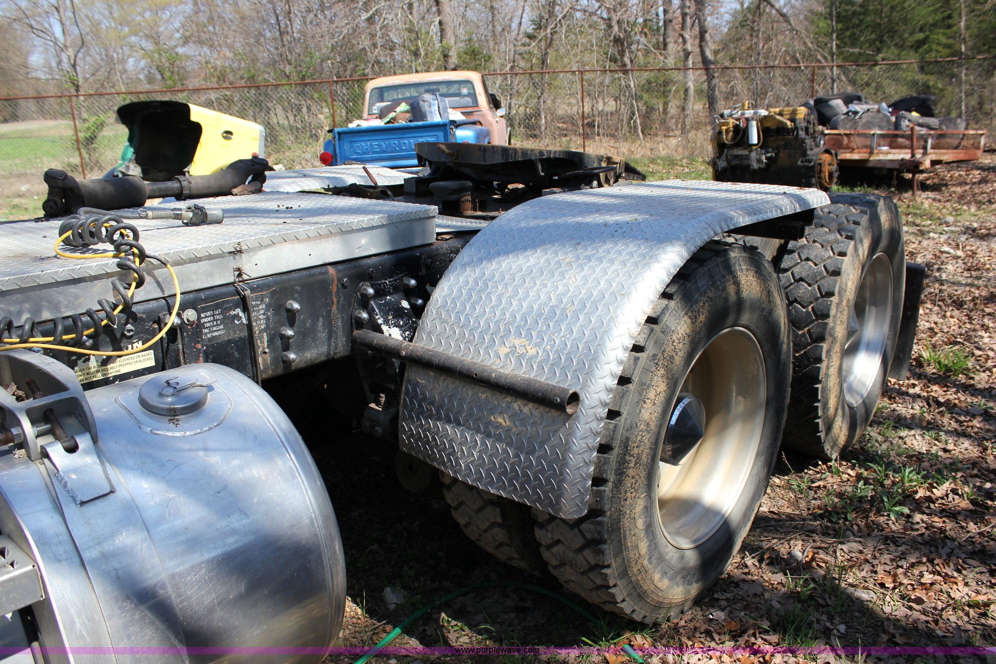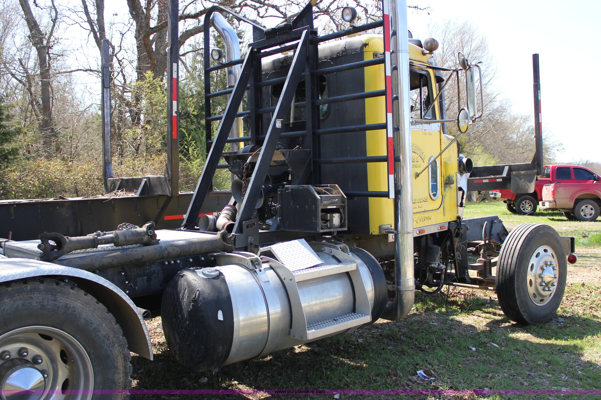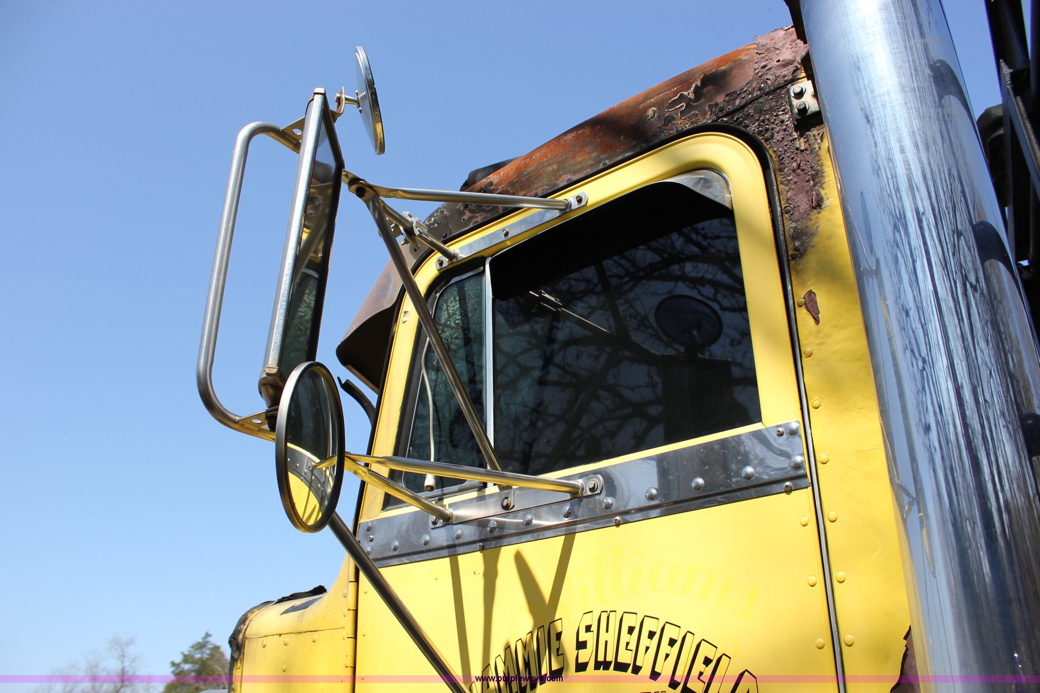 Purple Wave is selling a used Truck Tractor in Oklahoma. This item is a 1982 Peterbilt 382 semi truck with the following: Unknown miles on odometer, Caterpillar 3406B 14.6L L6 diesel engine, No transmission, Passenger daylight door, Visor, Custom headache rack, Pierce winch system, Dual 100 gallon fuel tanks, Dual rear exhaust stacks, PTO, Air suspension, Air brakes, 11R24.5 tires, Air horns will be removed prior to auction, Fire damage, Parts missing