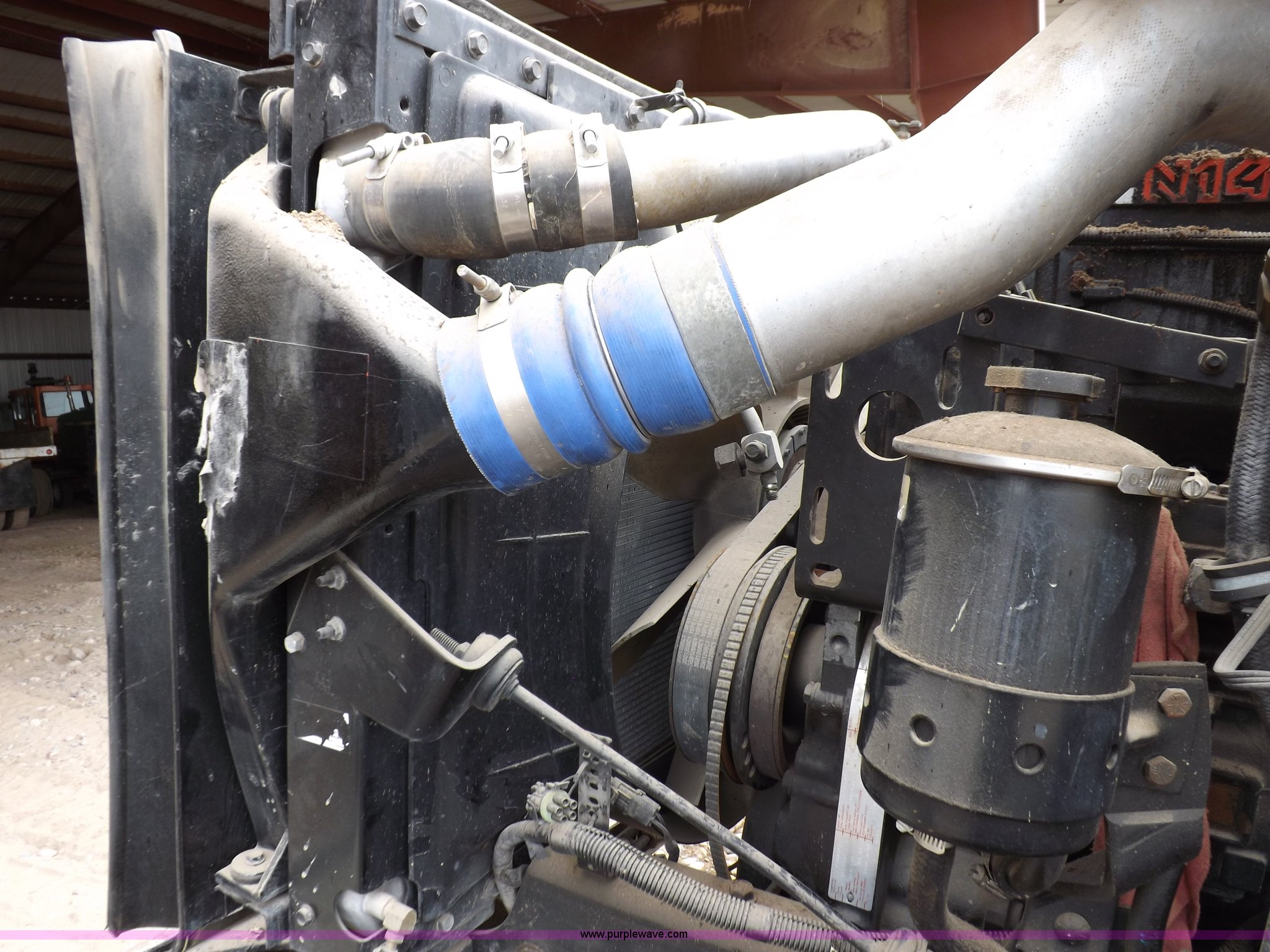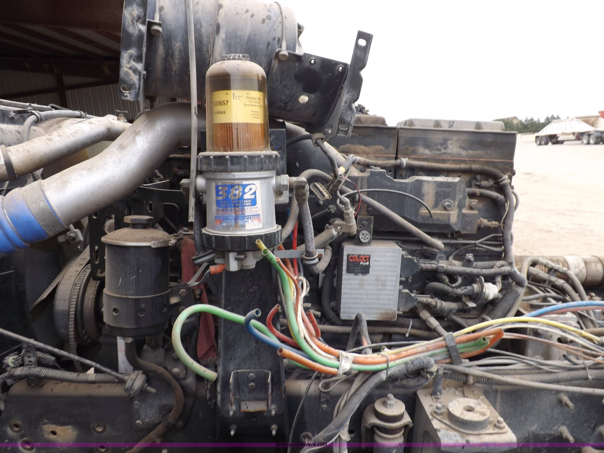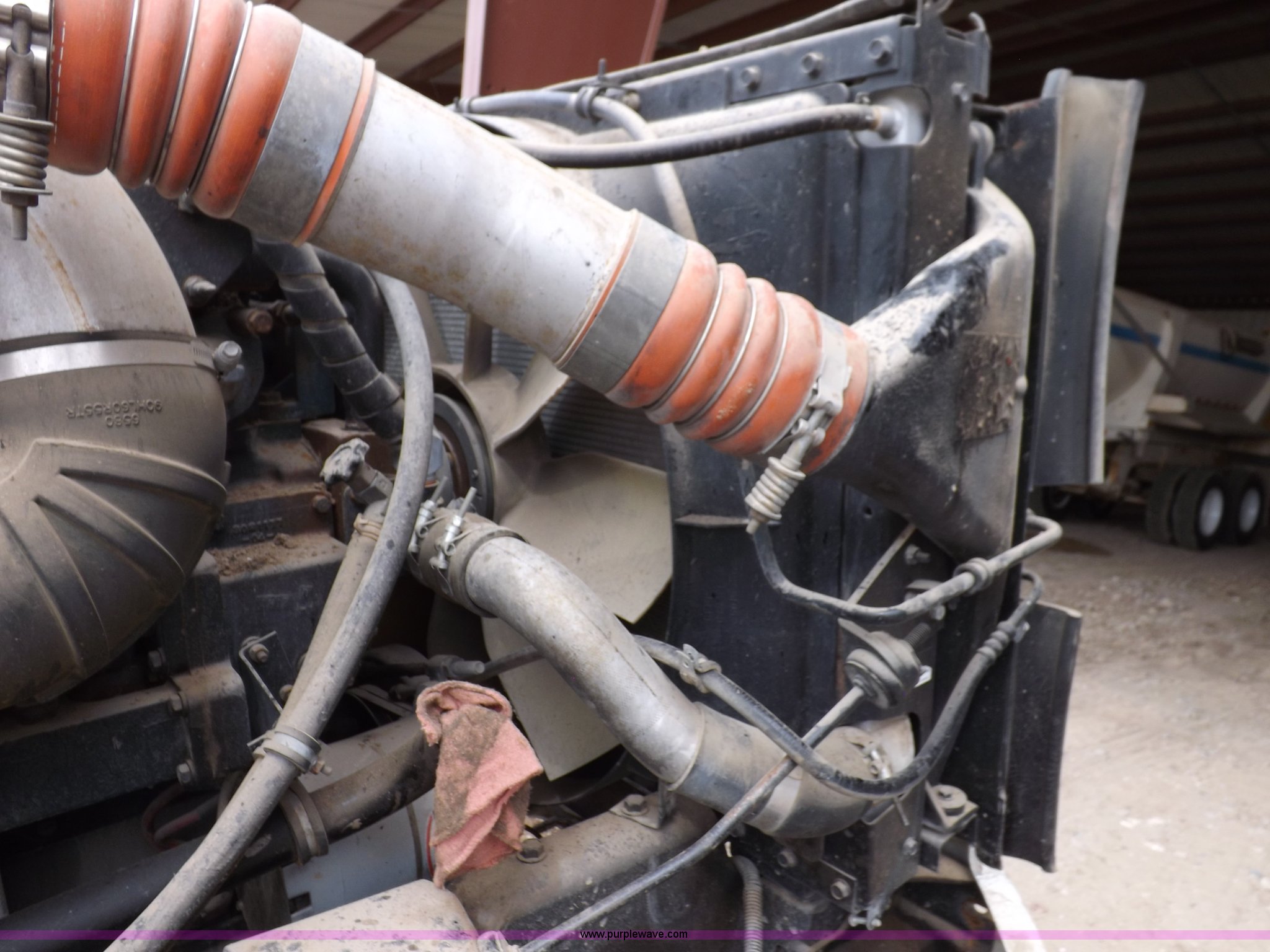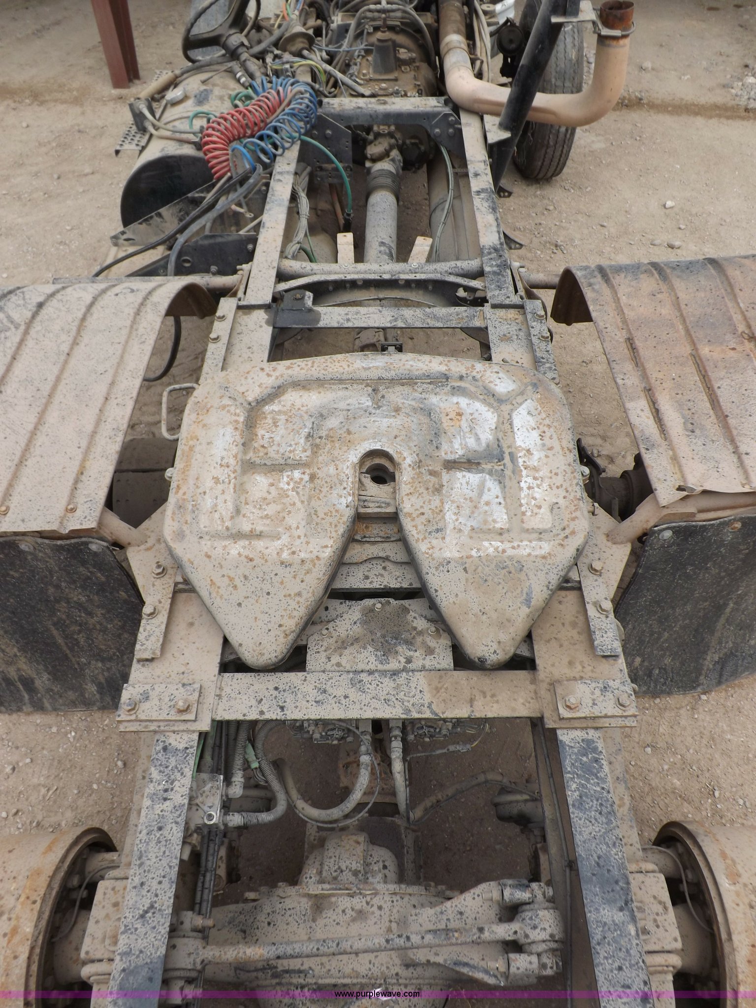 Purple Wave is selling a used Truck Chassis in Kansas. This item is a 2002 International 9100i truck chassis with the following: Cummins N14 14.0L L6 diesel engine, 370 HP, Eaton Fuller Road Ranger 10 speed manual transmission, Air slide fifth wheel, 106 gallon fuel tanks, Single rear exhaust stack, Air suspension, Air brakes, 165" wheelbase, 11R24 tires, Wrecked, parts only