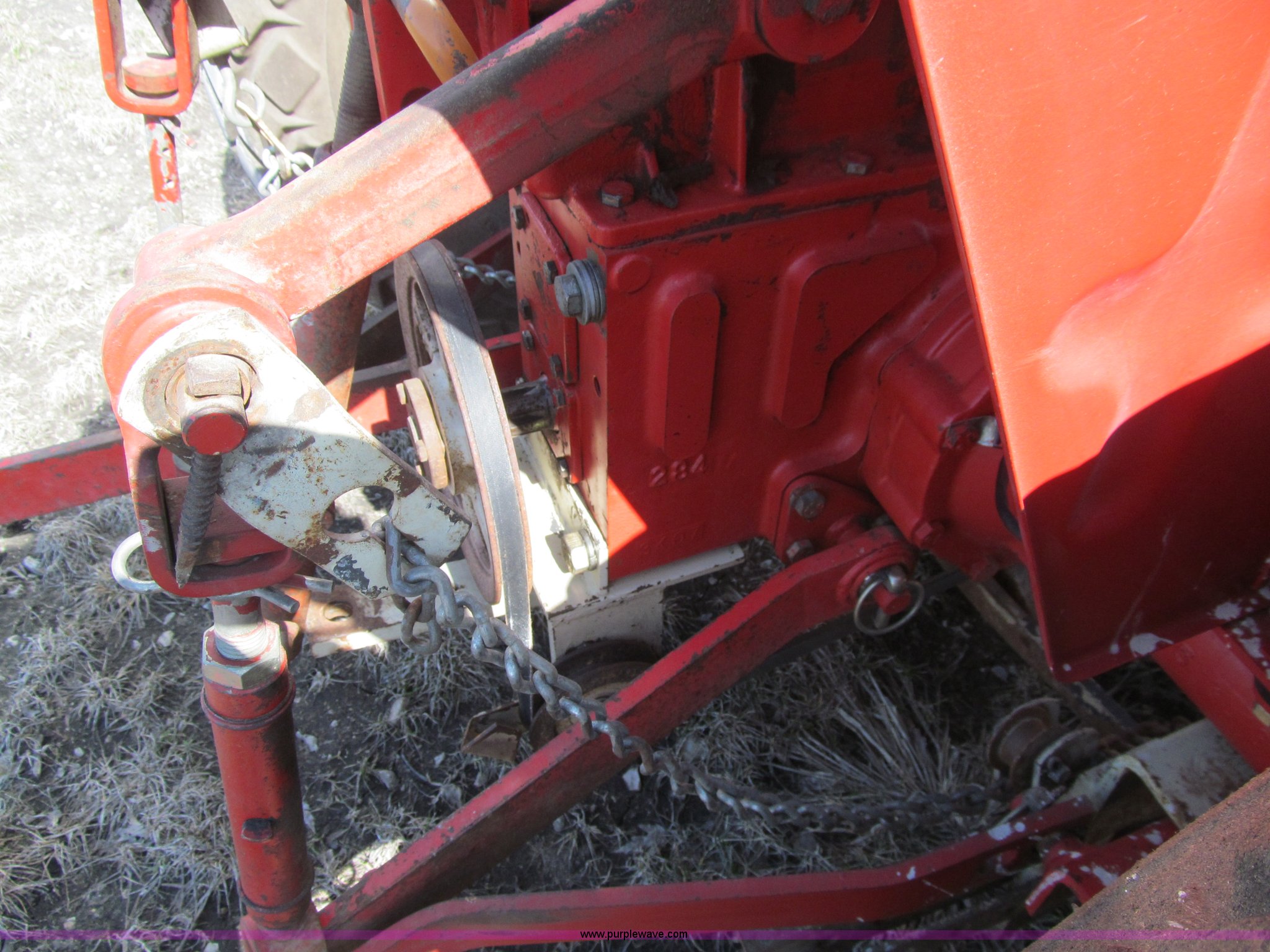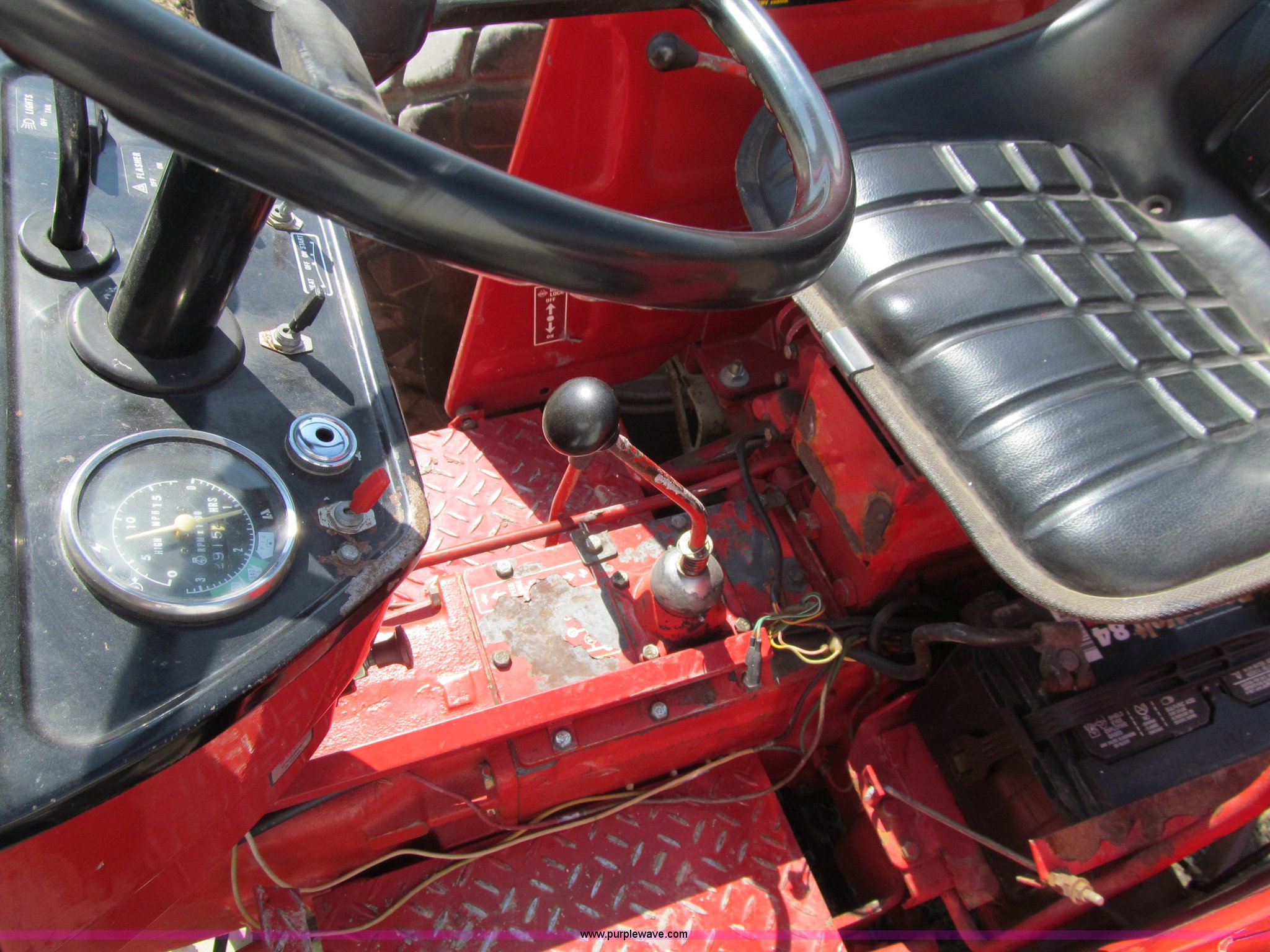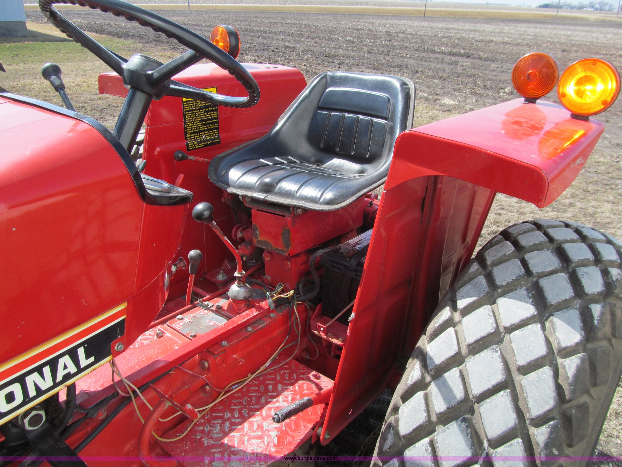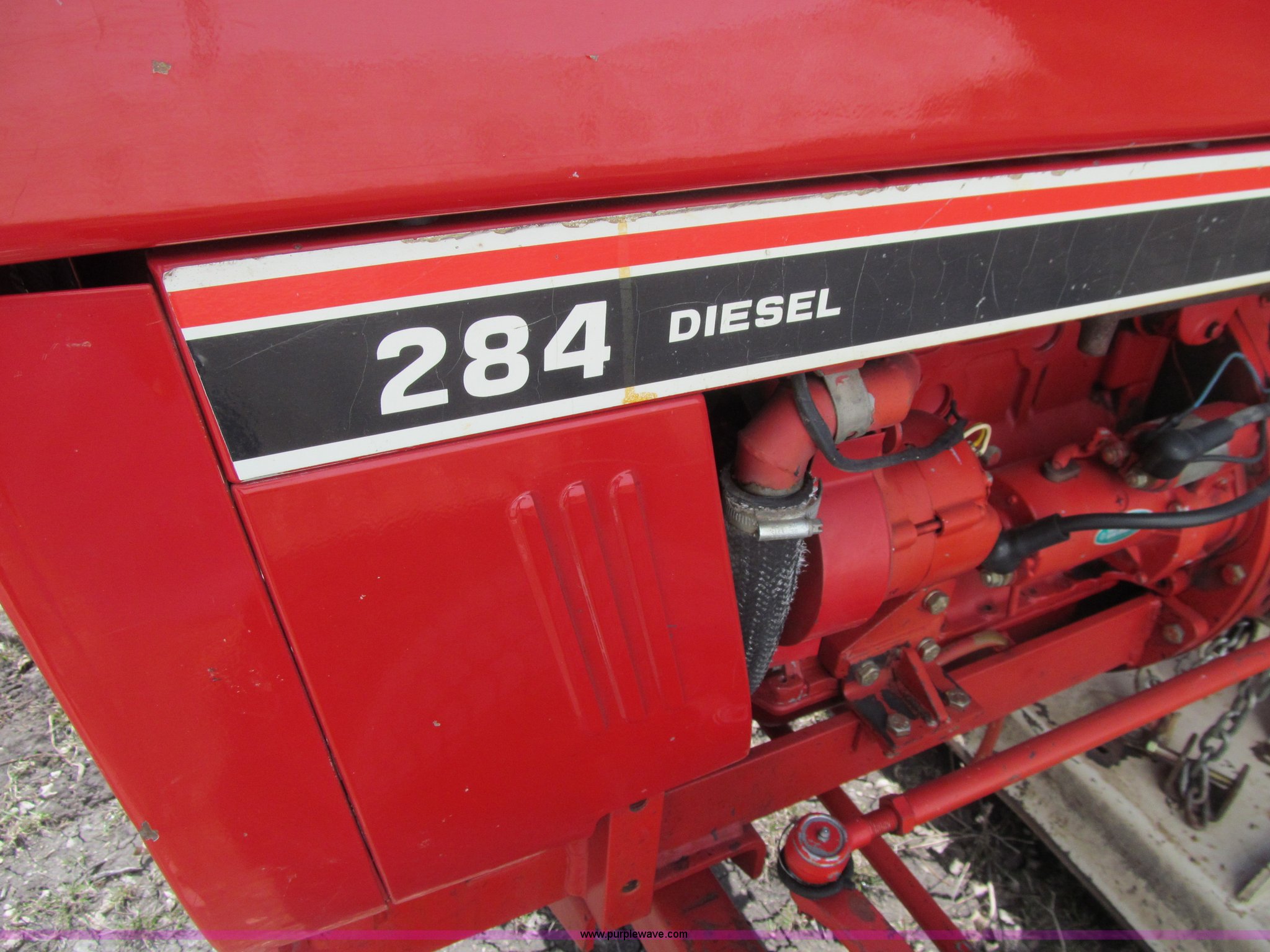 Purple Wave is selling a used Tractor in Iowa. This item is a 1983 International 284 tractor with the following: 2,915 hours on meter, Nissan SD16 1.6L three cylinder diesel engine, 28 HP, Serial 014258, Manual transmission, 8F-2R gears, Differential lock, Wood L305 belly mower, 84"W, Three point, Draw bar, 540 PTO, 8.7 gallon fuel tank, 68"W wheelbase, 20x8.00-10 front tires, 13.6-16 rear tires, Tractor and mower deck manuals, Serial 2020008J003678