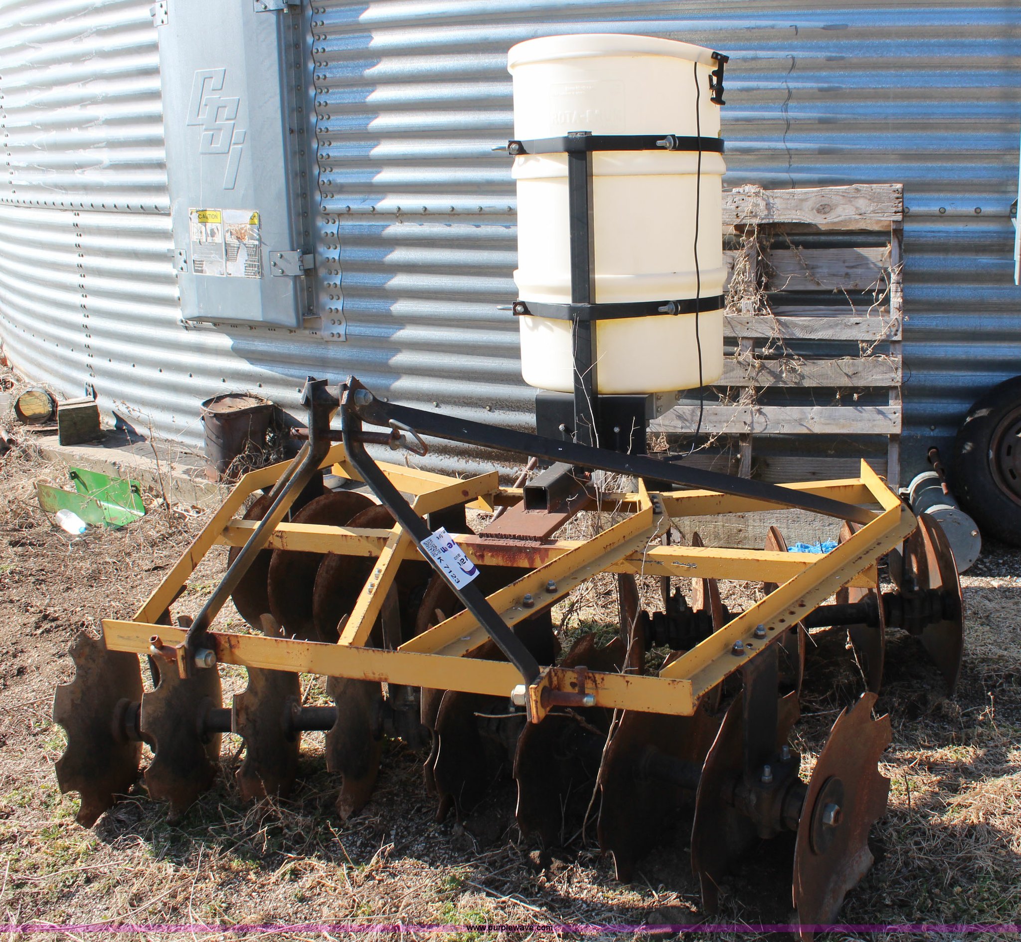 Purple Wave is selling a used Disk in Kansas. This item is a King Kutter disk with roto drum spreader with the following: 5'W, 18" disks, 7.5" spacing, Three point