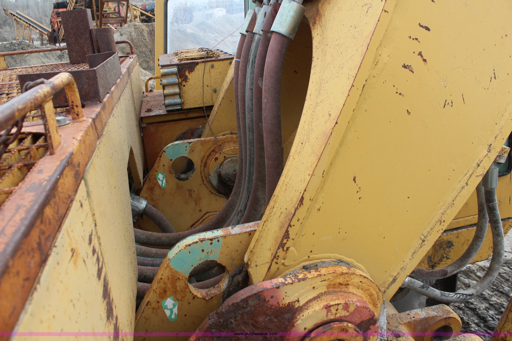 Purple Wave is selling a used Hydraulic Excavator in Kansas. This item is a 1984 Caterpillar 245 excavator with the following: 8,291 hours on meter, Caterpillar 3406 diesel engine, Serial 70V17583, Hydrostatic transmission, Enclosed cab, AC, Front and rear work lights, 14' stick length, 7'W bucket, (6) teeth, 30"W steel track pads, Front glass missing, Hydraulic leaks, 140,900 lbs. base operating weight, Welds on boom, Seat damaged, One owner, Serial 95V01136