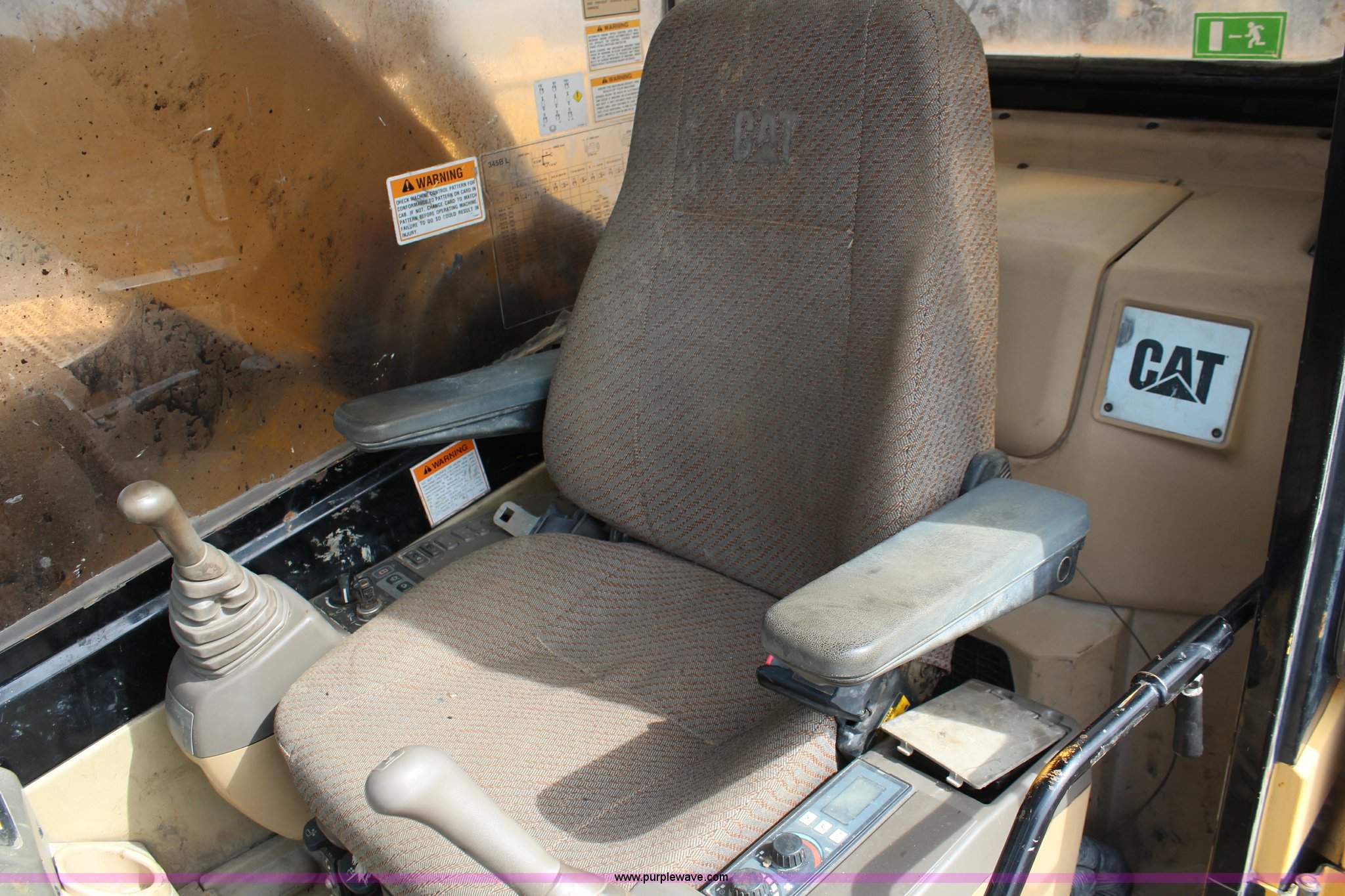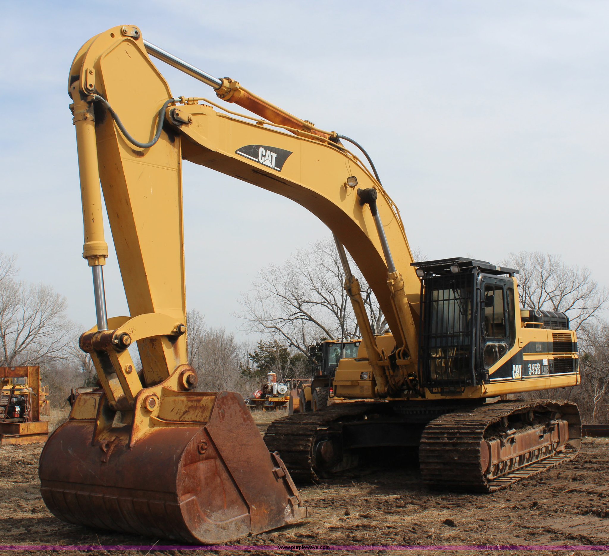 Purple Wave is selling a used Hydraulic Excavator in Kansas. This item is a 1998 Caterpillar 345B L ME excavator with the following: 6,276 hours on meter, Caterpillar 3176 10.3L diesel engine, 425 HP, Hydrostatic transmission, Cloth seat, Window guard, 10' stick length, 8'W bucket, (8) teeth, Front work lights, Rear counter weights, Full length track guard, Nine bottom rollers, 35.5"W steel track pads, One owner, Serial 4SS00674
