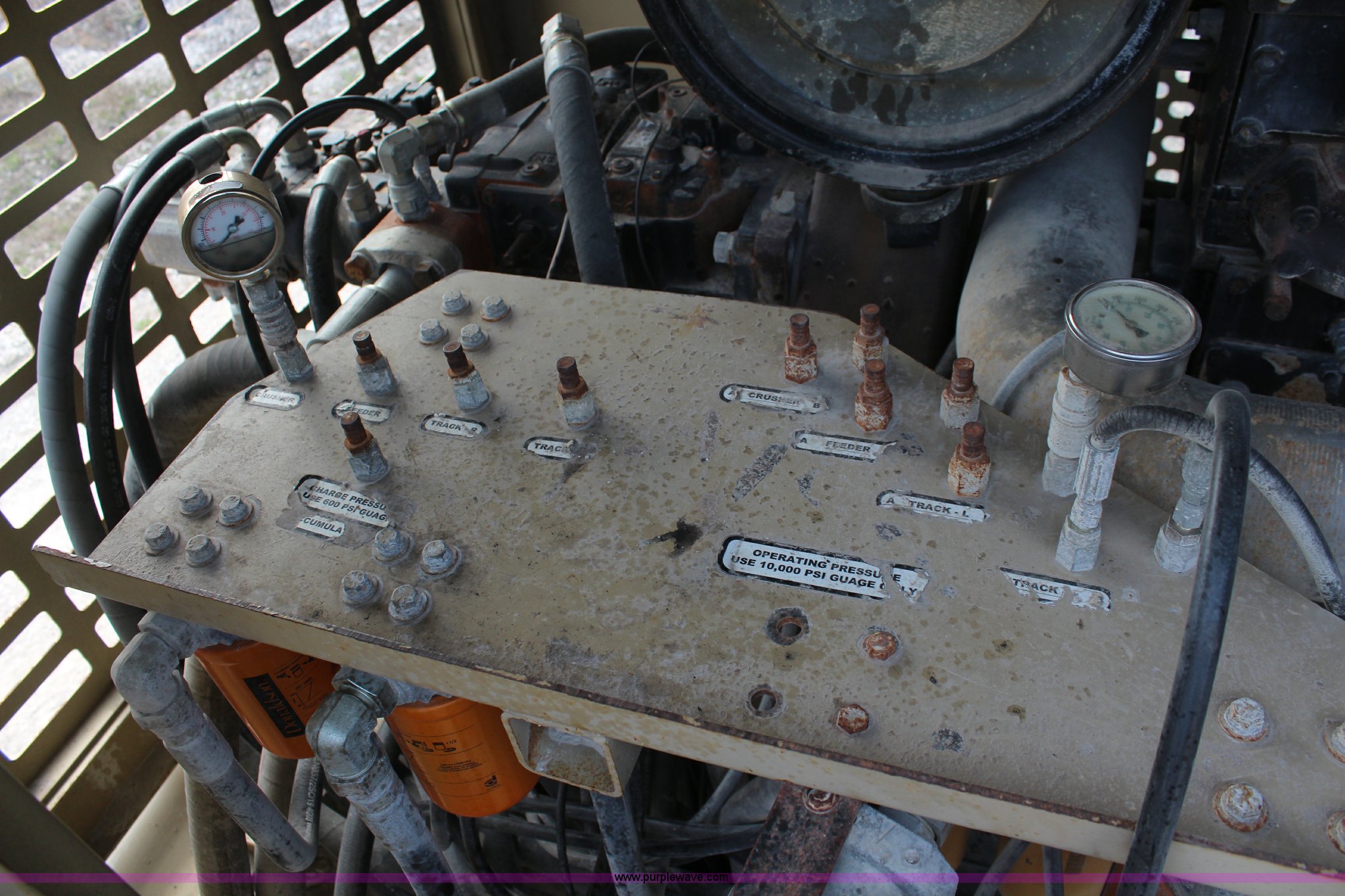 Purple Wave is selling a used Crusher or Crushing Plant in Kansas. This item is a 2004 Kolberg / Pioneer 4250 portable impact crushing plant with the following: 5081 hours on meter, Cummins QSM11-C 10.8L diesel engine, 400 HP, Remote control, 48" discharge belt, 24" screen discharge belt, 48" screening discharge belt, 12' x 5' x 1" screen, 15' x 50" feeding trough, 18" return conveyor, Wash nozzles on discharge conveyor and screen conveyor, 23.6" W track pads, Job order: 601957, Serial 404733