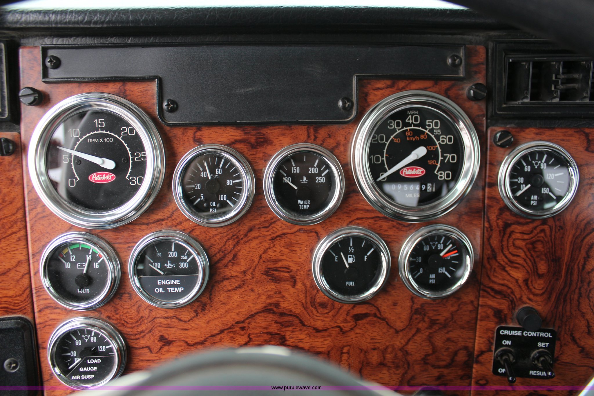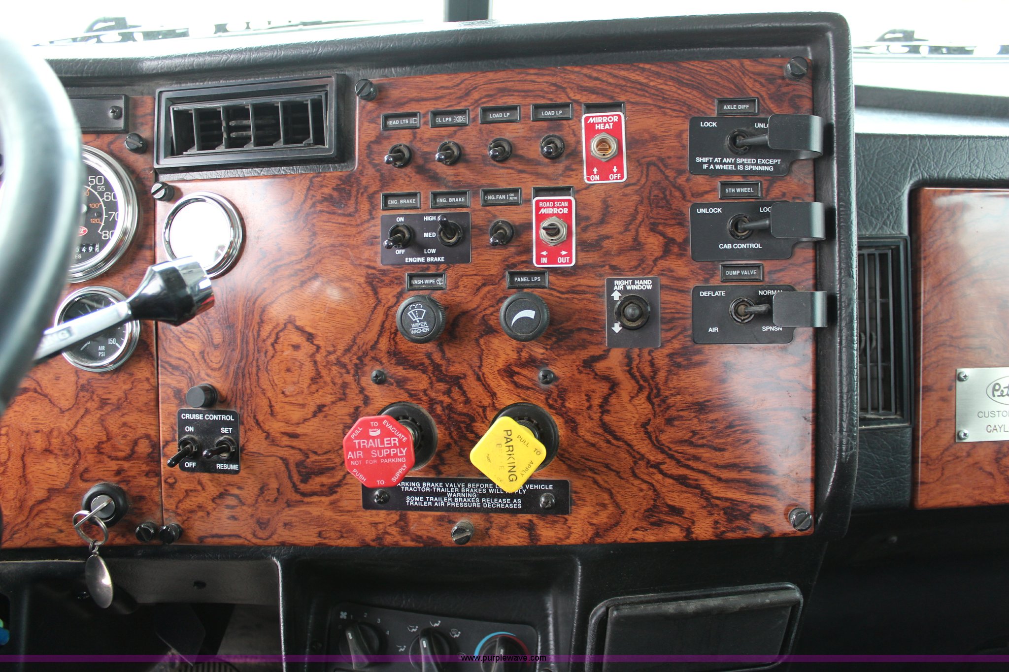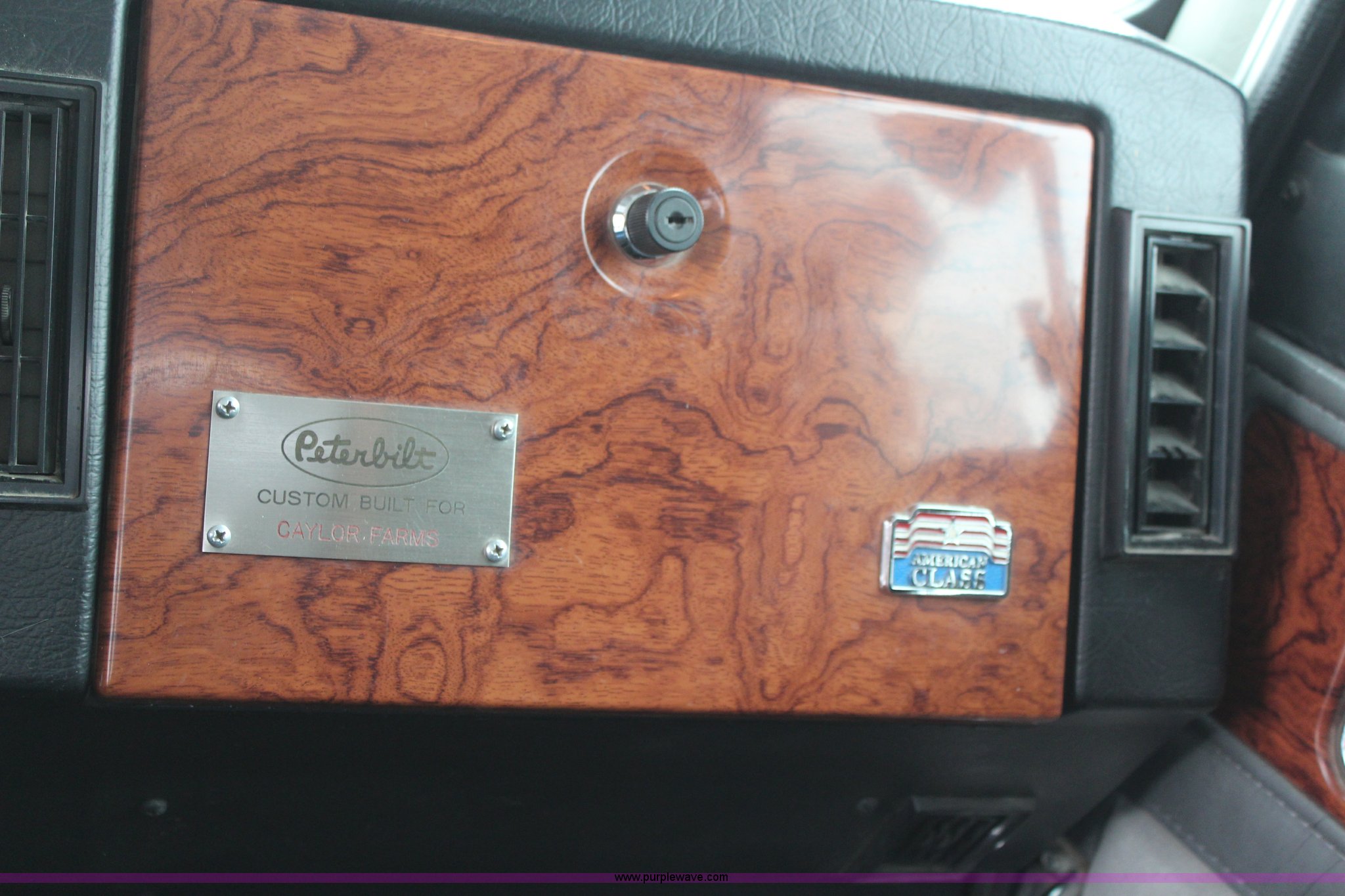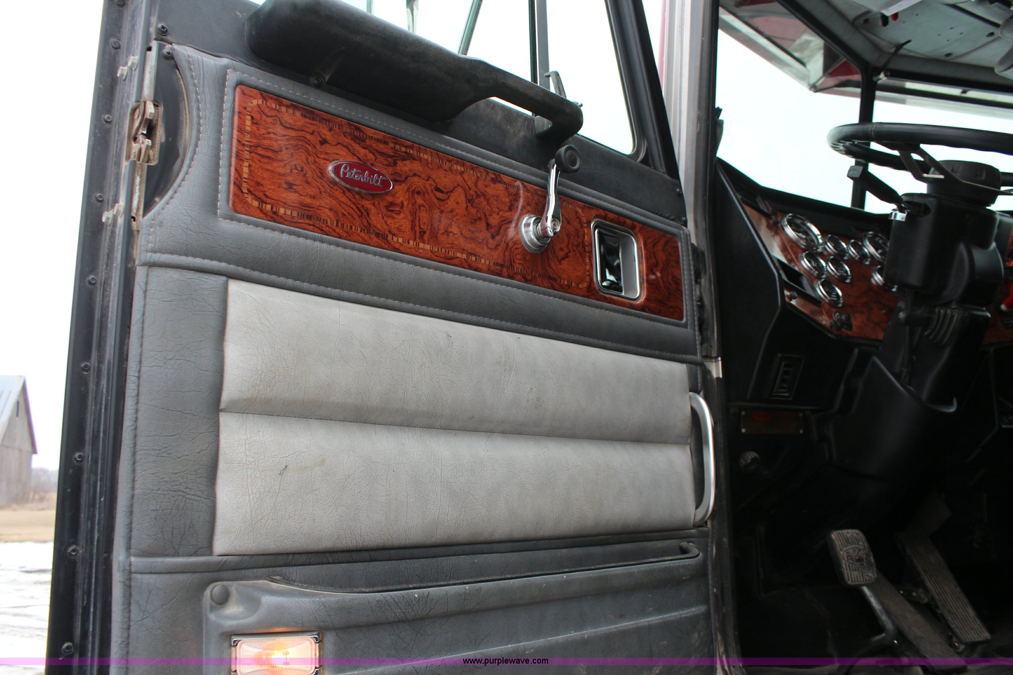 Purple Wave is selling a used Truck Tractor in Kansas. This item is a 1999 Peterbilt 379 semi truck with the following: 95,654 actual miles, Caterpillar C12 12.0L L6 diesel engine, 430 HP, Eaton Fuller 10 speed manual transmission, AC and heat, Cruise, Heated mirrors, Air suspension seat, Air ride cab, Dump valves, Exterior visor, Chrome bumper, Block heater, Air slide fifth wheel plate, 110 gallon fuel tank, Aluminum deck plate, Aluminum full fenders, Dual rear exhaust stacks, Rear lights, Air suspension, Air brakes, Jake brake, Aluminum wheels, 233" wheelbase, 11R24.5 tires, GVWR 50,000 lbs, FAWR 12,000 lbs, IAWR 19,000 lbs, RAWR 19,000 lbs, One owner