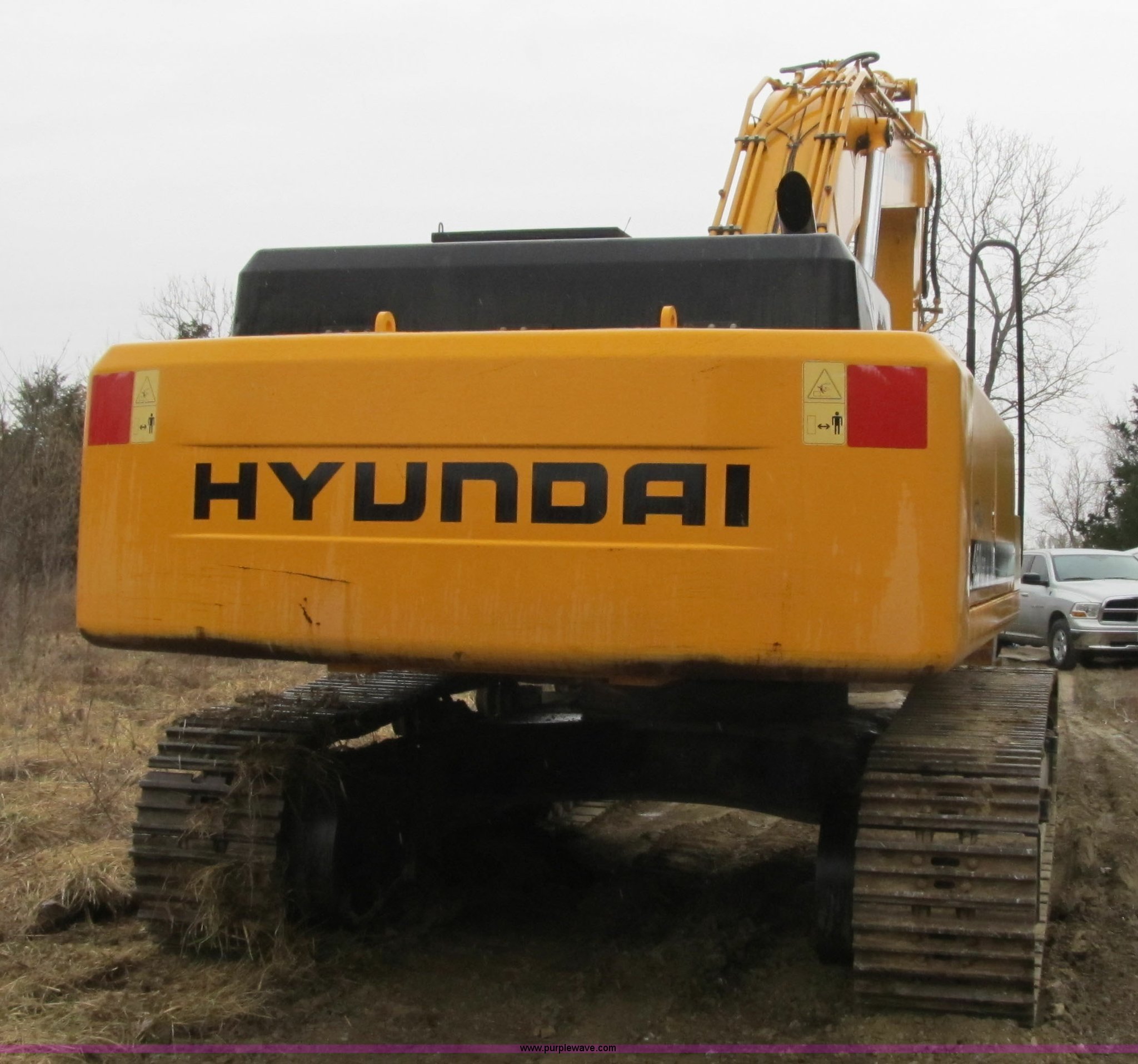 Purple Wave is selling a used Hydraulic Excavator in Missouri. This item is a 2003 Hyundai Robex 450LC-7 excavator with the following: 462 hours on meter, Cummins QSM11-C 10.8L six cylinder turbo diesel engine, 325 net HP, Hydrostatic transmission, Two speed travel, Enclosed cab, AC and heat, Suspension seat, Front work lights, Travel alarm, 11'4"L stick, Auxiliary hydraulics, Hyundai 7'W bucket, (7) teeth, Side cutters, Counter weight, Eight bottom rollers, 24"W triple grouser tracks pads, 101,400 lbs. base operating weight, One owner, Serial NB0110072
