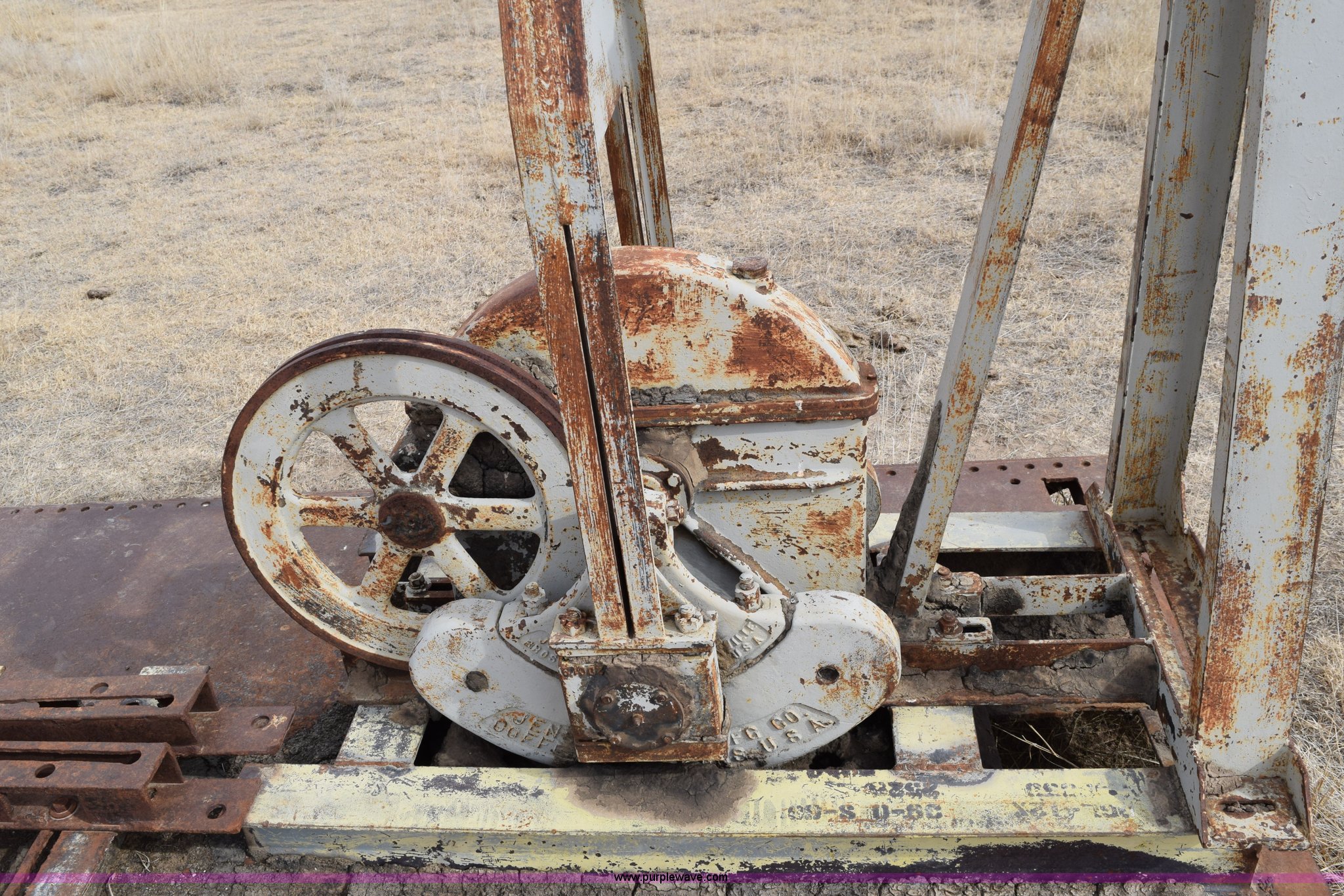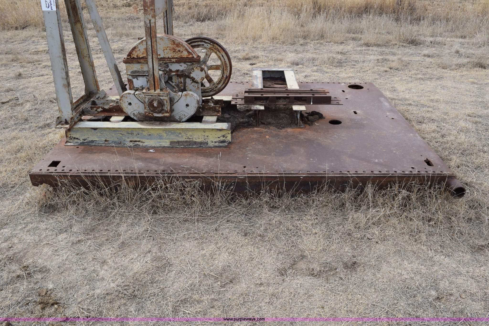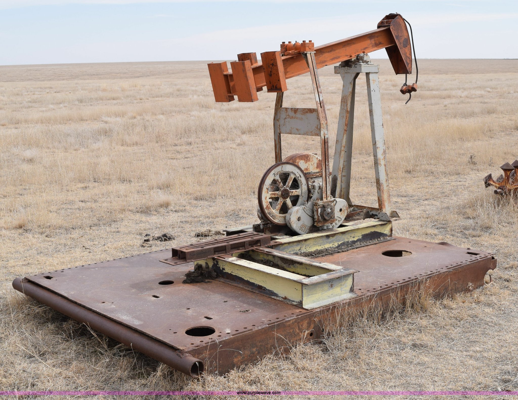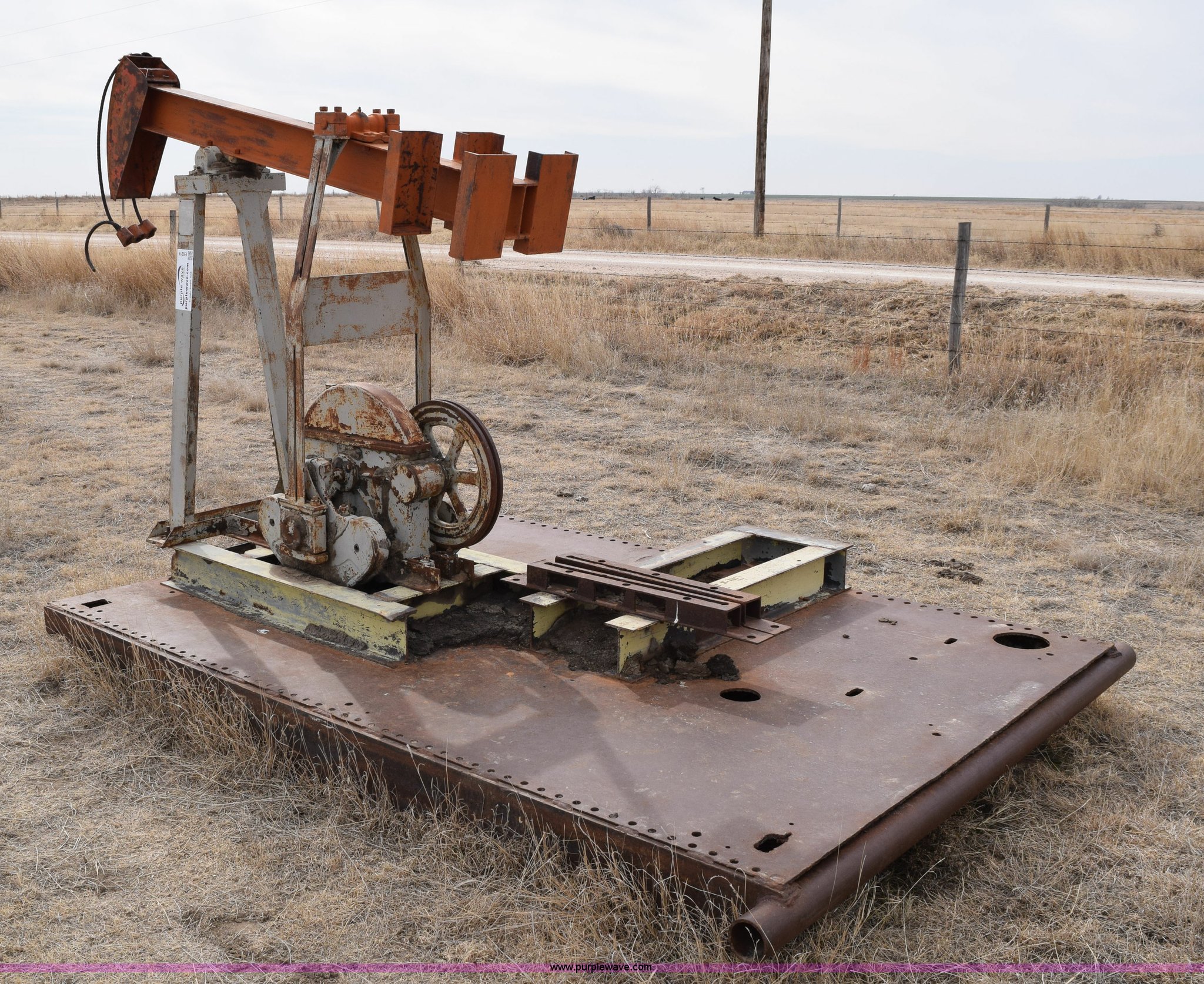 Purple Wave is selling a used Pump in Kansas. This item is a Jensen straight lift pump jack with the following: Size 50D, 6' beam, 4"W x 6"H I-beam, 9'2"L x 6'3"W skid, 10.6:1 gear box, Serial 1029