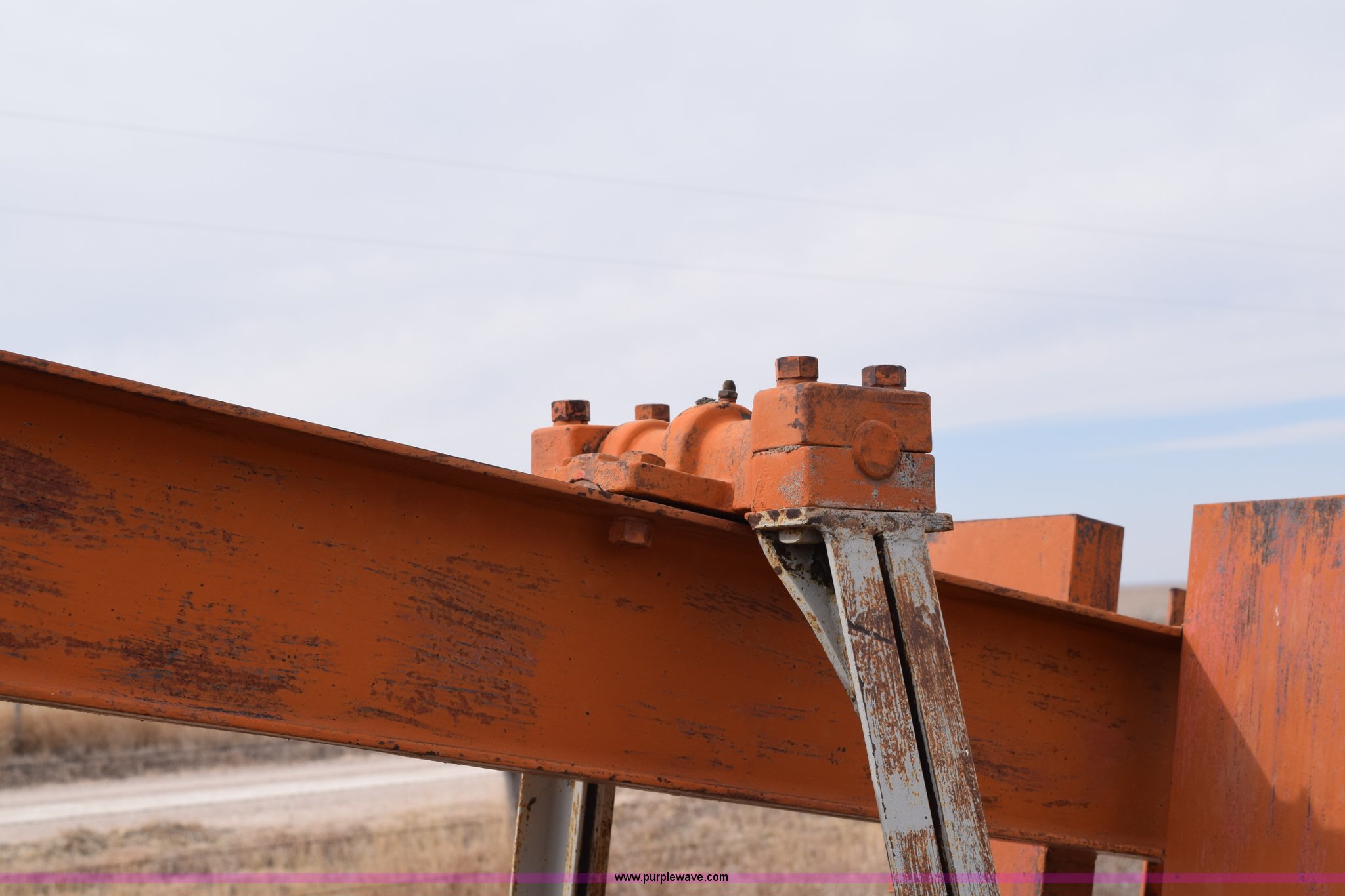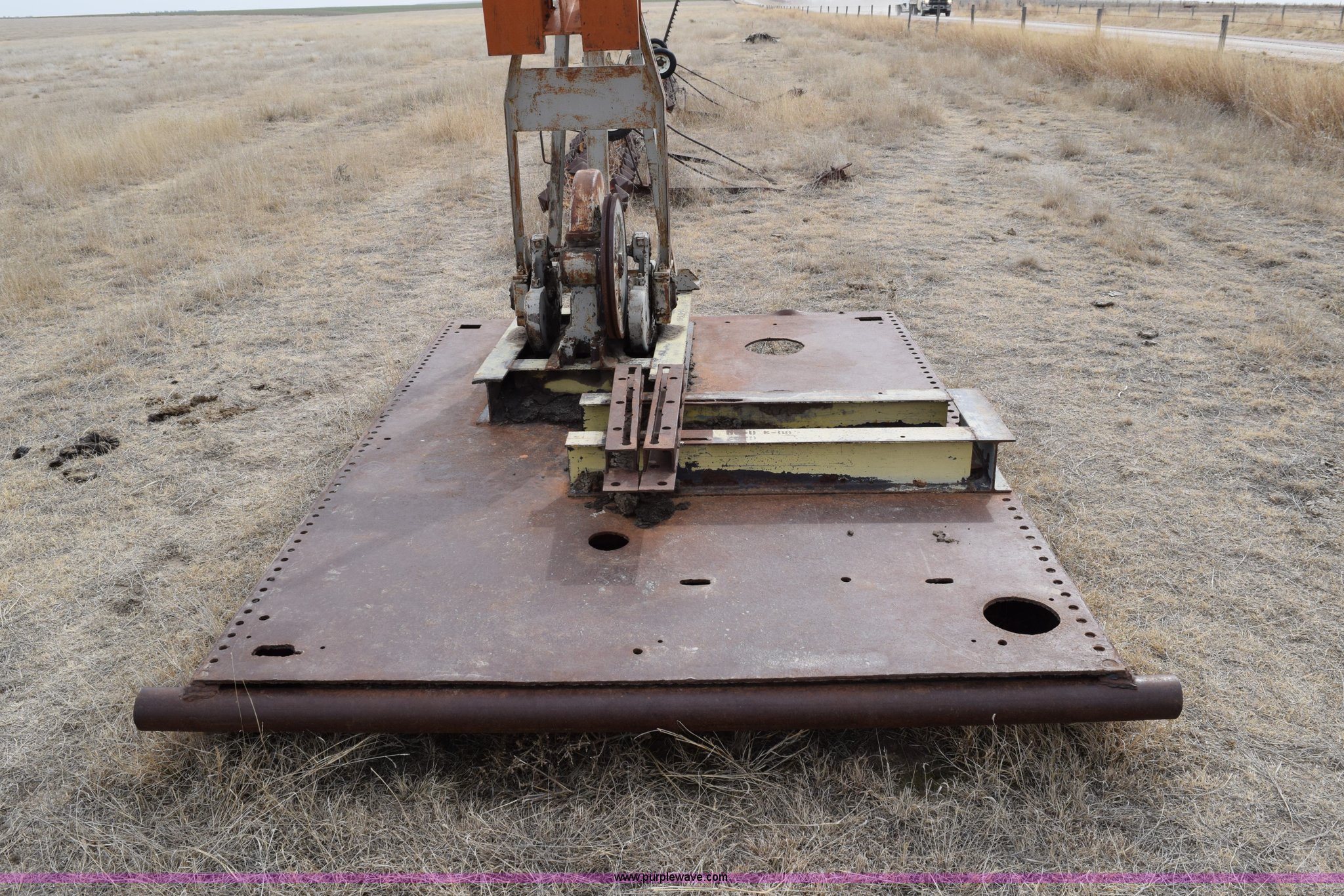 Jensen straight lift pump jack. Size 50D, 6' beam 4"W x 6"H I-beam, 9'2"L x 6'3"W skid, 10.6:1 gear box, Serial 1029. Winter Livestock. 1414 E Trail St. Dodge City, KS 67801