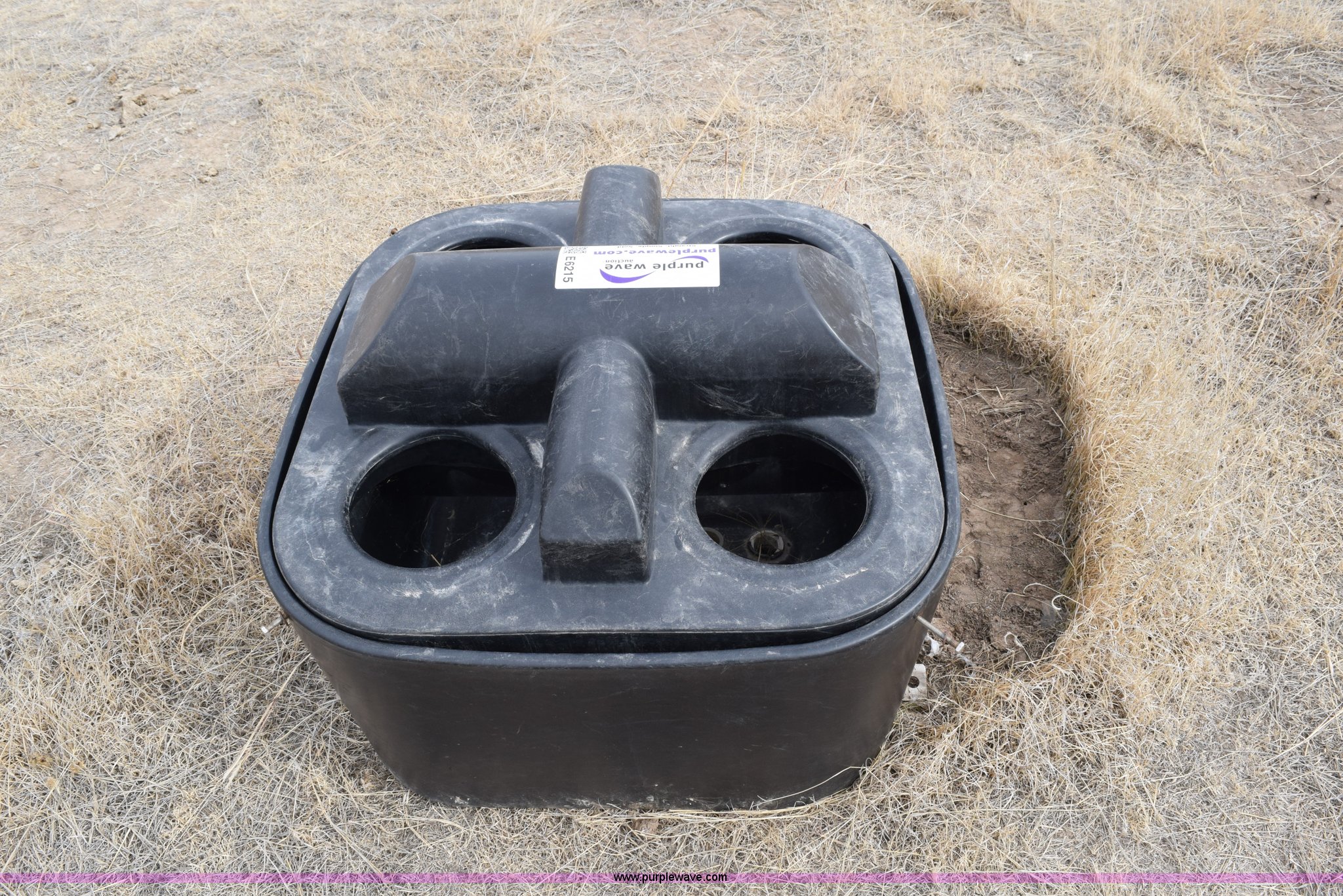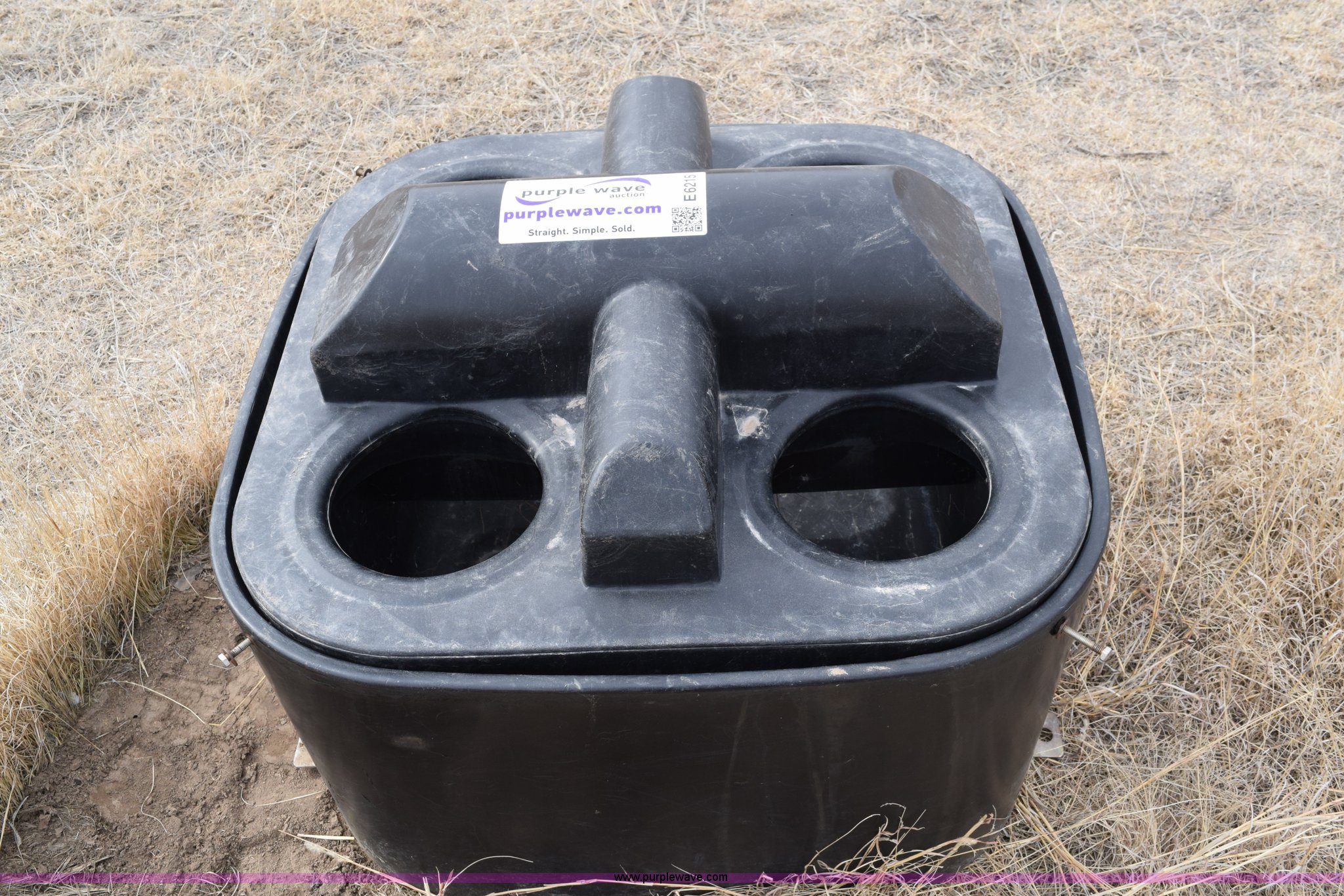 Purple Wave is selling a used Livestock Equip. in Kansas. This item is a Poly livestock water tank with the following: 36"L x 36"W x 18"H, 1 1/4" plumbed
