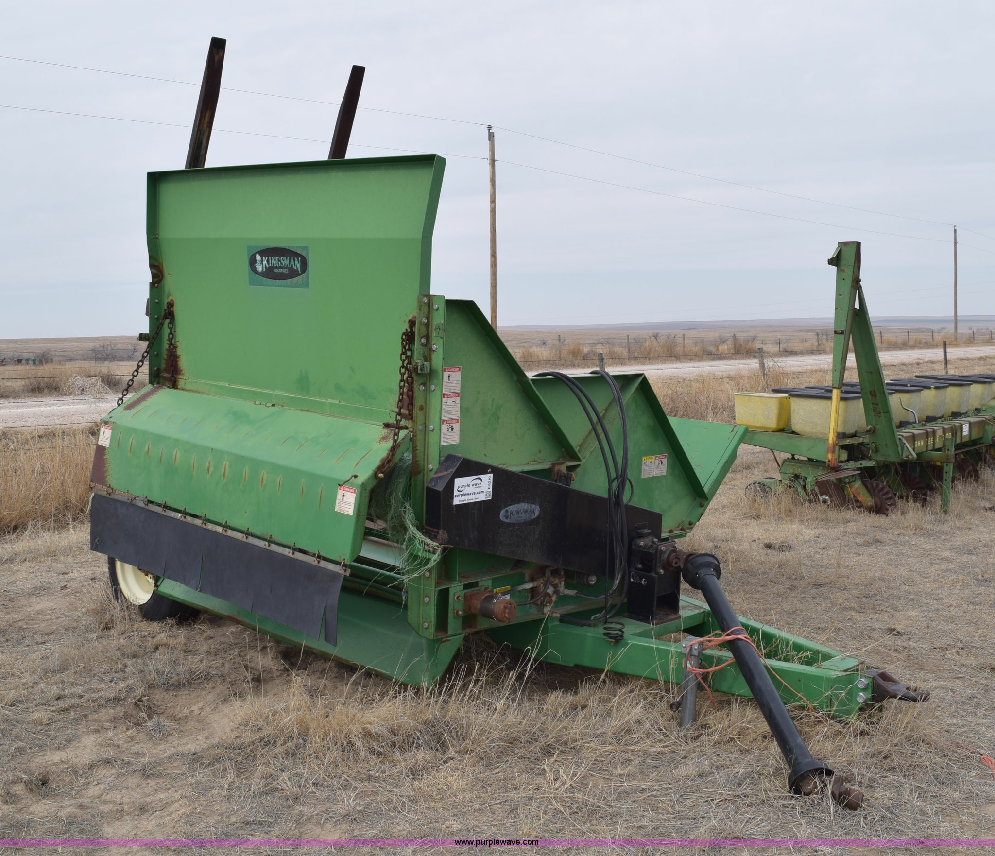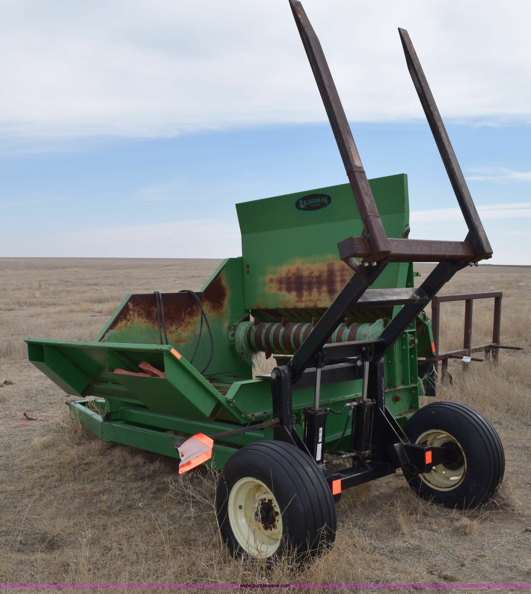Purple Wave is selling a used Feed Mixer or Bale Processor in Kansas. This item is a Kingsman Industries bale processor with the following: 6'3"W feed table, 5'9"W x 12" diameter cutter head, Bale loader, Adjustable deflector, 540 PTO, Pin hitch, 11L-15 tires