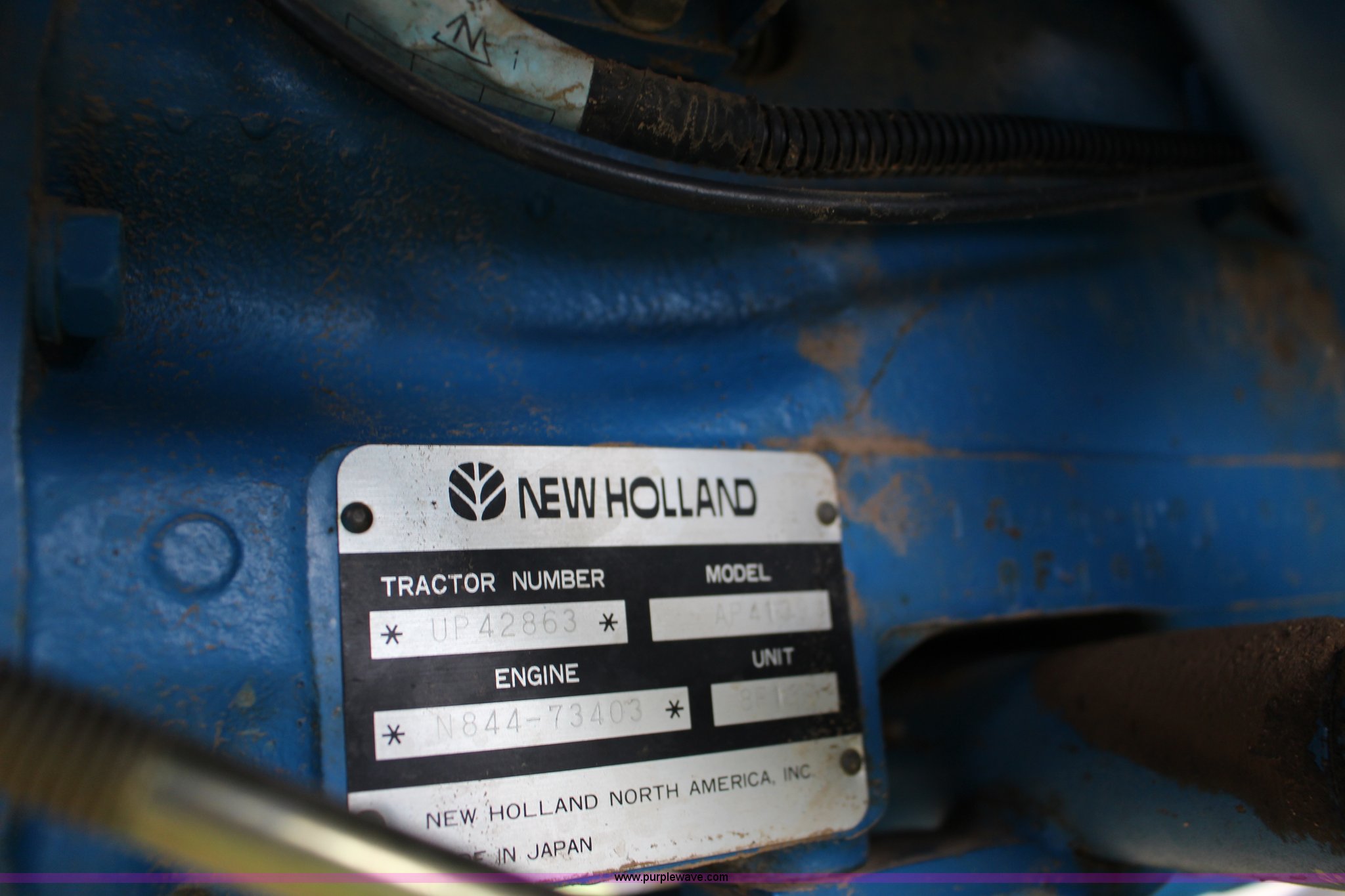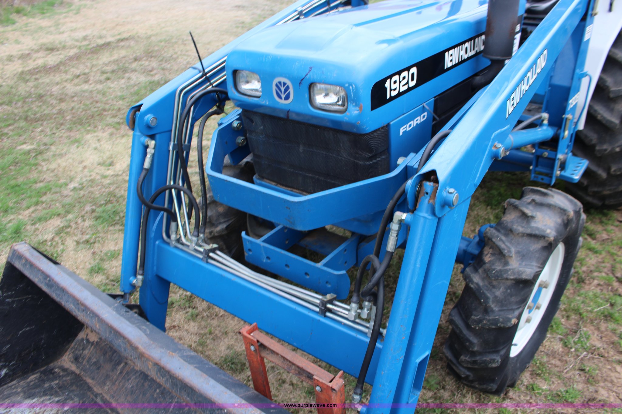 Purple Wave is selling a used Tractor in Kansas. This item is a 1998 New Holland 1920 MFWD compact utility tractor with the following: 536 hours on meter, Four cylinder diesel engine, 32 HP, Synchronized shuttle shift transmission, 12F12R gears, New HOlland 7308 loader, 68"W bucket, Joystick loader control, Three point, 540 PTO, Draw bar, Rear hydraulic remote, 8-16 front tires, 14.9-24 rear tires, Serial UP42863
