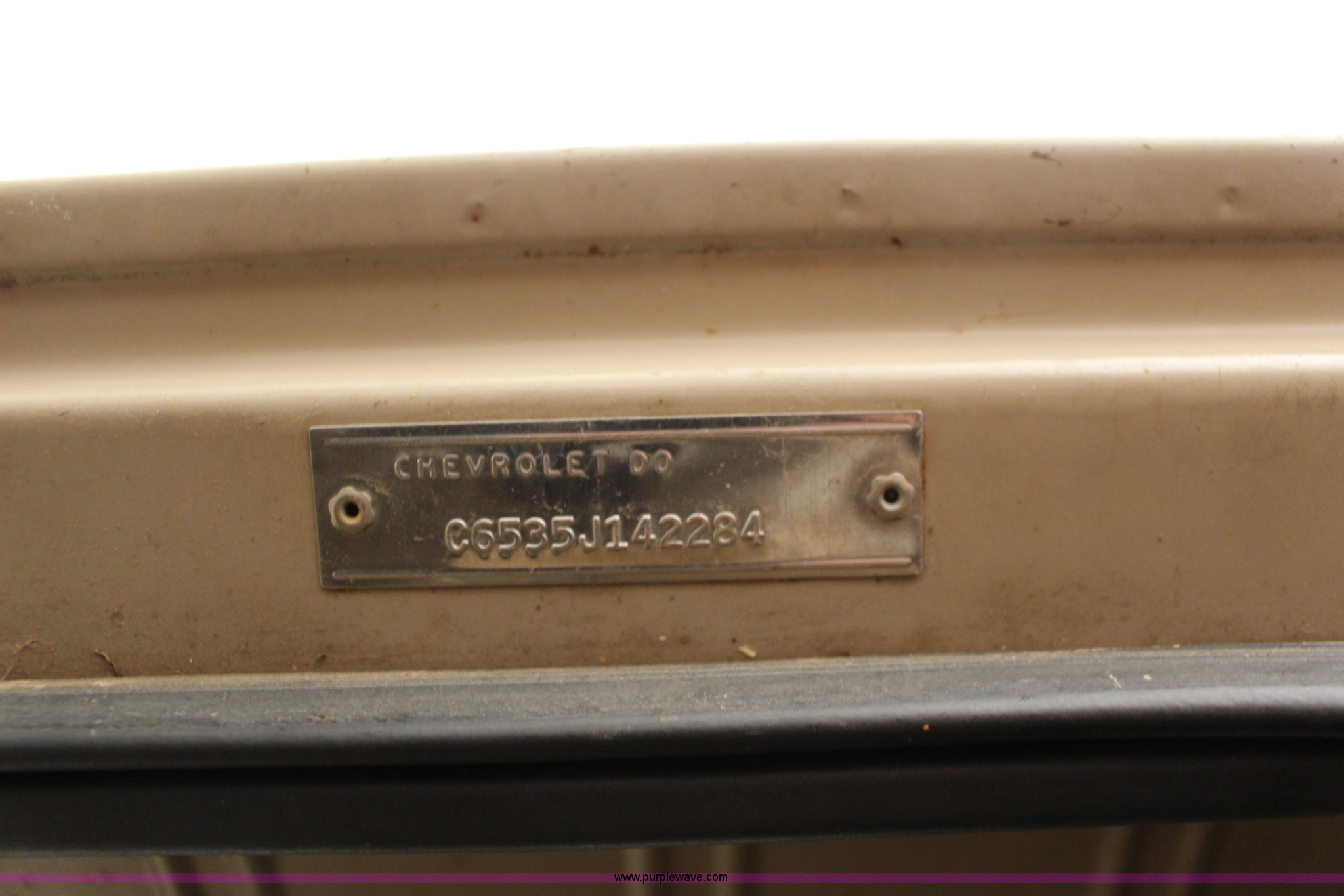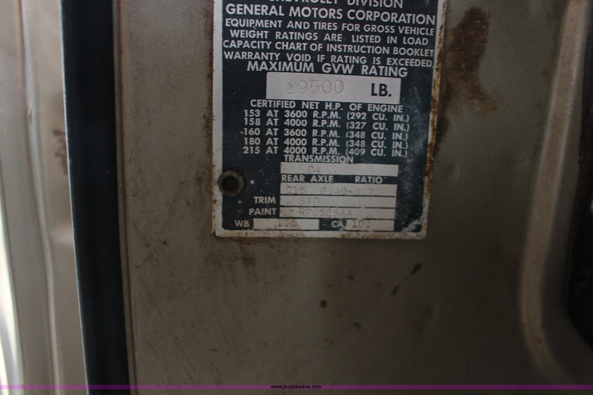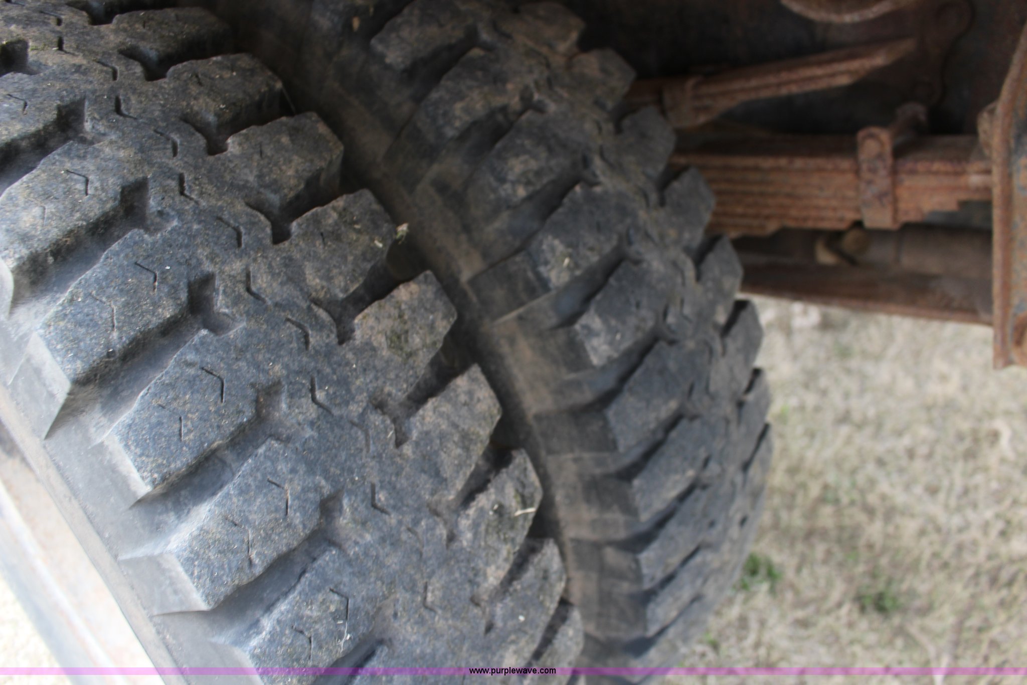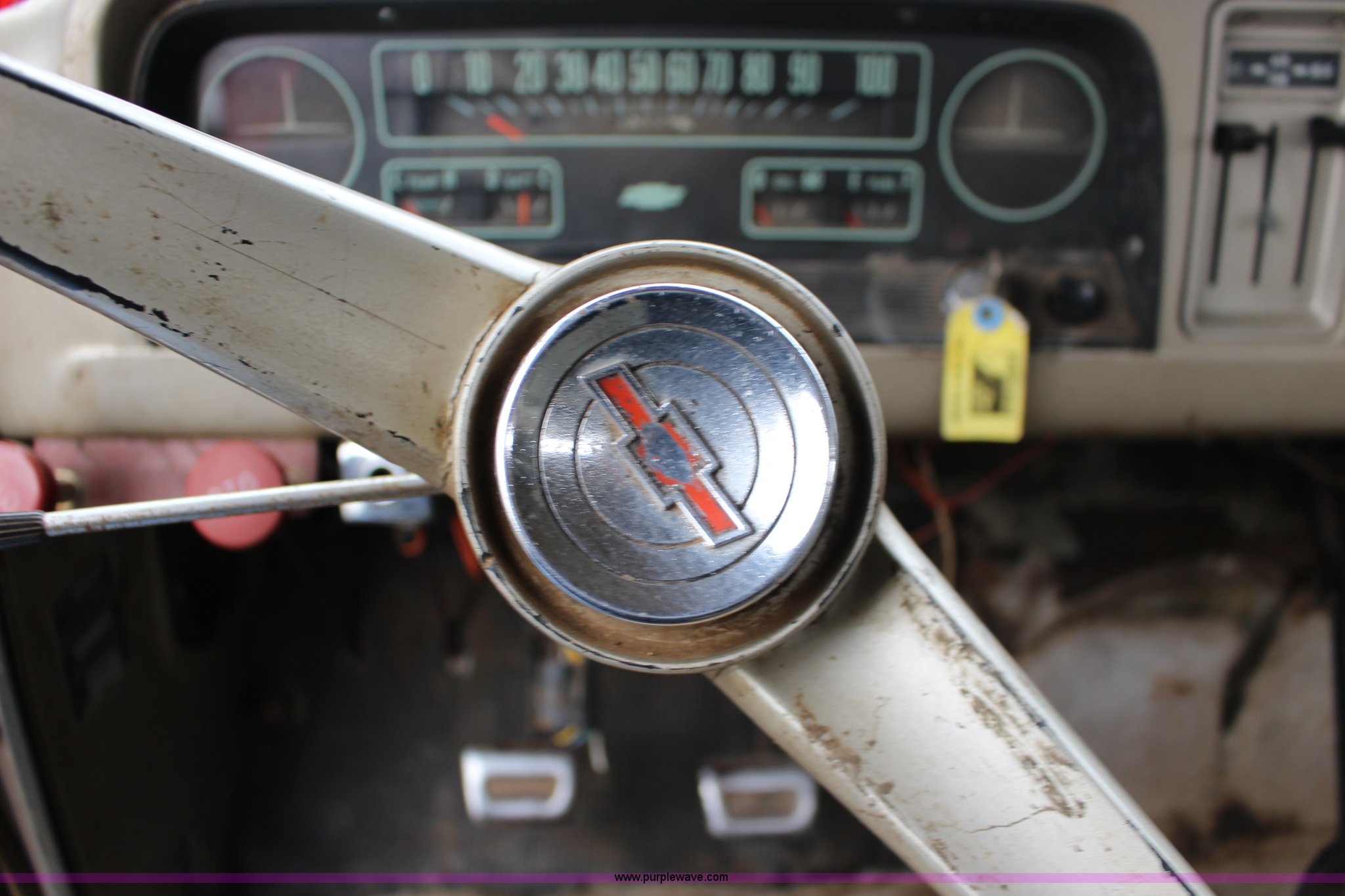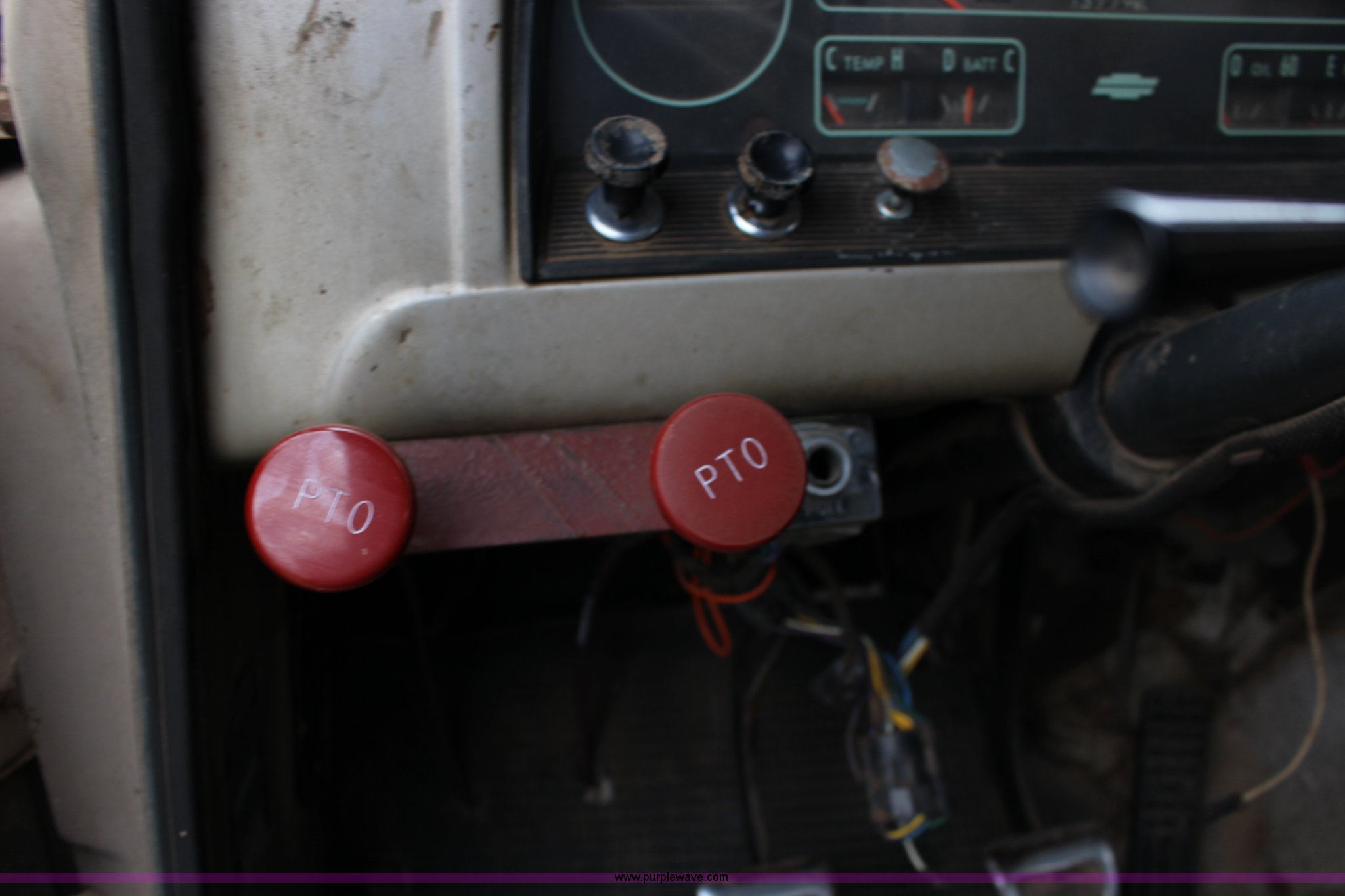 Purple Wave is selling a used Grain Truck in Kansas. This item is a 1965 Chevrolet C60 grain truck with the following: 53,779 miles on odometer, Six cylinder gas engine, Four speed manual transmission, Two speed rear end, Manual windows and locks, 186"L x 94"W bed, 30"H sides, Wood floor, Garwood hoist, PTO, Spring suspension, 8.25-20 tires, Recently replaced battery, Interior/exterior cosmetic damage