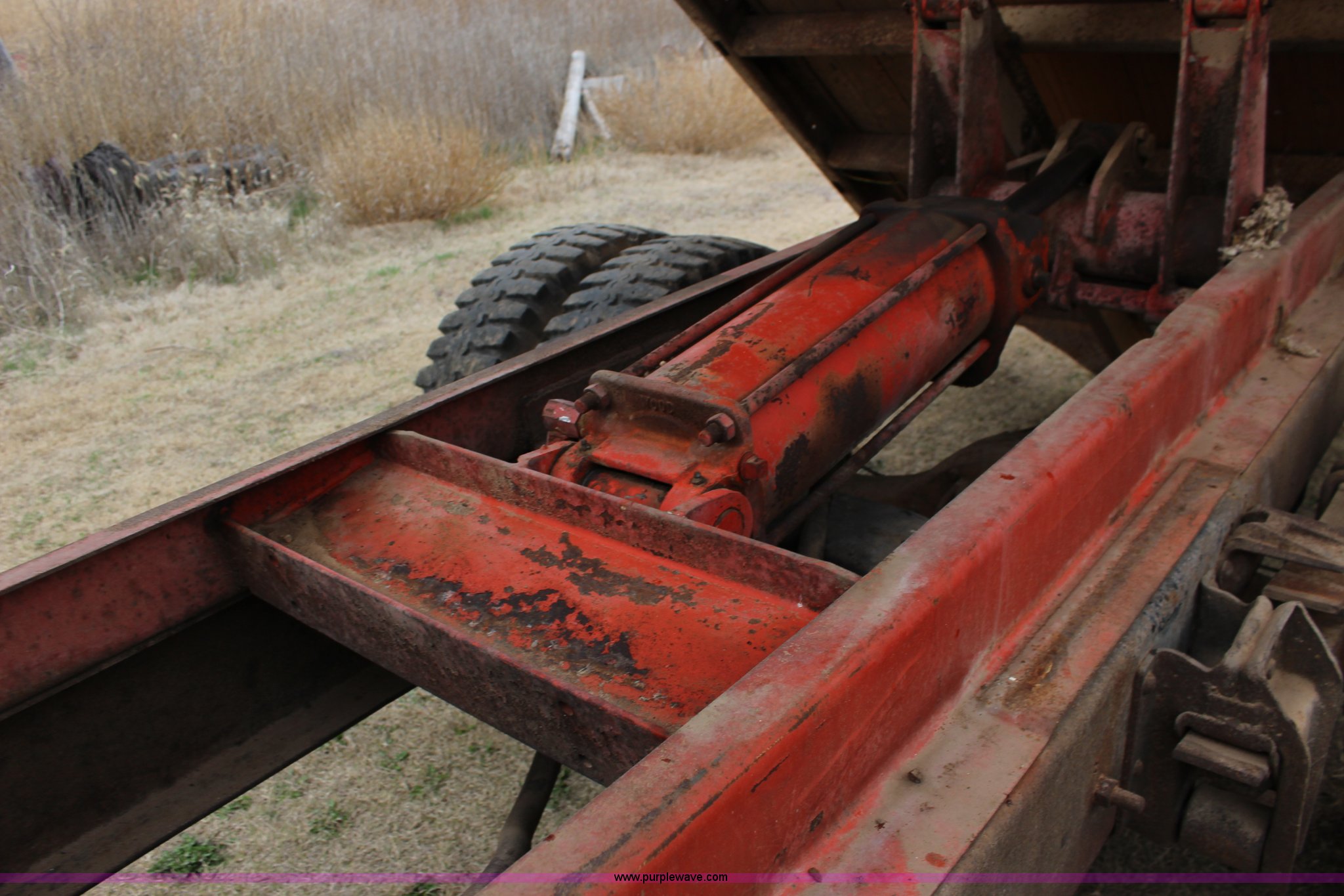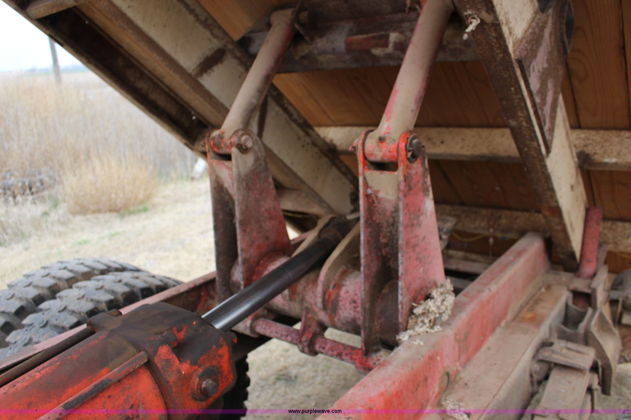 1965 Chevrolet C60 grain truck. 53,779 miles on odometer, Six cylinder gas engine, Four speed manual transmission, Two speed rear end, Manual windows and locks, 186"L x 94"W bed 30"H sides, Wood floor, Garwood hoist, PTO, Spring suspension, 8.25-20 tires, Recently replaced battery , Interior/exterior cosmetic damage. Read or listen to seller interview. C6535J142284. Morton Barker Retirement Sale. Pratt, KS 67124