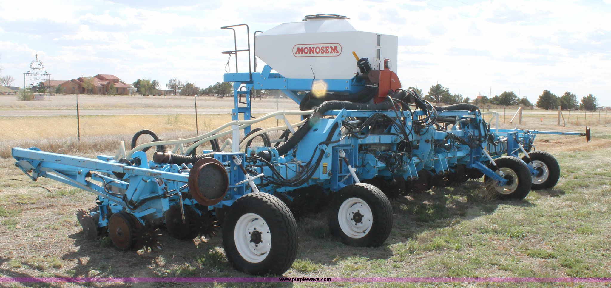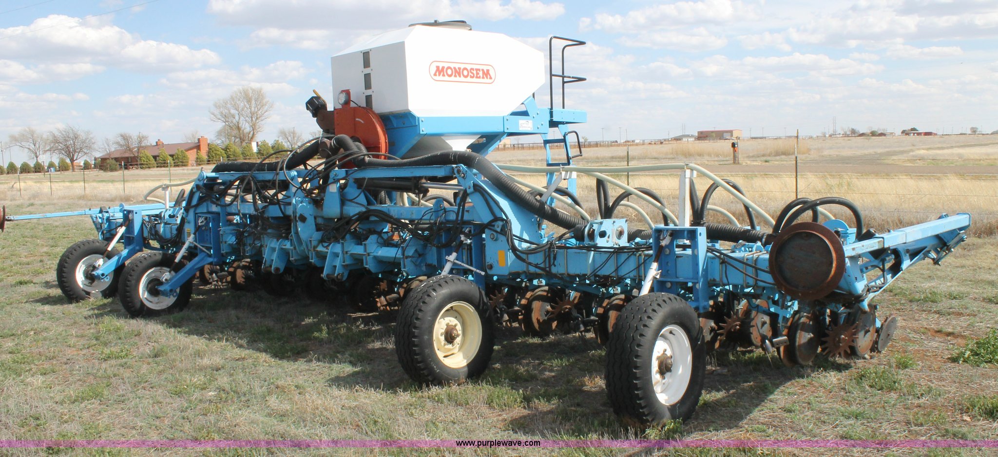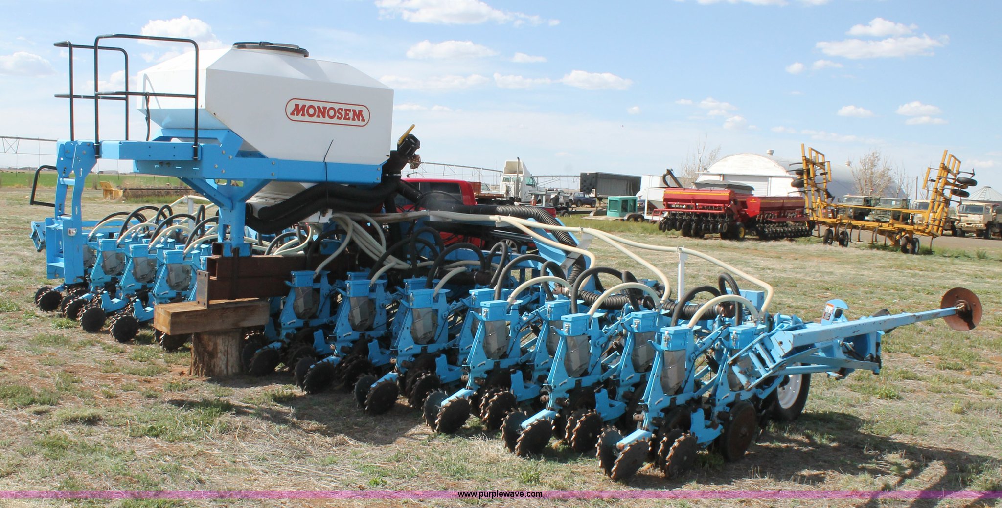 Purple Wave is selling a used Planter in New Mexico. This item is a Monosem NG Plus twin row planter with the following: 12 rows, Two units per row, 30" spacing, Double disk, Press wheels, Trash handlers, Orthman stack folding toolbar, Central seed box, Air delivery, Hydraulic row markers, Rear hitch, Three point, 11L-16 tires