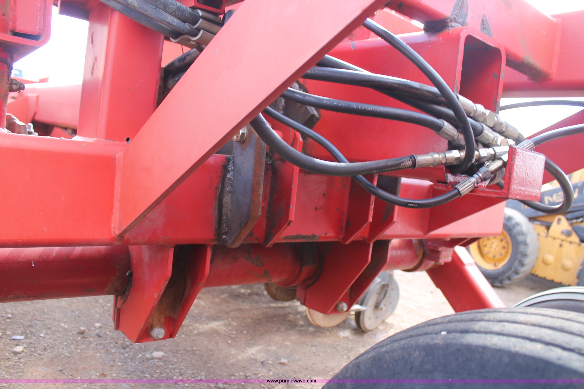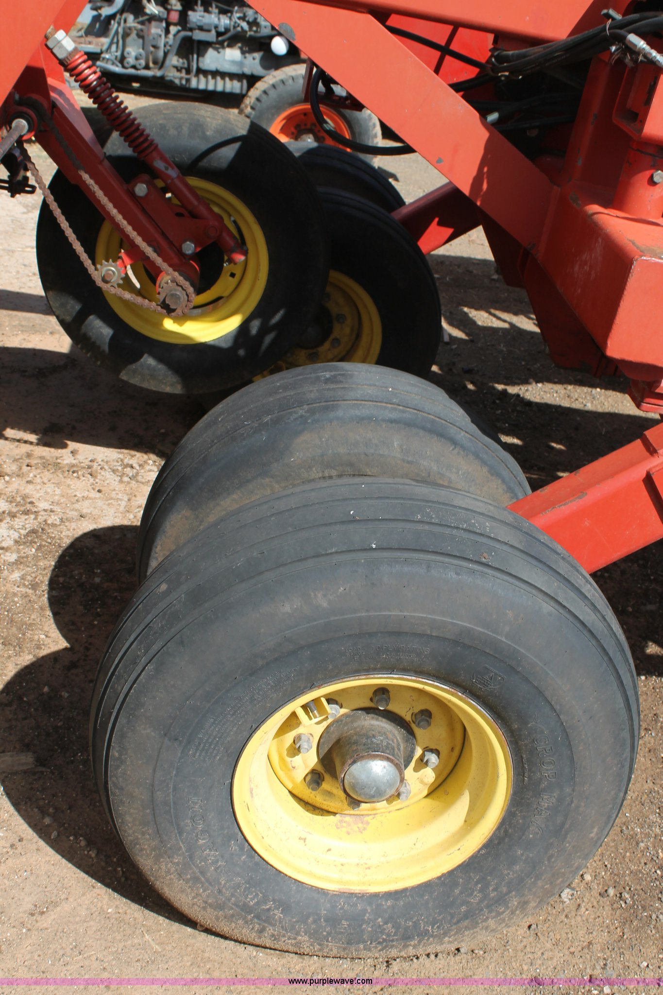 Purple Wave is selling a used Grain Drill or Seeder in New Mexico. This item is a Sunflower 9431 grain drill with the following: 40'W, Hydraulic raise, lower, and fold, Double disk, Press wheels, 14" disks, Disk scrapers, Folding platforms, Two point, 9.5L-15 tires, Serial 9498-212