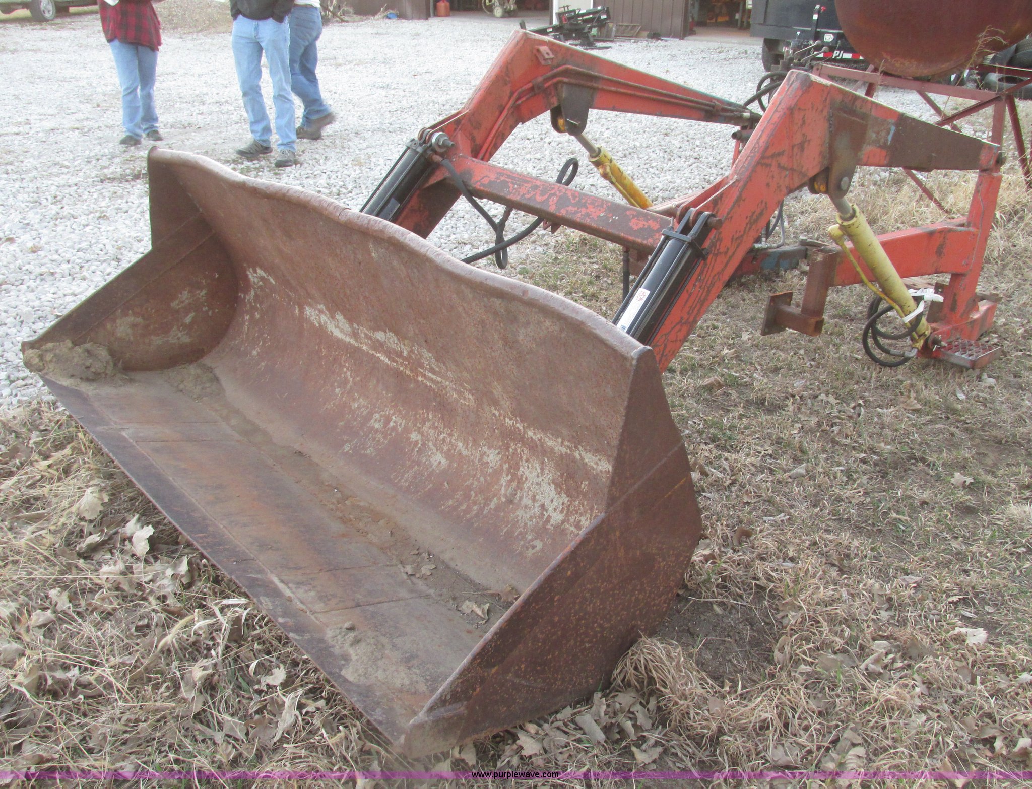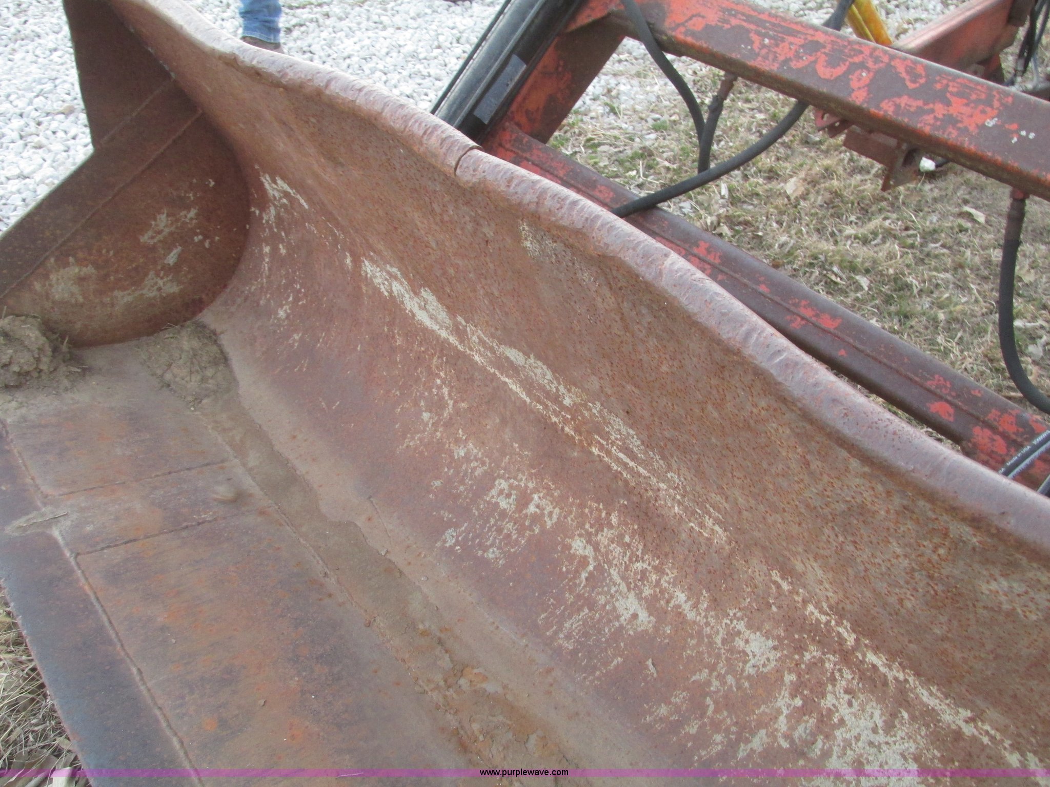 Ford 772 tractor loader. 80"W I.D. bucket Smooth cutting edge, Two lever loader control, Side access steps, Top edge cracked, One bucket hydraulic cylinder replaced in fall 2014, Fits Ford tractors, has been modified to fit Massey-Ferguson 175 tractors. 2733 Niagara Trail. Logan, IA 51546