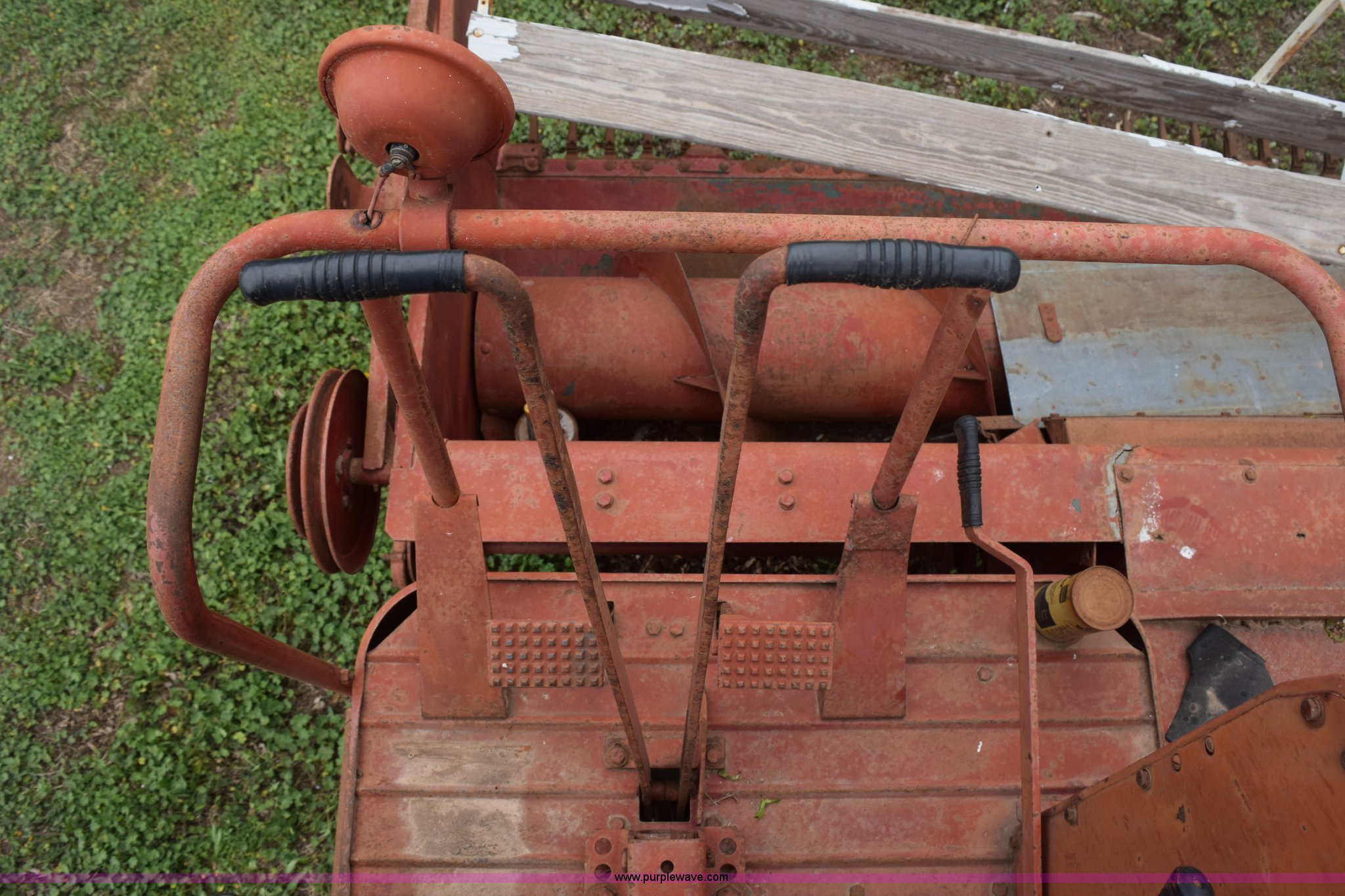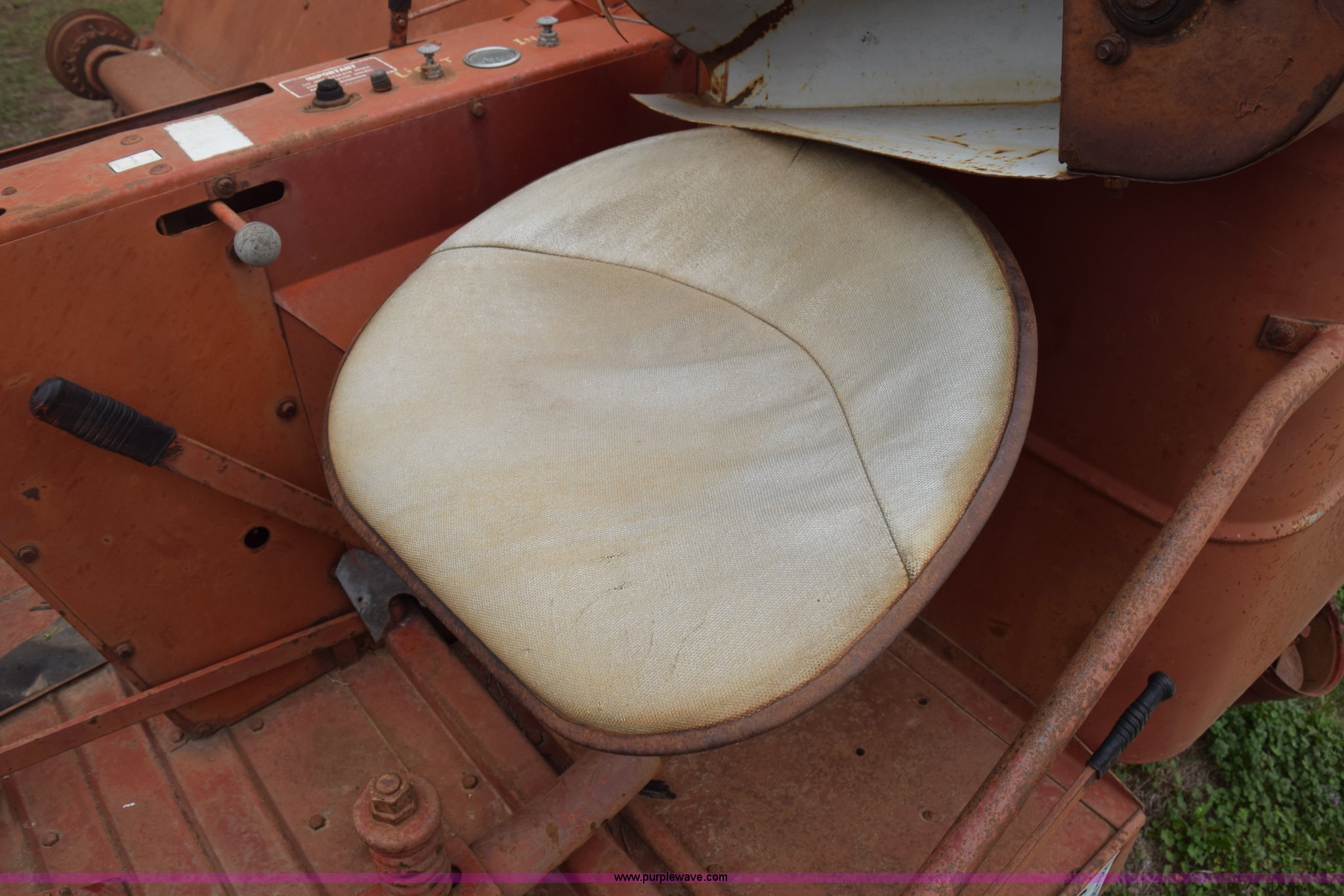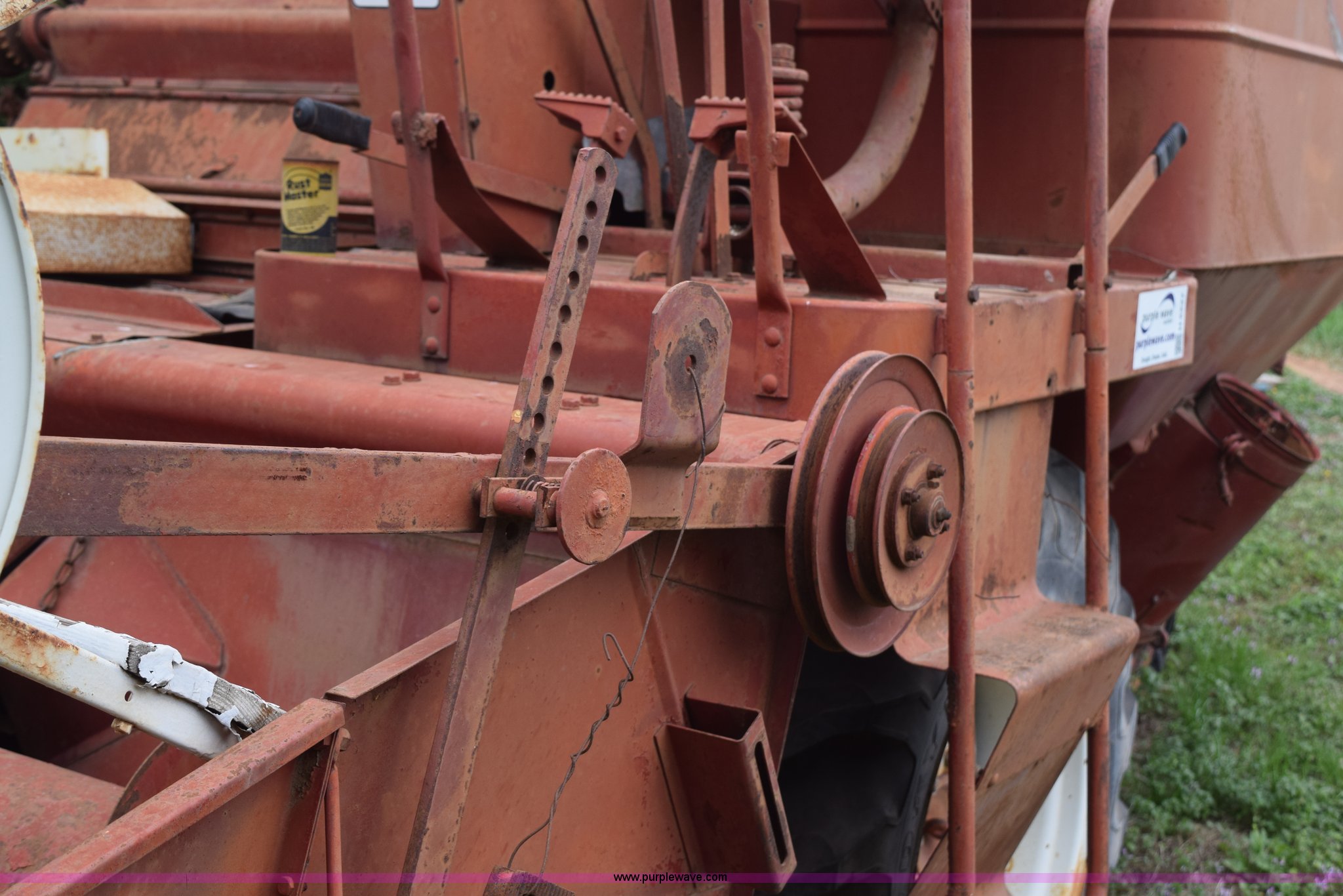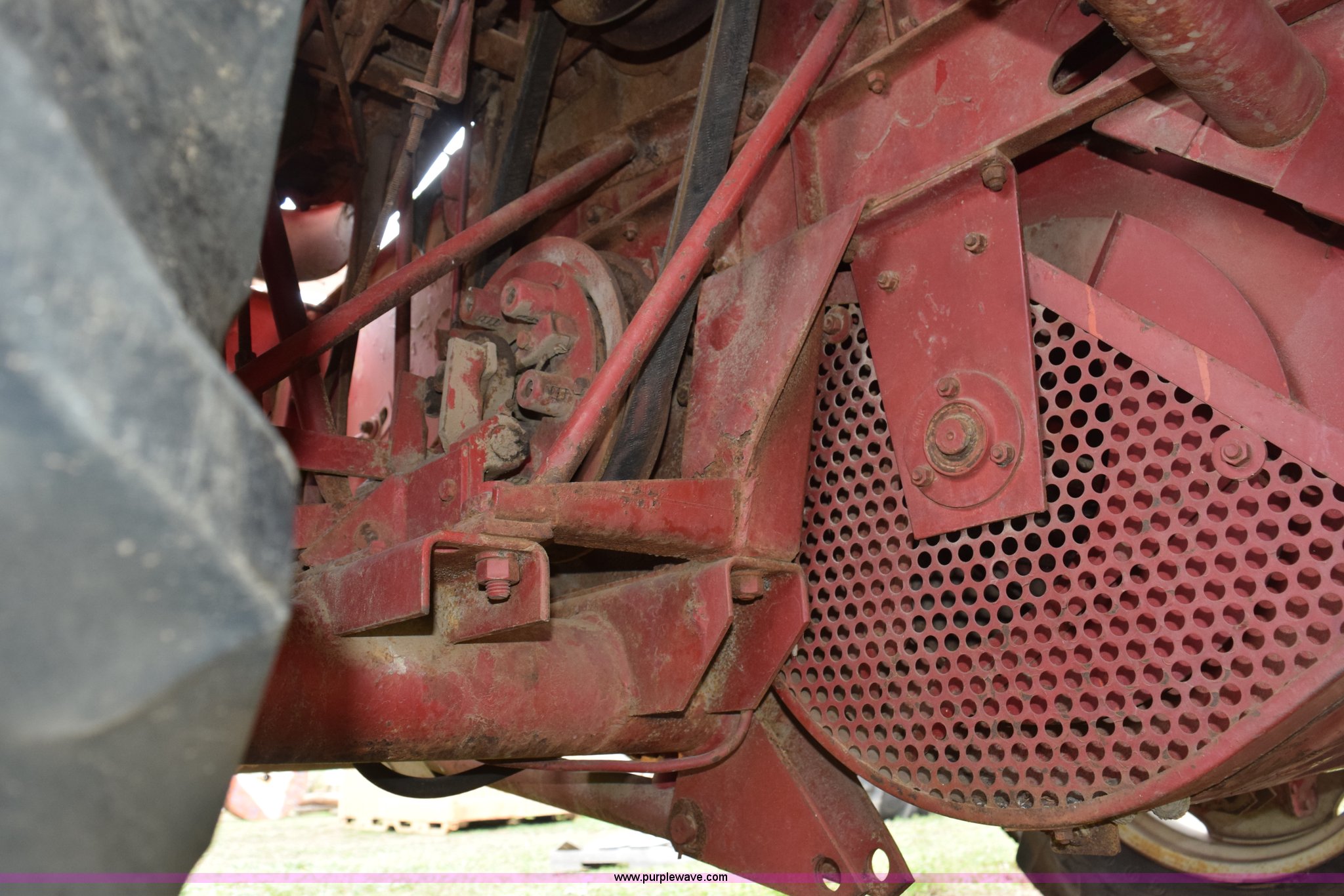 Purple Wave is selling a used Combine in Kansas. This item is a 1968 Mccormick International 91 combine with the following: International four cylinder gas engine, Serial H1399, Variable speed transmission, Spring suspension seat, 10' header, Adjustable reel, Damaged, Straw spreader, Toolbox, 12.4-24 front tires, 6.70-15 rear tires, Belts and parts included, No radiator, Missing auger, Bin damage, Non-operational unit, Serial H1373