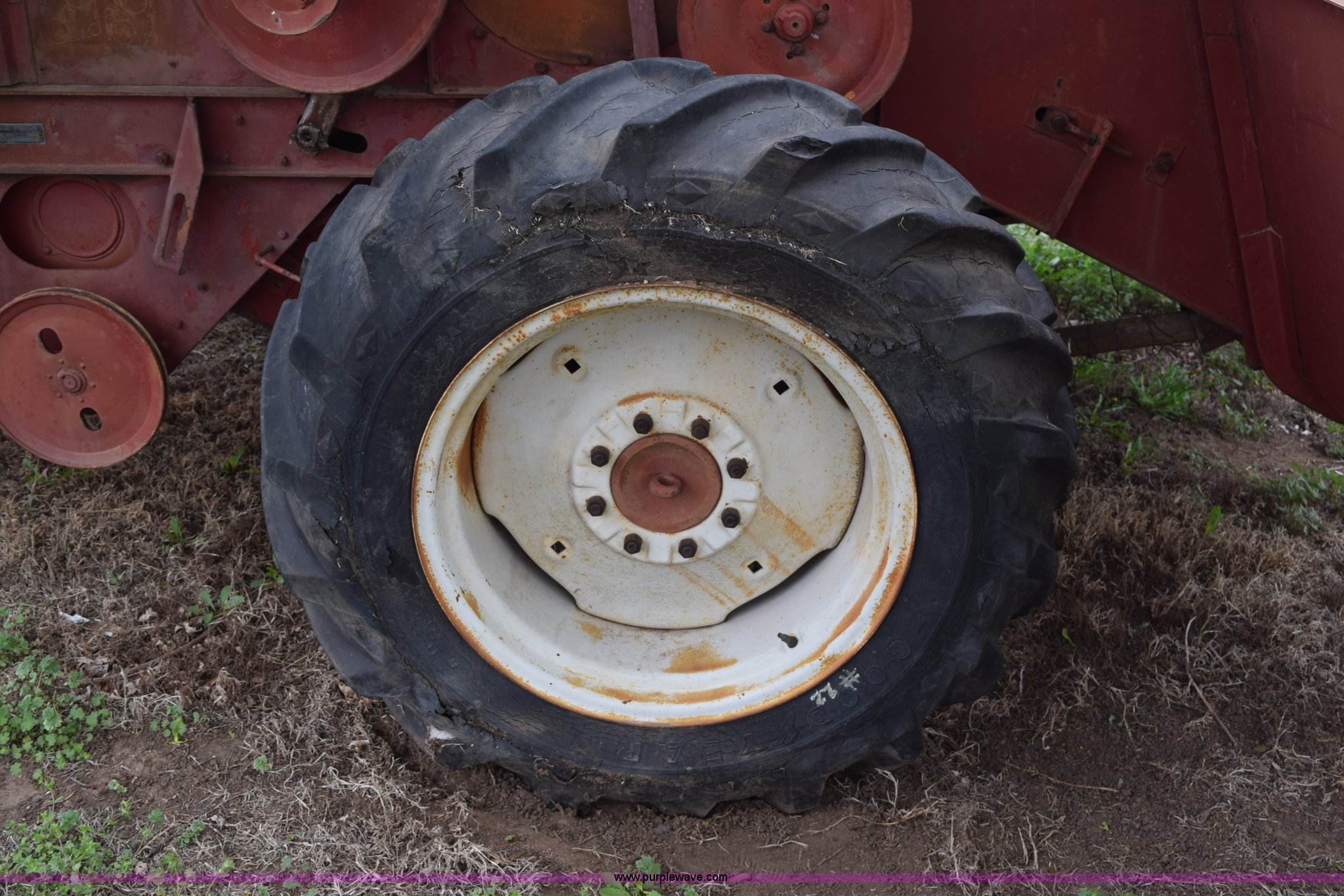 1968 Mccormick International 91 combine. International four cylinder gas engine Serial H1399, Variable speed transmission, Spring suspension seat, 10' header Adjustable reel, Damaged, Straw spreader, Toolbox, 12.4-24 front tires, 6.70-15 rear tires, Belts and parts included, No radiator, Missing auger, Bin damage, Non-operational unit, Serial H1373. 6421 N 279th St W. Mount Hope, KS 67108