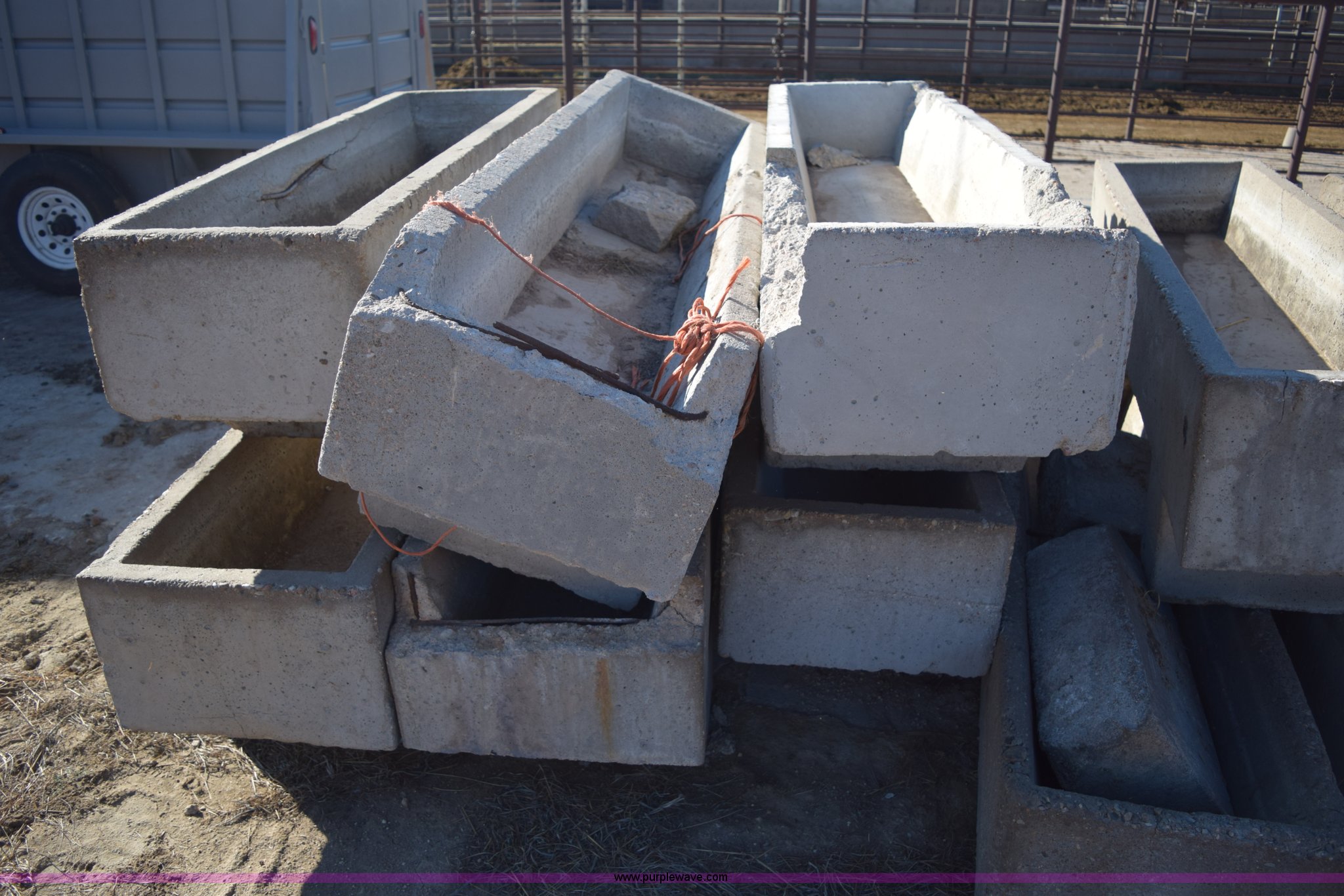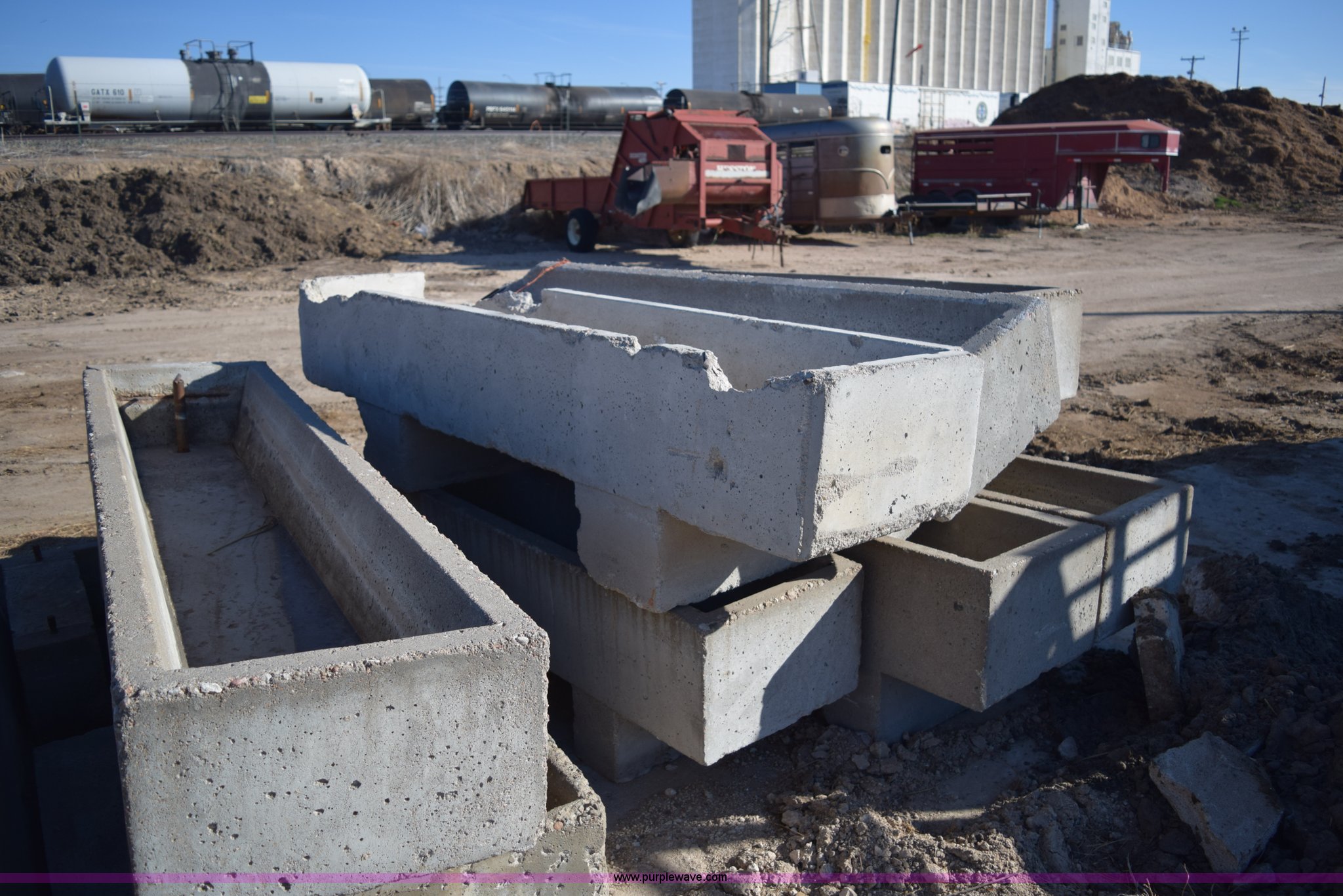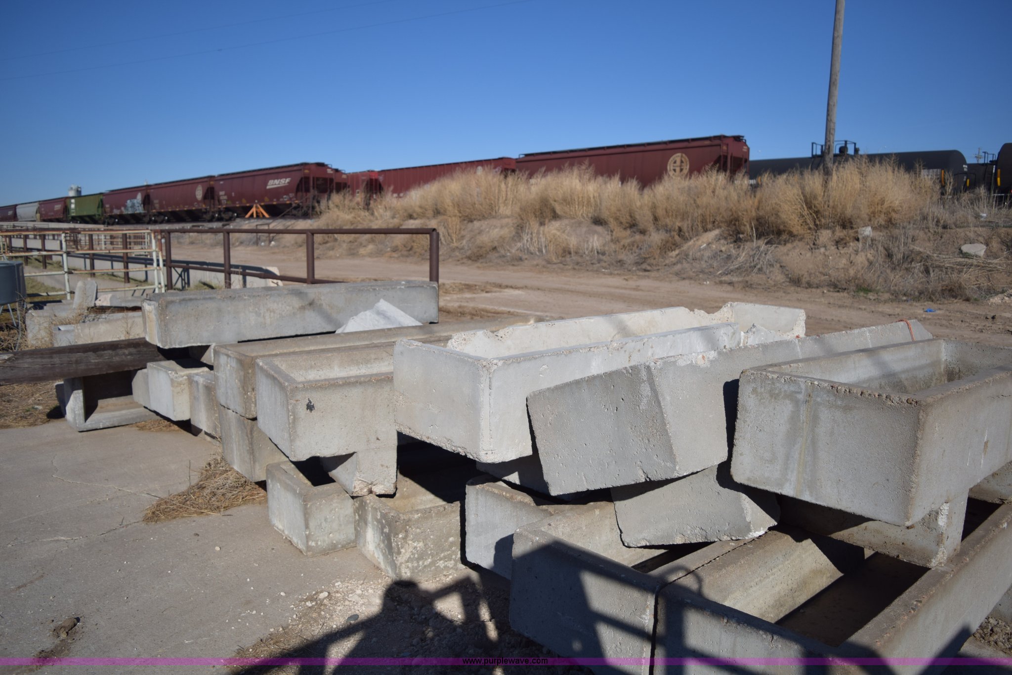 Approximately 26 concrete livestock water tanks. 8'L x 20"W x 24"H, 1.5" hole in bottom, Some damaged. Winter Livestock. 1414 E Trail St. Dodge City, KS 67801