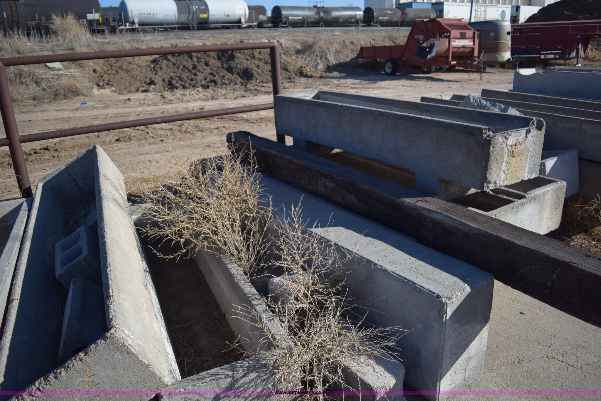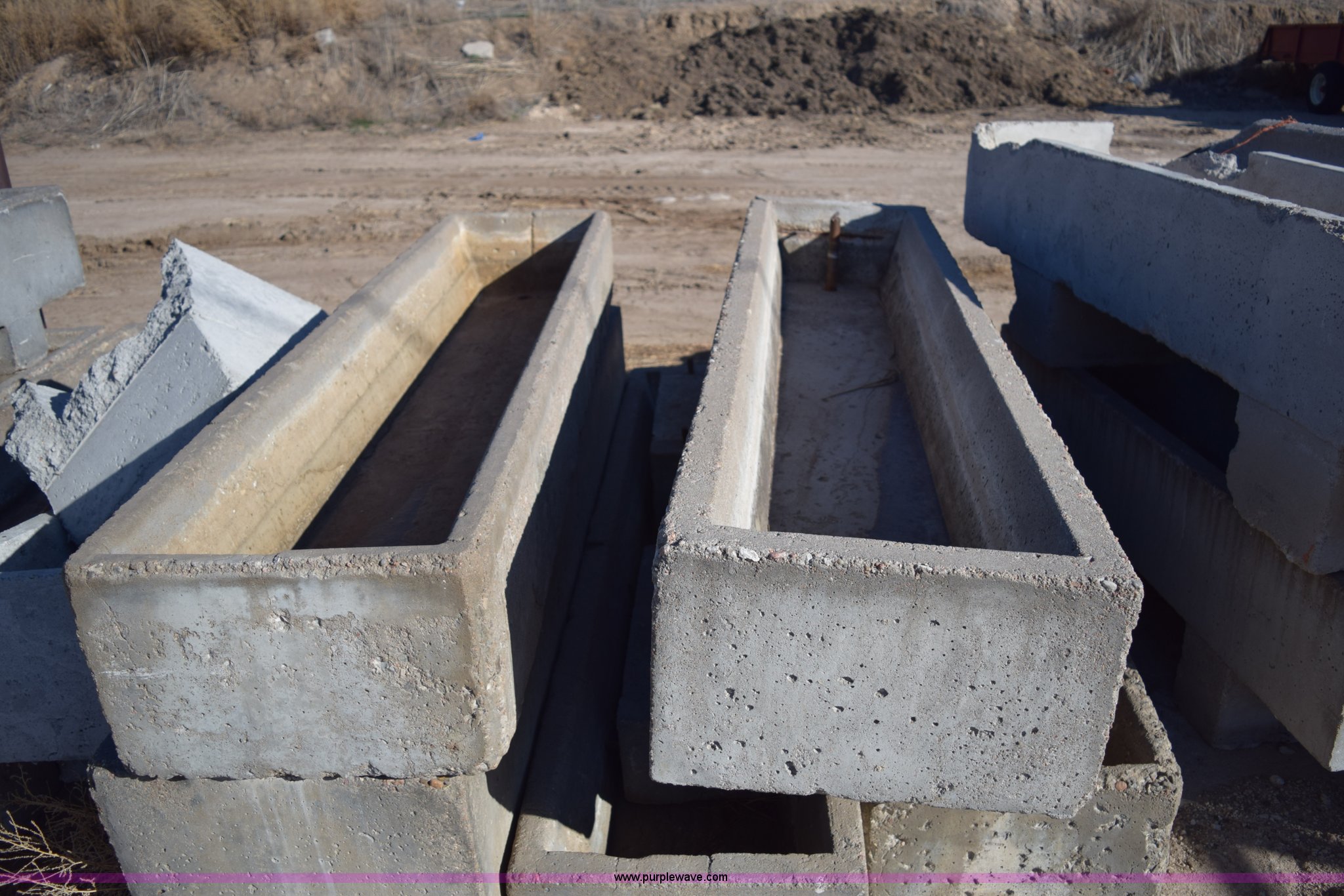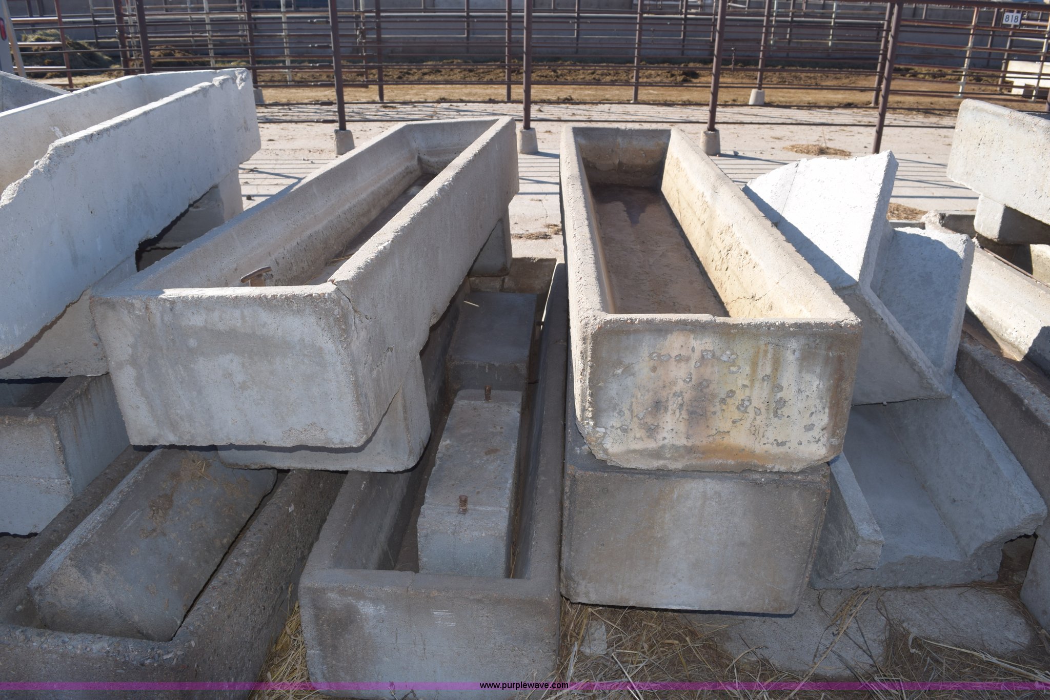 Approximately 26 concrete livestock water tanks. 8'L x 20"W x 24"H, 1.5" hole in bottom, Some damaged. Winter Livestock. 1414 E Trail St. Dodge City, KS 67801