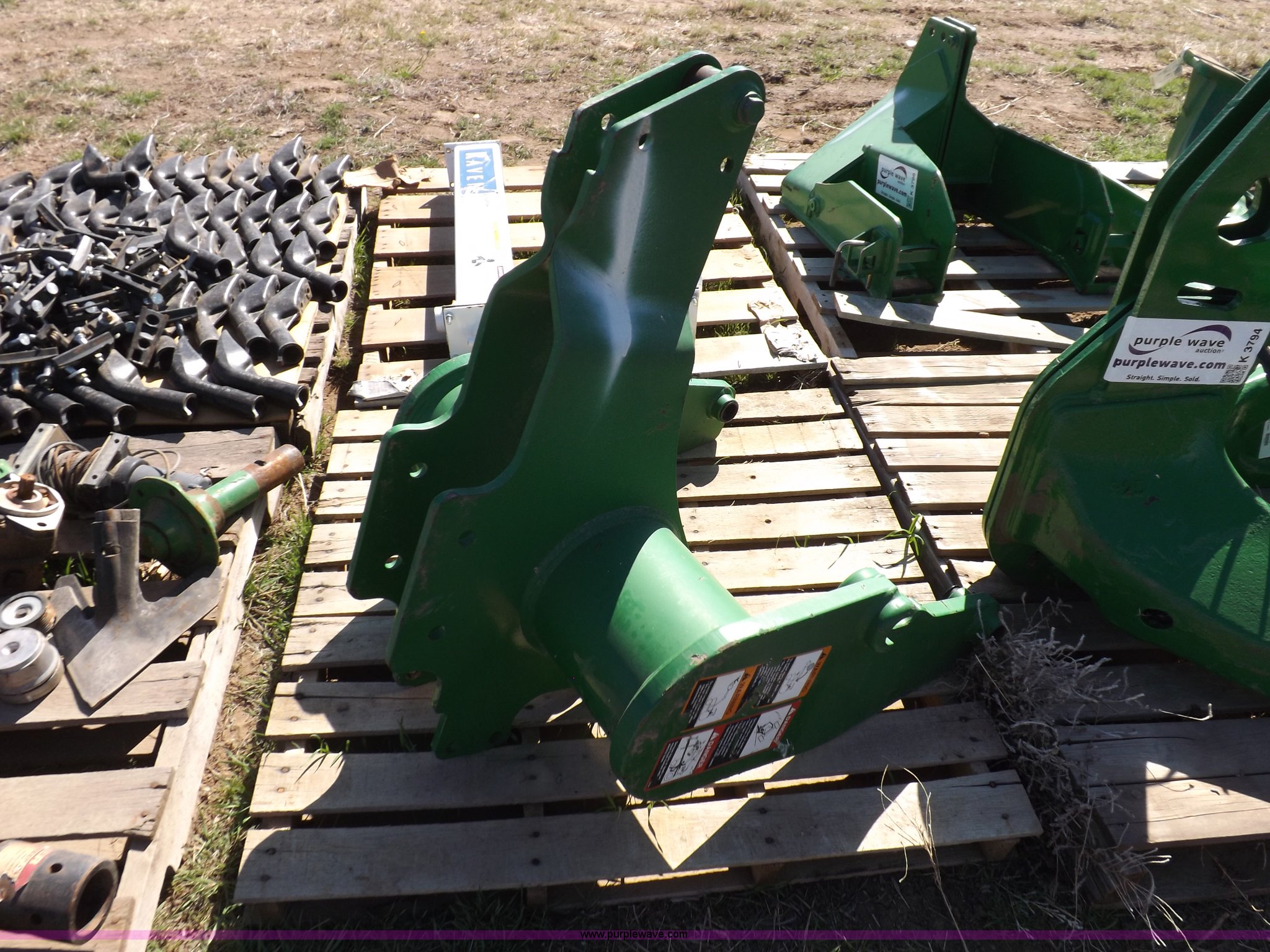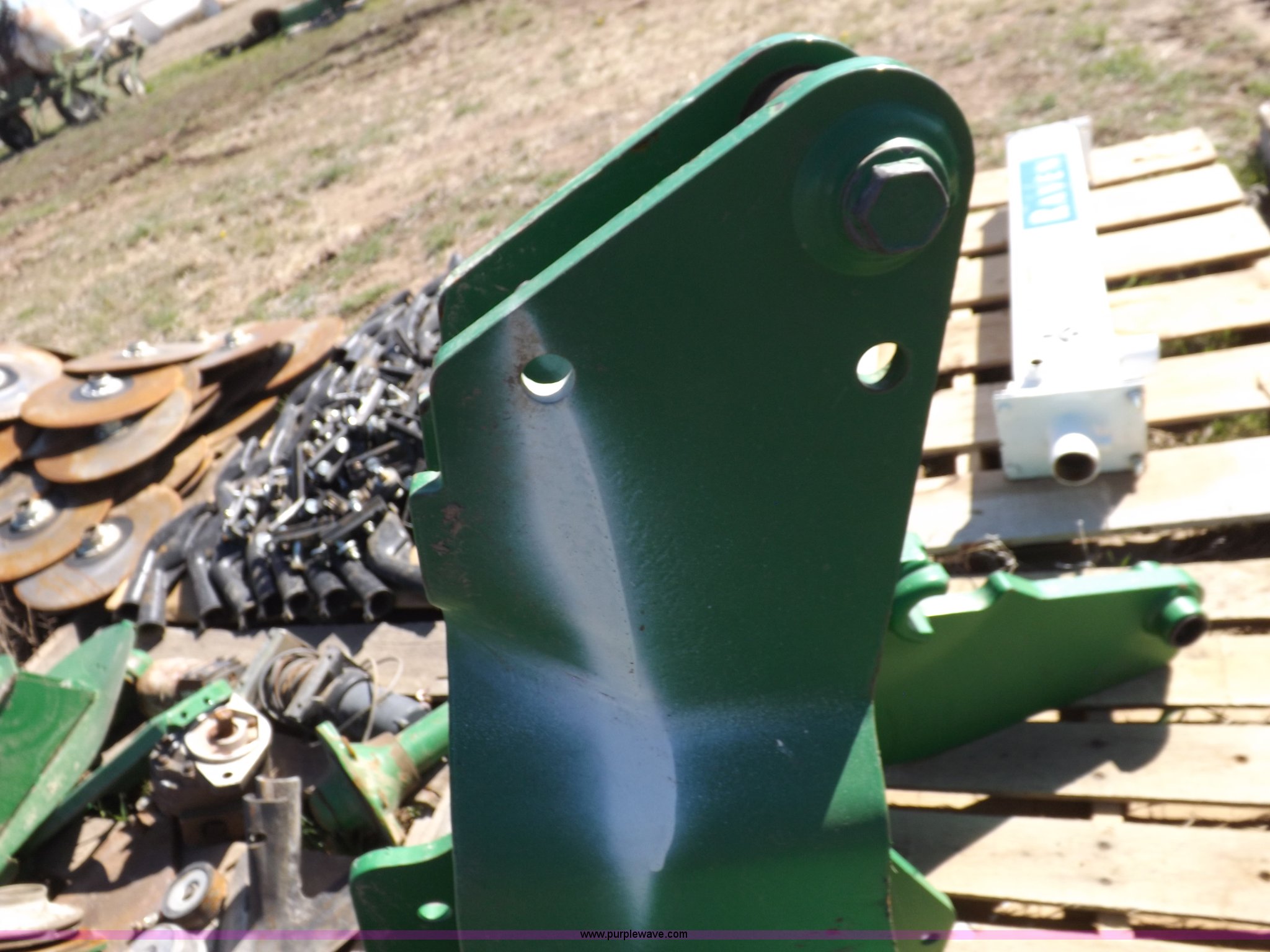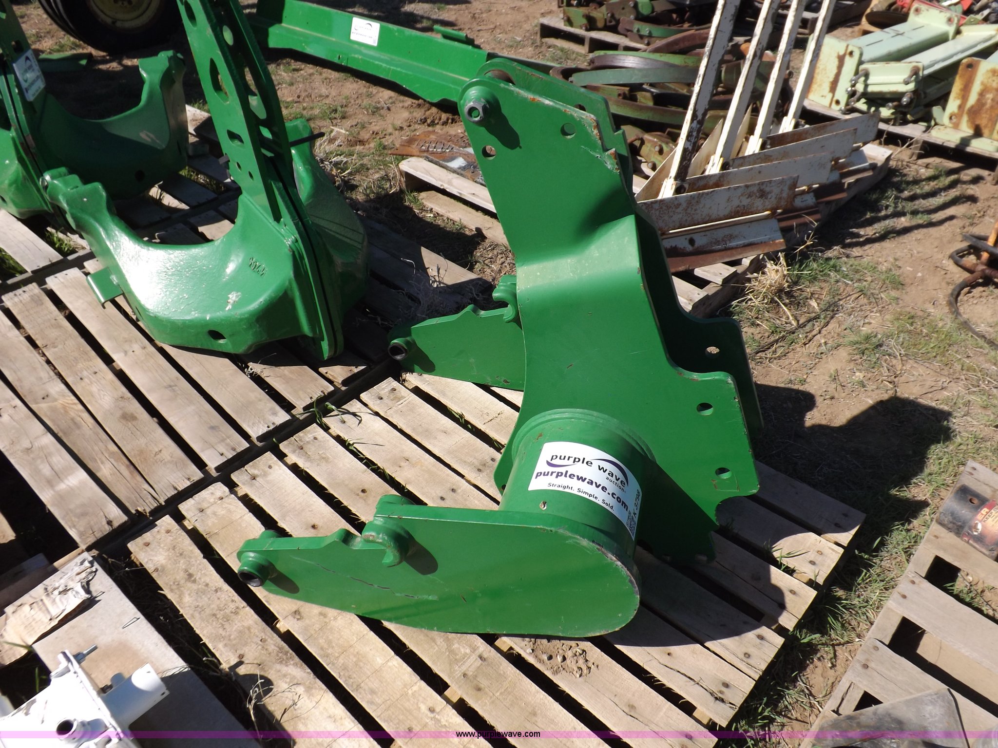 Purple Wave is selling a used Applicator Attach. in Kansas. This item is a John Deere front loader mounting brackets with the following: Unused