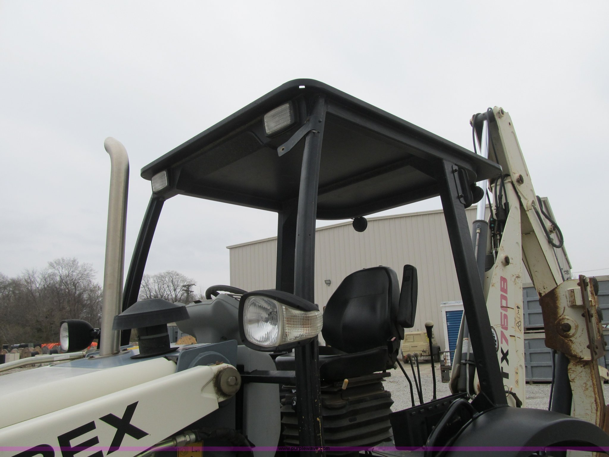 Purple Wave is selling a used Tractor Loader Backhoe in Missouri. This item is a 2007 Terex 760B backhoe with the following: 735 hours on meter, Perkins four cylinder turbo diesel engine, 68.5 kW, Glow plugs, Shuttle shift transmission, 4F-4R gears, Four wheel drive, OROPS, Spring suspension seat, Tilt steering wheel, Wobble stick and foot backhoe controls, Front and rear work lights, Front counter weights, Terex two-way loader bucket, 90"W dozer/scoop, Bolt-on cutting edge, Bucket leveler, Auxiliary hydraulics, Extendable stick, Cannon Terex 840 backhoe bucket, 16"W, (4) teeth, 42" fold up forks, Terex 12.5-80-18 front tires, Terex 19.5-24 rear tires, Serial SMFH44TR07BFM1383