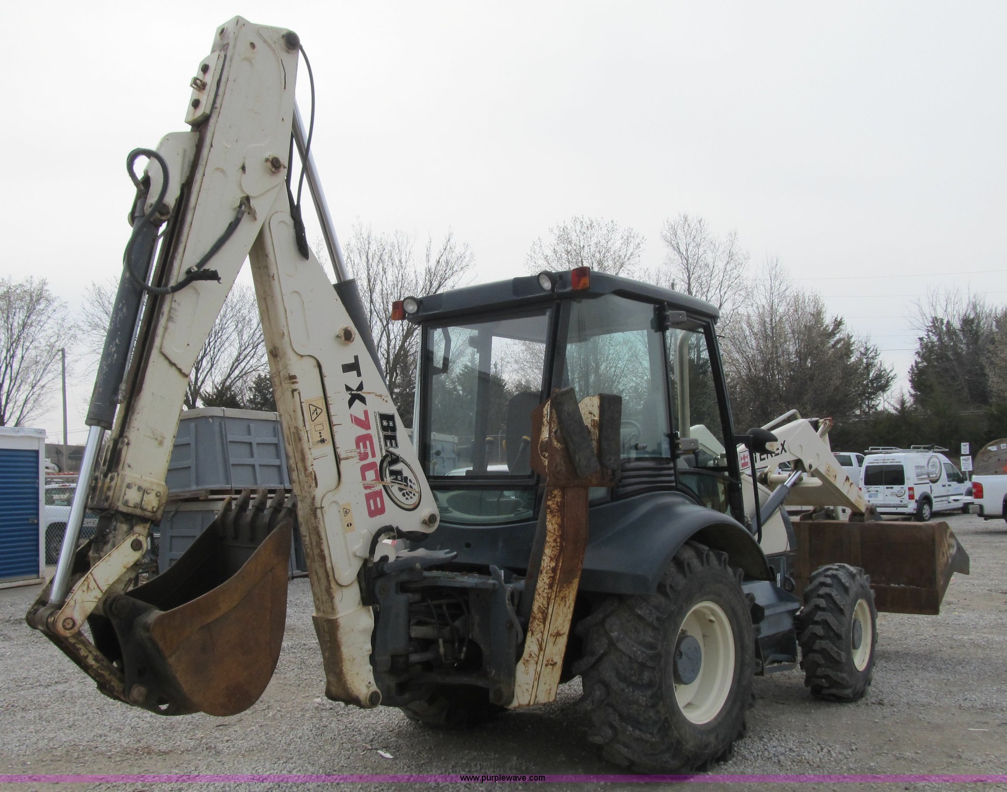 Purple Wave is selling a used Tractor Loader Backhoe in Missouri. This item is a 2007 Terex TX760B backhoe with the following: 1,646 hours on meter, Perkins four cylinder turbo diesel engine, 68.5 kW, Glow plugs, Shuttle shift transmission, 4F-4R gears, Four wheel drive, Enclosed cab, AC and heat, AC compressor belt missing, Unknown operating condition of AC, Spring suspension seat, Wipers, Tilt steering wheel, Front and rear work lights, Front counter weights, Terex 90" loader bucket, Bolt-on cutting edge, Bucket leveler, Extendable stick, Terex 24"W backhoe bucket, Weld-on cutting edge, 12.5-80-18 front tires, 19.5-24 rear tires, Door glass missing, Dump lever on front loader inoperable, Serial SMFH44TC07BFM3191