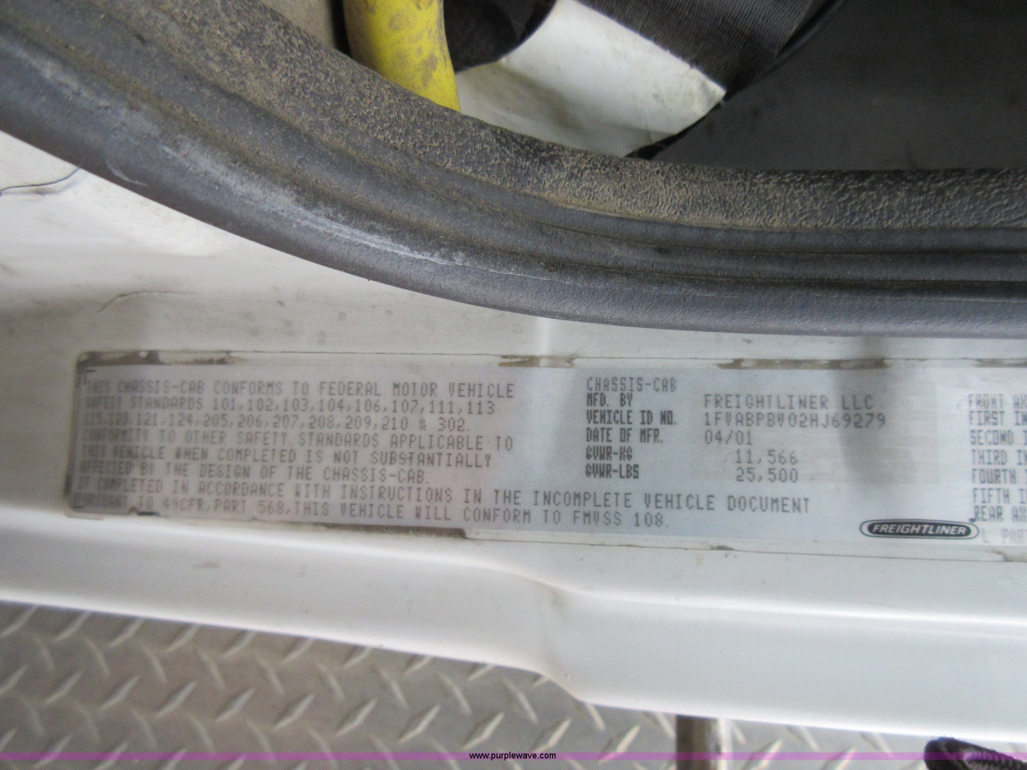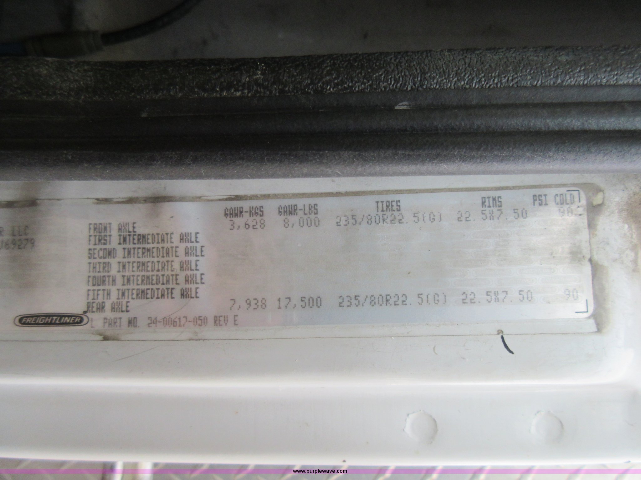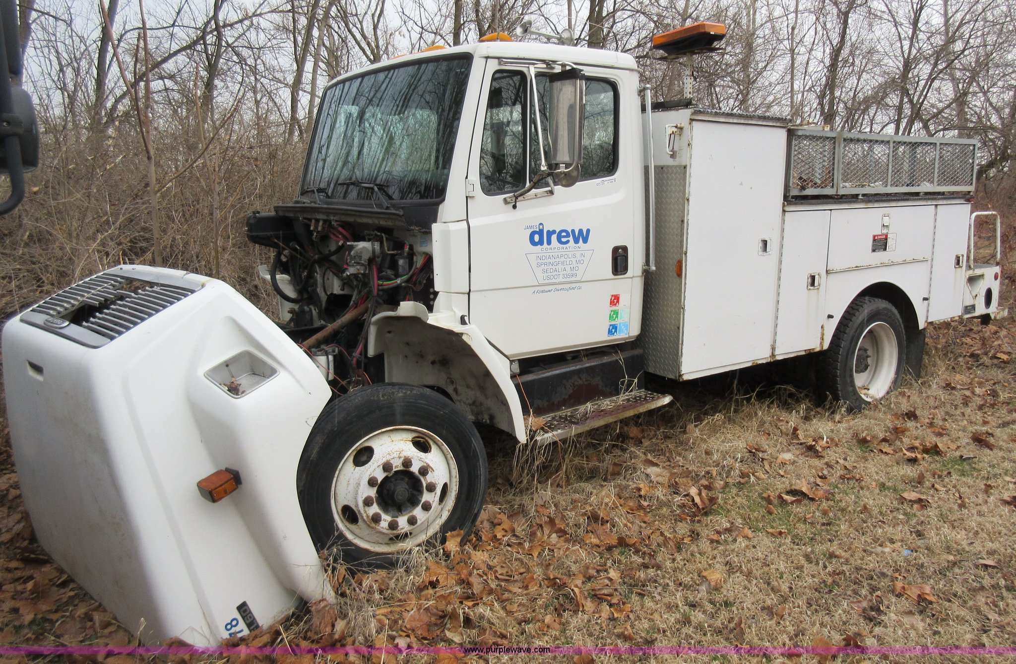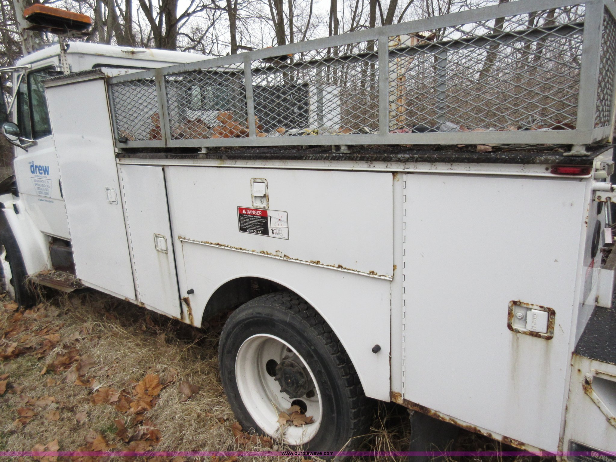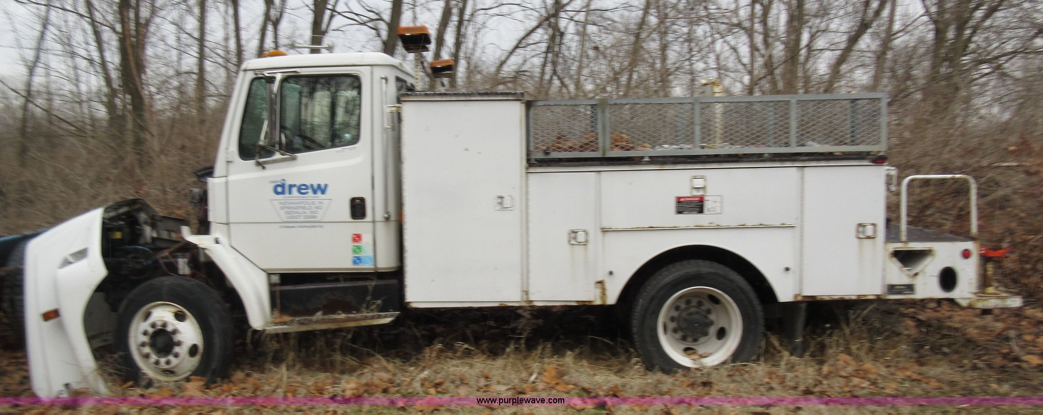 Purple Wave is selling a used Service Truck in Indiana. This item is a 2002 Freightliner FL60 service truck with the following: Unknown miles on odometer, No engine, No transmission, Cruise, Spring suspension seat, Altec service body, Serial 4723303, 245/75R22.5 tires, GVWR 25,500 lbs, FAWR 8,000 lbs, RAWR 17,500 lbs