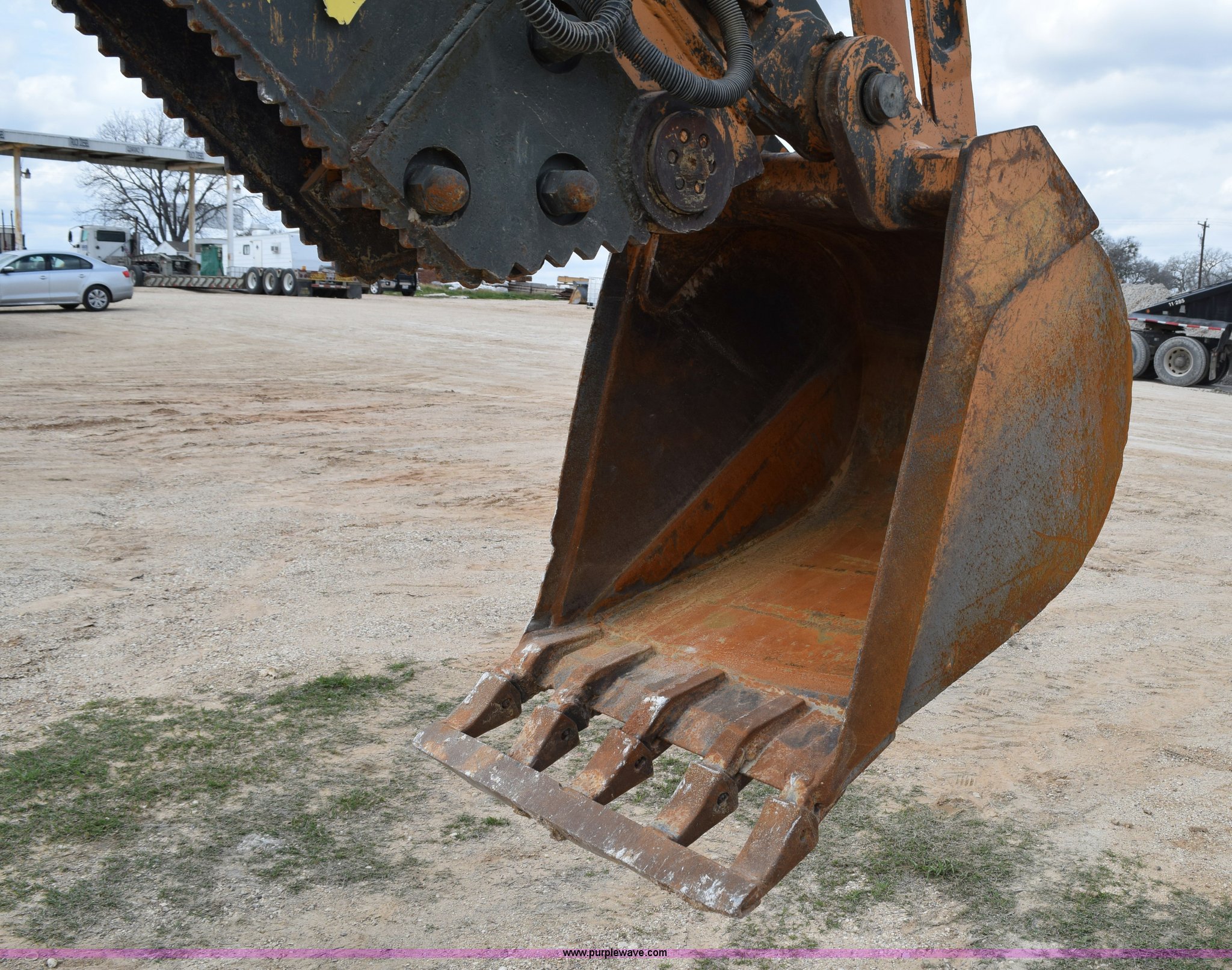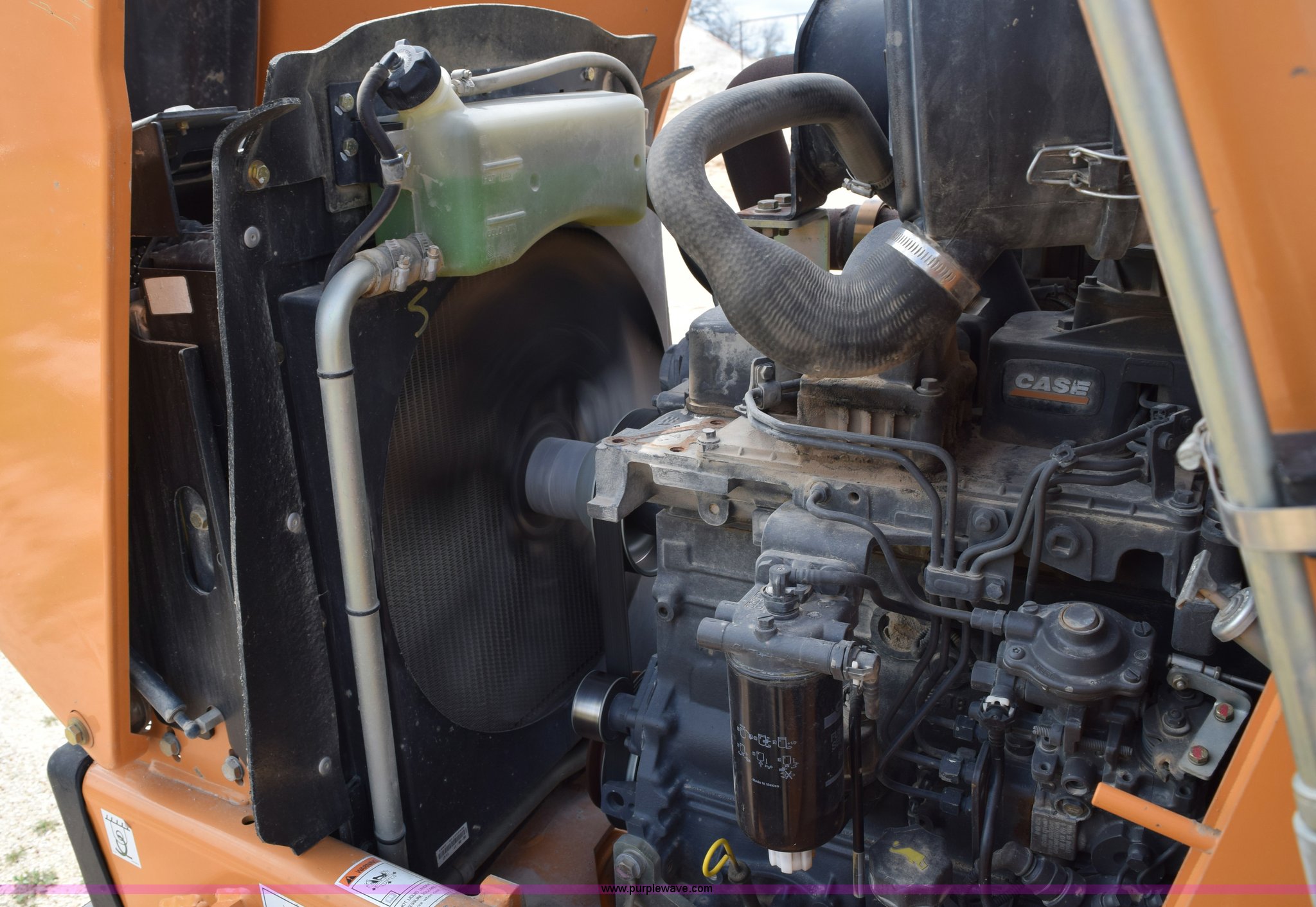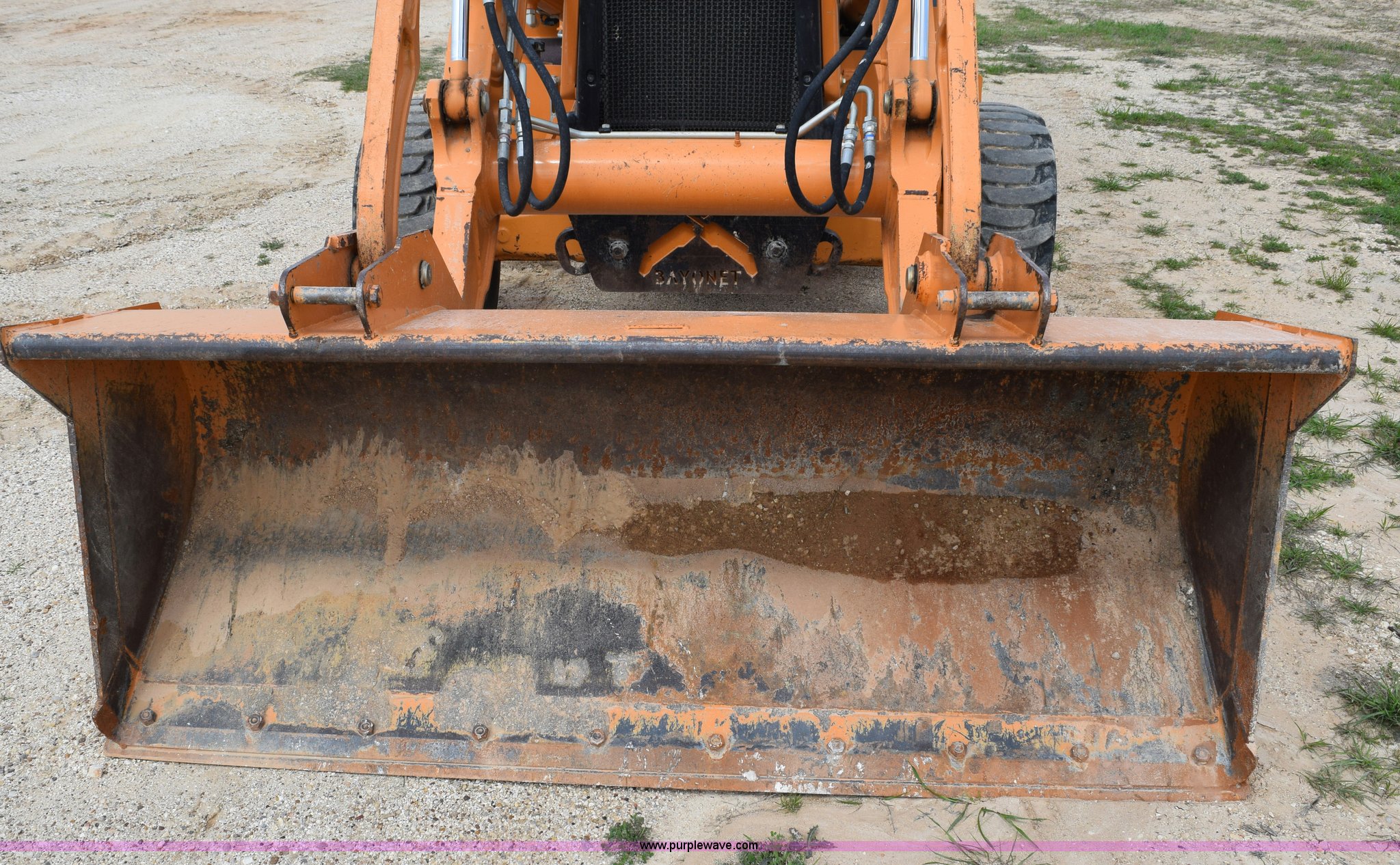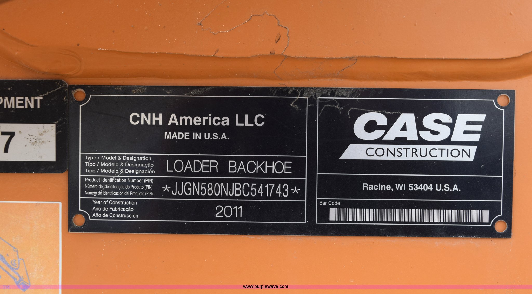 Purple Wave is selling a used Tractor Loader Backhoe in Texas. This item is a 2011 Case 580N backhoe with Bayonet Breaker with the following: 941 hours on meter, Case 445T 4.5L four cylinder turbo diesel engine, 85 HP, Power shuttle synchromesh transmission, 4F-4R gears, Four wheel drive, ROPS, Spring suspension seat, Four stick backhoe controls, Front and rear work lights, Standard front end loader, 82"W bucket, 0.88 cubic yard capacity, Bolt-on cutting edge, 22"W backhoe bucket, Bolt-on cutting edge, 14'9" maximum digging depth, 18'4" reach from swivel, Corporal Bayonet breaker attachment, 800 foot lbs blow class, 800 lbs working weight, 23'4"L x 6'9"W x 10'10"H, 7' wheelbase, 12 x 16.5 front tires, Goodyear 19.5L-24 rear tires, Serial JJGN580NJBC541743