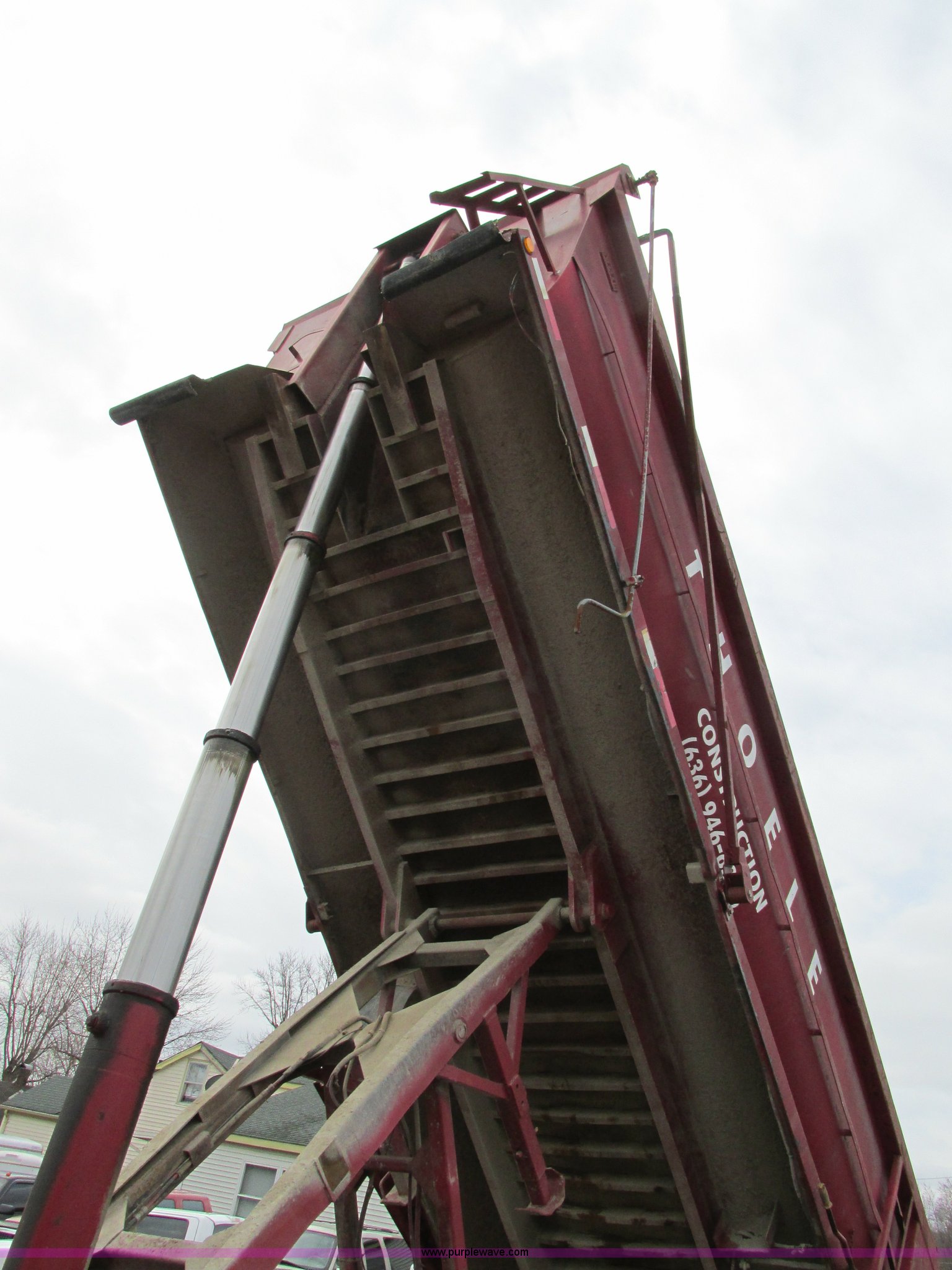 Purple Wave is selling a used Dump Trailer in Missouri. This item is a 1988 Dierzen Dominator barrel dump trailer with the following: 22'L x 8'W, Zamzow manual roll-over tarp, Front to rear operation, Five stage hoist, Two built-in ladders, Dual leg landing gear, Mud flaps, Manual tailgate release, Can be operated as barn doors or traditional end gate, Spring suspension, Air brakes, Dayton wheels, 11R22.5 tires