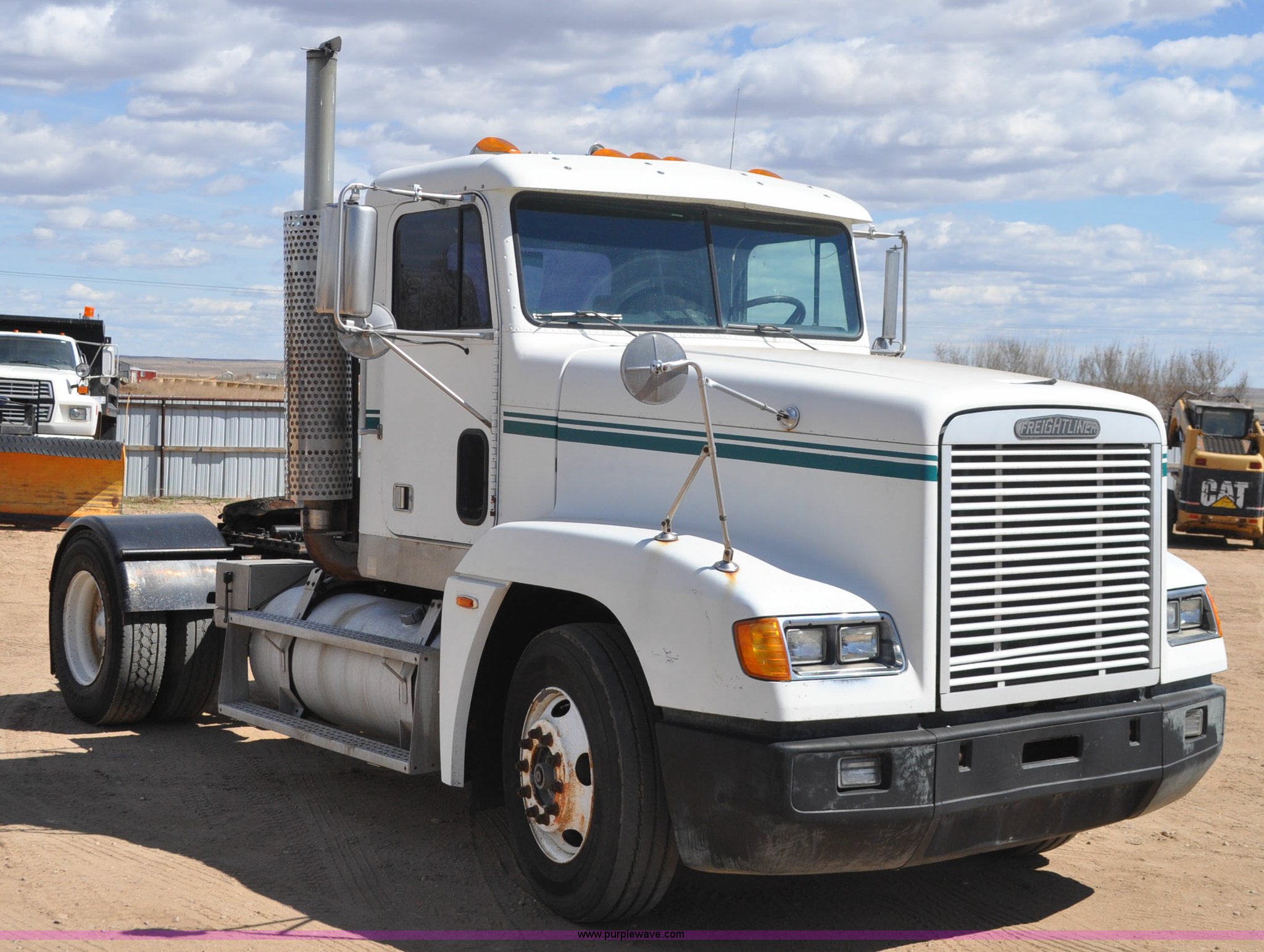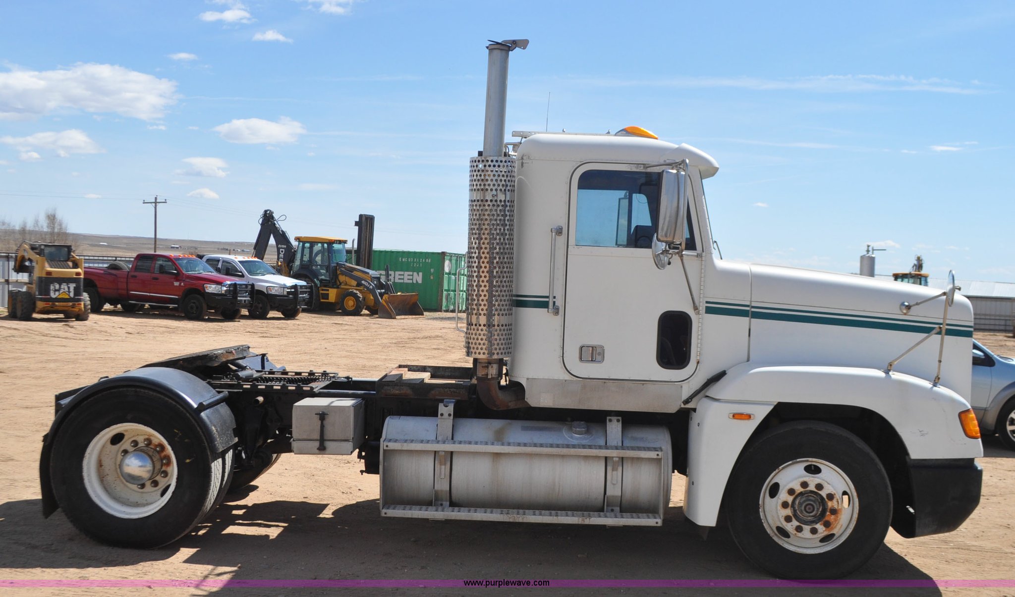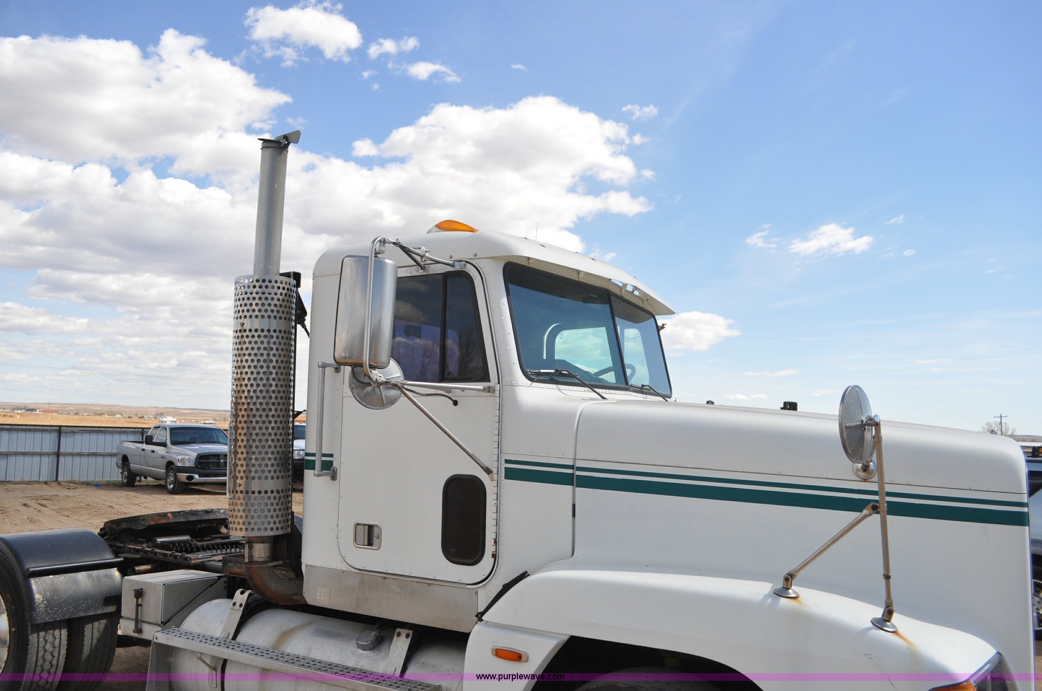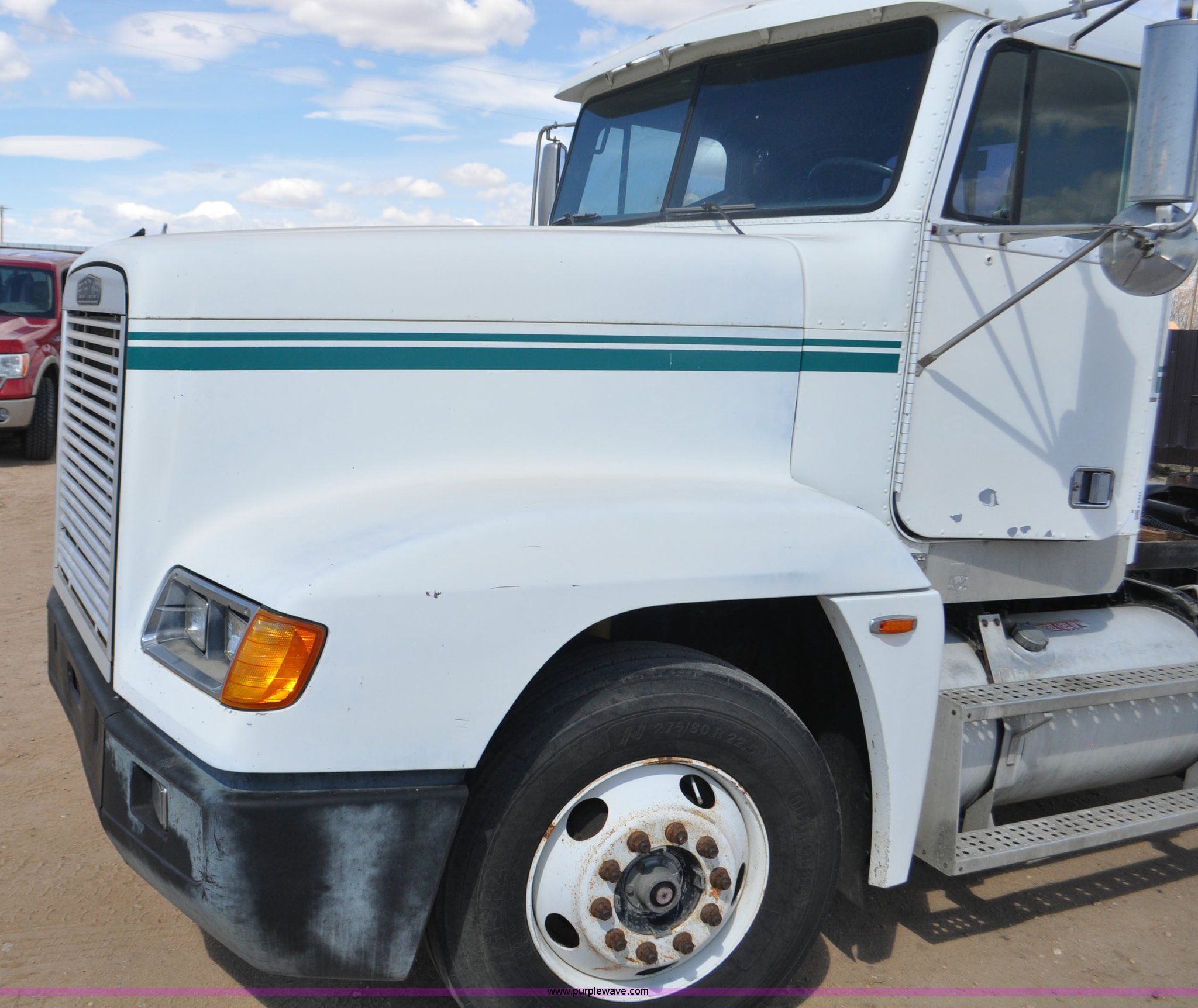 Purple Wave is selling a used Truck Tractor in Colorado. This item is a 1995 Freightliner FLD semi truck with the following: 468,137 miles on odometer, Detroit Diesel Series 60 11.1L diesel engine, 325 HP, Eaton Fuller nine speed manual transmission, Heat, Cruise, AM/FM, Passenger daylight door, Air suspension seat, Air ride cab, Exterior visor, Air slide fifth wheel plate, Dual 120 gallon fuel tanks, Full fenders, Single rear exhaust stack, Pintle hitch, Dump valves, Air suspension, Air brakes, Jake brake, 165" wheelbase, 275/80R22.5 front tires, 11R22.5 rear tires, GVWR 32,000 lbs, FAWR 12,000 lbs, RAWR 20,000 lbs, Recently replaced batteries