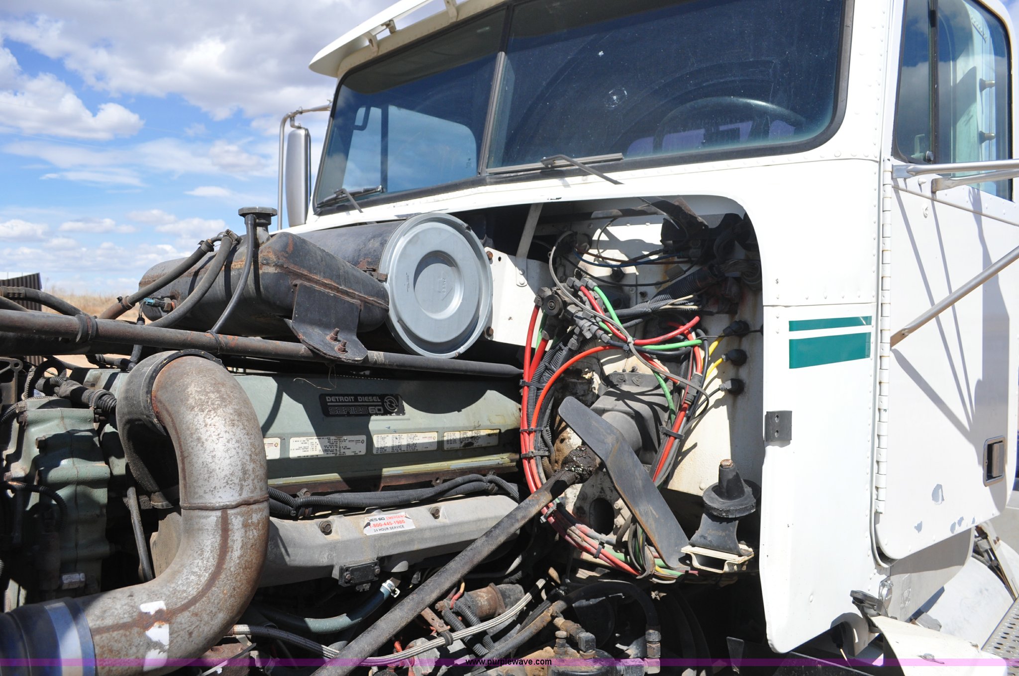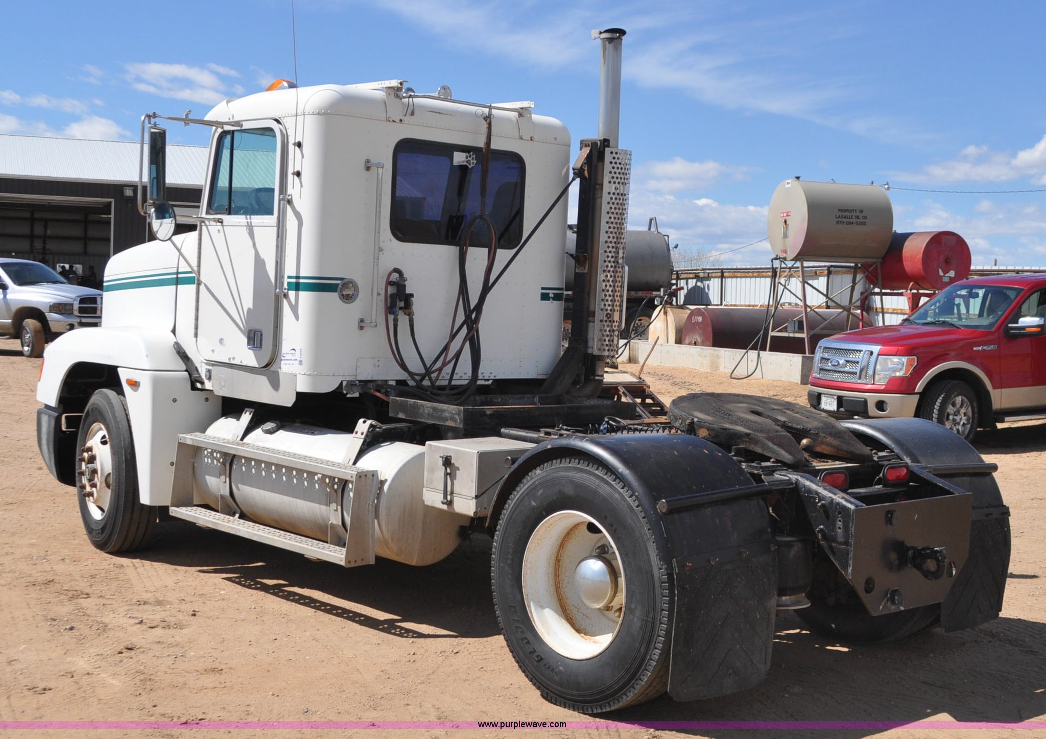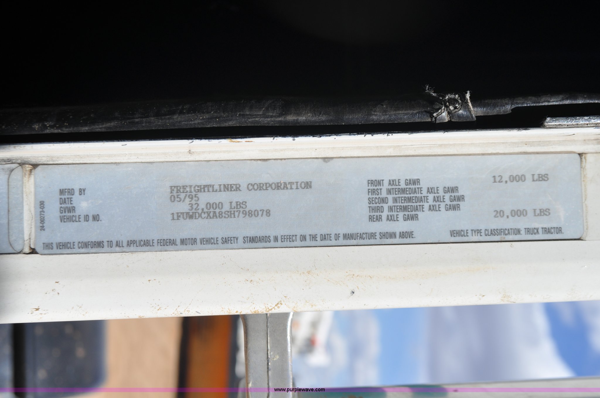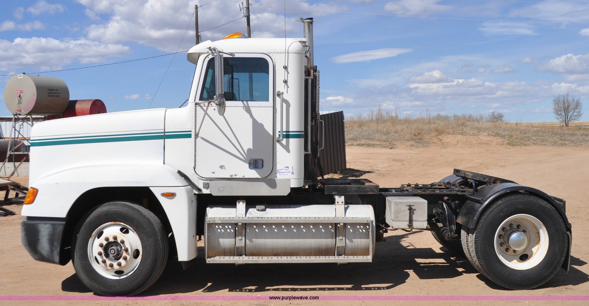 Purple Wave is selling a used Truck Tractor in Colorado. This item is a 1995 Freightliner FLD semi truck with the following: 468,137 miles on odometer, Detroit Diesel Series 60 11.1L diesel engine, 325 HP, Eaton Fuller nine speed manual transmission, Heat, Cruise, AM/FM, Passenger daylight door, Air suspension seat, Air ride cab, Exterior visor, Air slide fifth wheel plate, Dual 120 gallon fuel tanks, Full fenders, Single rear exhaust stack, Pintle hitch, Dump valves, Air suspension, Air brakes, Jake brake, 165" wheelbase, 275/80R22.5 front tires, 11R22.5 rear tires, GVWR 32,000 lbs, FAWR 12,000 lbs, RAWR 20,000 lbs, Recently replaced batteries