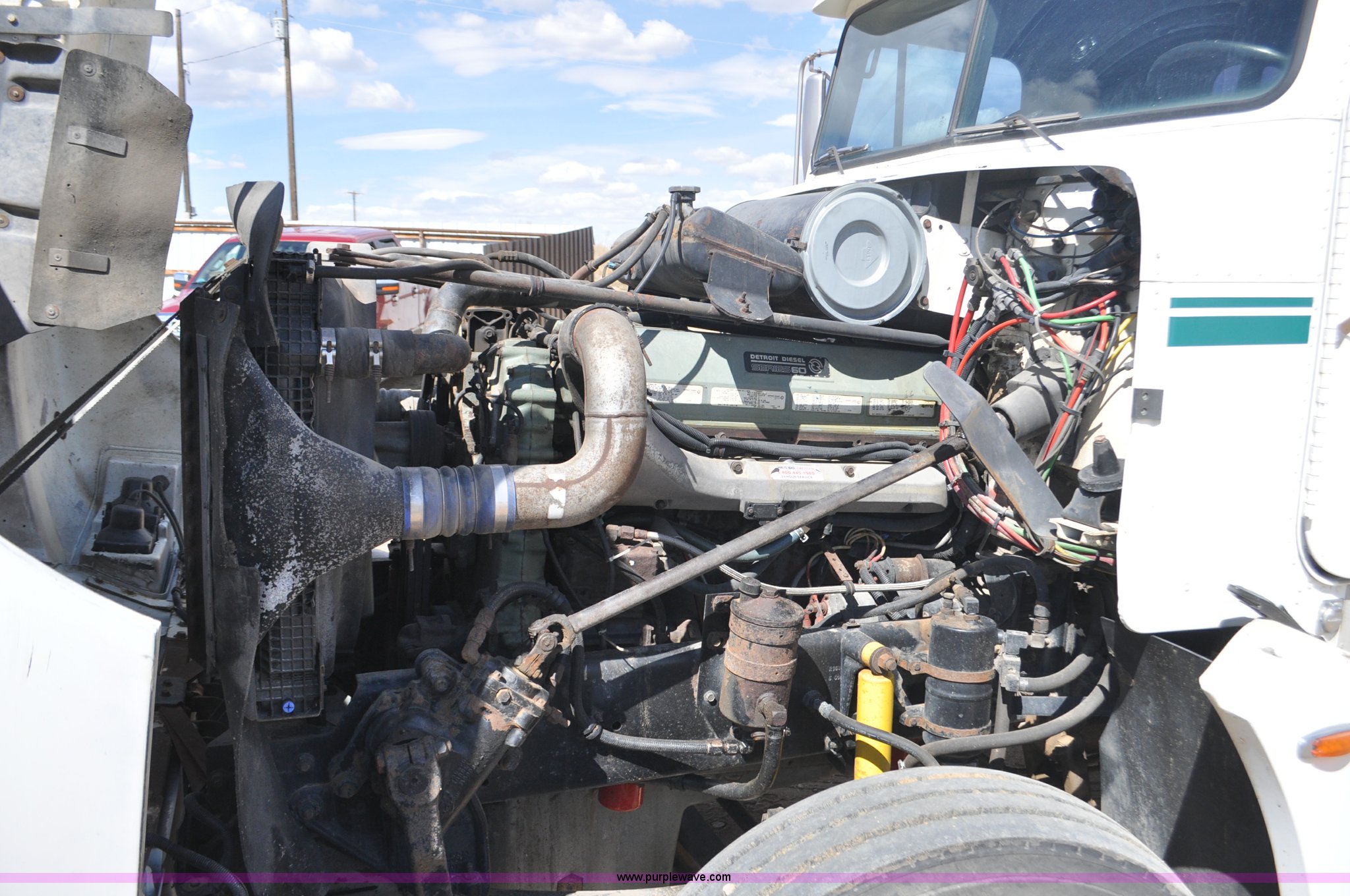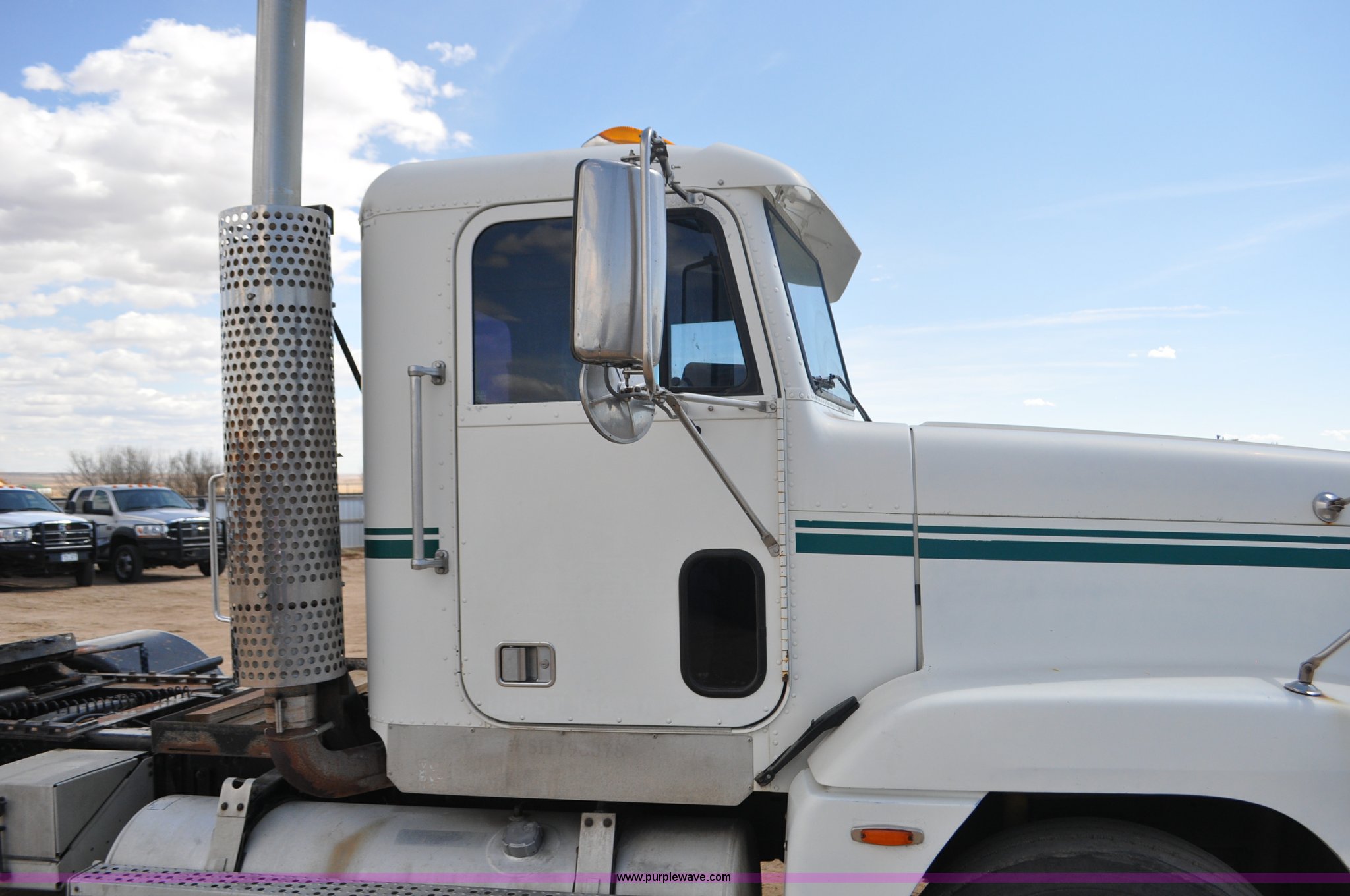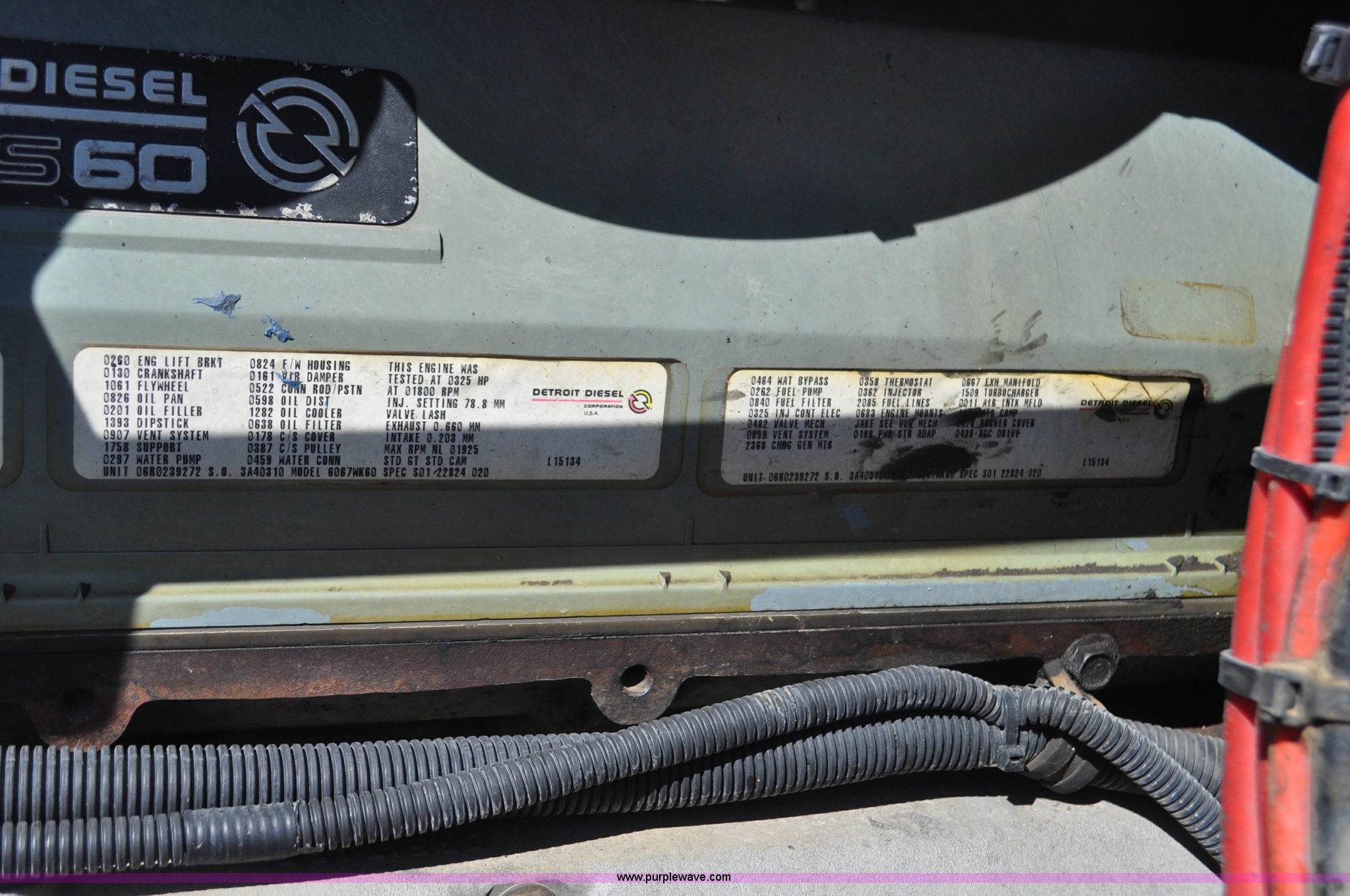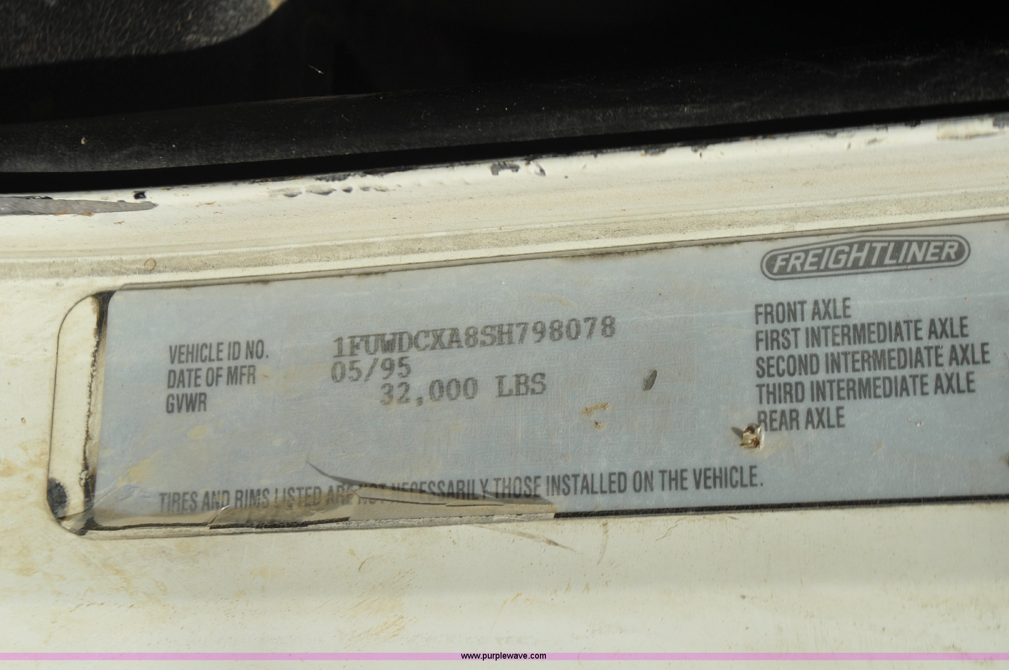 Purple Wave is selling a used Truck Tractor in Colorado. This item is a 1995 Freightliner FLD semi truck with the following: 468,137 miles on odometer, Detroit Diesel Series 60 11.1L diesel engine, 325 HP, Eaton Fuller nine speed manual transmission, Heat, Cruise, AM/FM, Passenger daylight door, Air suspension seat, Air ride cab, Exterior visor, Air slide fifth wheel plate, Dual 120 gallon fuel tanks, Full fenders, Single rear exhaust stack, Pintle hitch, Dump valves, Air suspension, Air brakes, Jake brake, 165" wheelbase, 275/80R22.5 front tires, 11R22.5 rear tires, GVWR 32,000 lbs, FAWR 12,000 lbs, RAWR 20,000 lbs, Recently replaced batteries