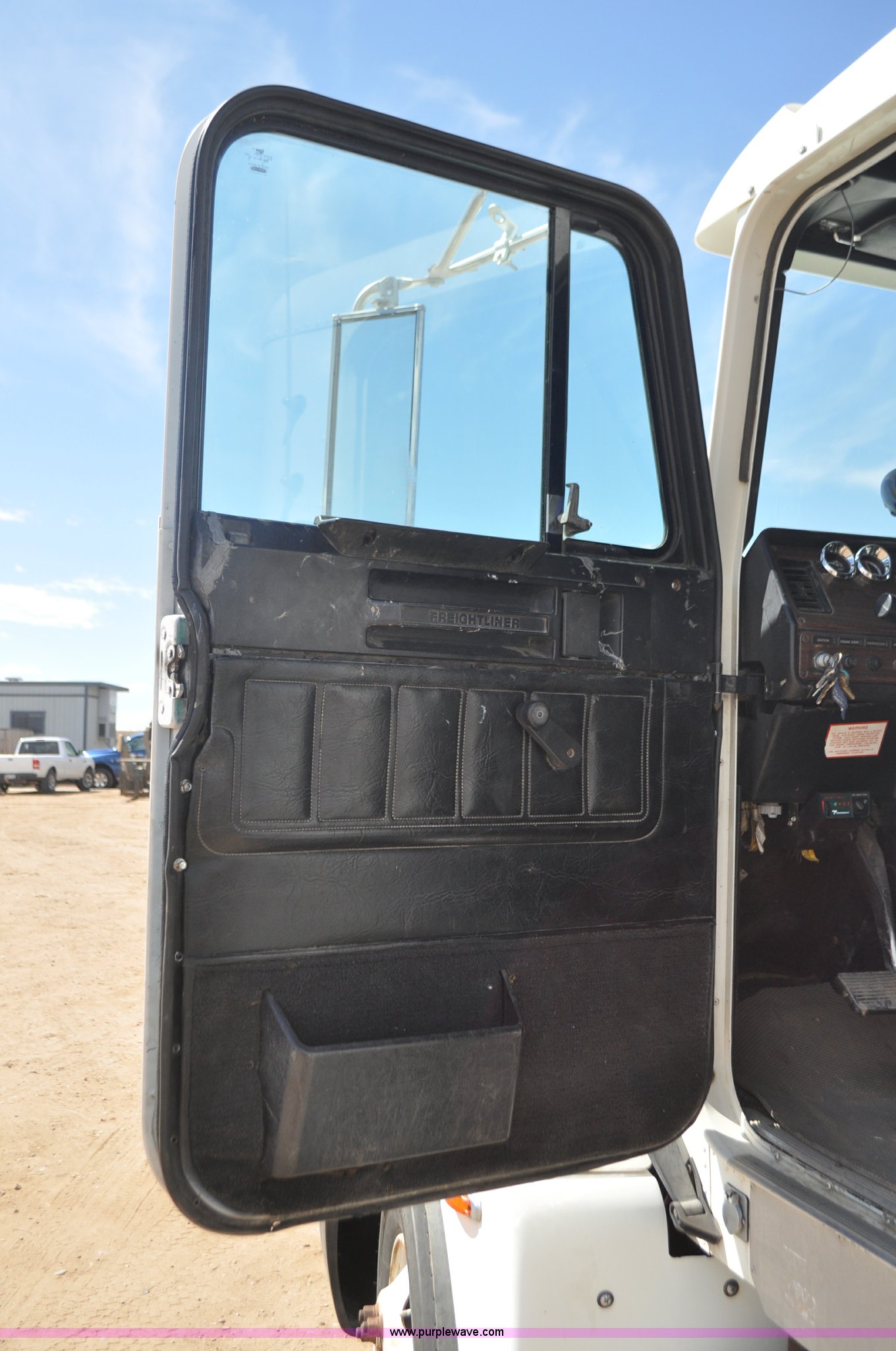 1995 Freightliner FLD semi truck. 468,137 miles on odometer, Detroit Diesel Series 60 11.1L diesel engine 325 HP, Eaton Fuller nine speed manual transmission, Heat, Cruise, AM/FM, Passenger daylight door, Air suspension seat, Air ride cab, Exterior visor, Air slide fifth wheel plate, Dual 120 gallon fuel tanks, Full fenders, Single rear exhaust stack, Pintle hitch, Dump valves, Air suspension, Air brakes, Jake brake, 165" wheelbase, 275/80R22.5 front tires, 11R22.5 rear tires, GVWR 32,000 lbs, FAWR 12,000 lbs, RAWR 20,000 lbs, Recently replaced batteries. 1FUWDCXA8SH798078. 25696 County Road 40. Kersey, CO 80644