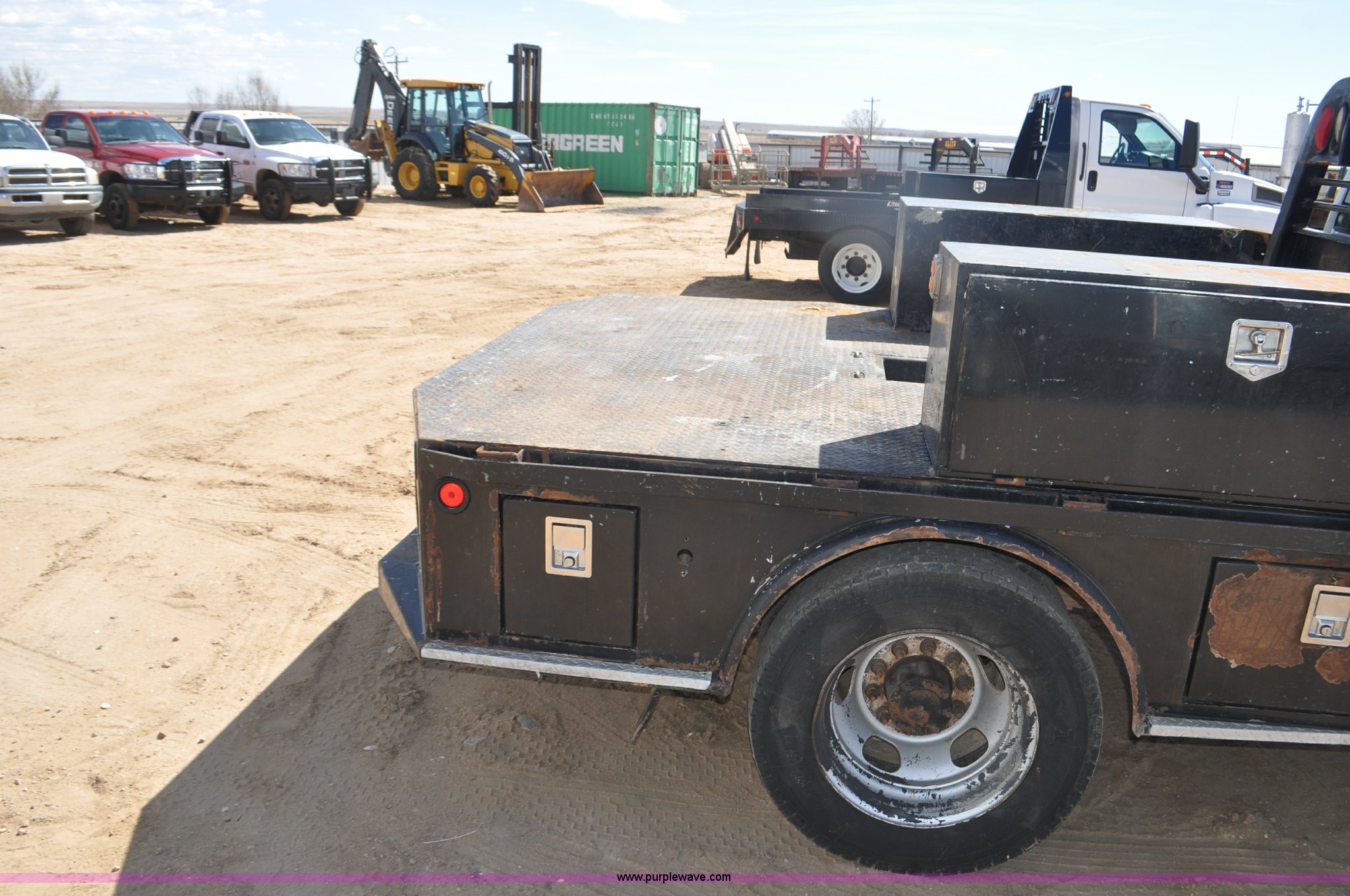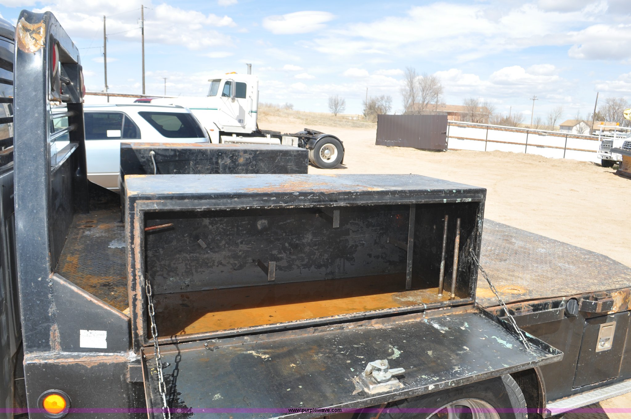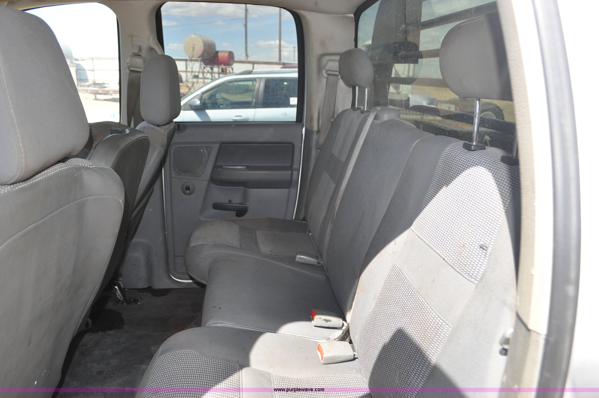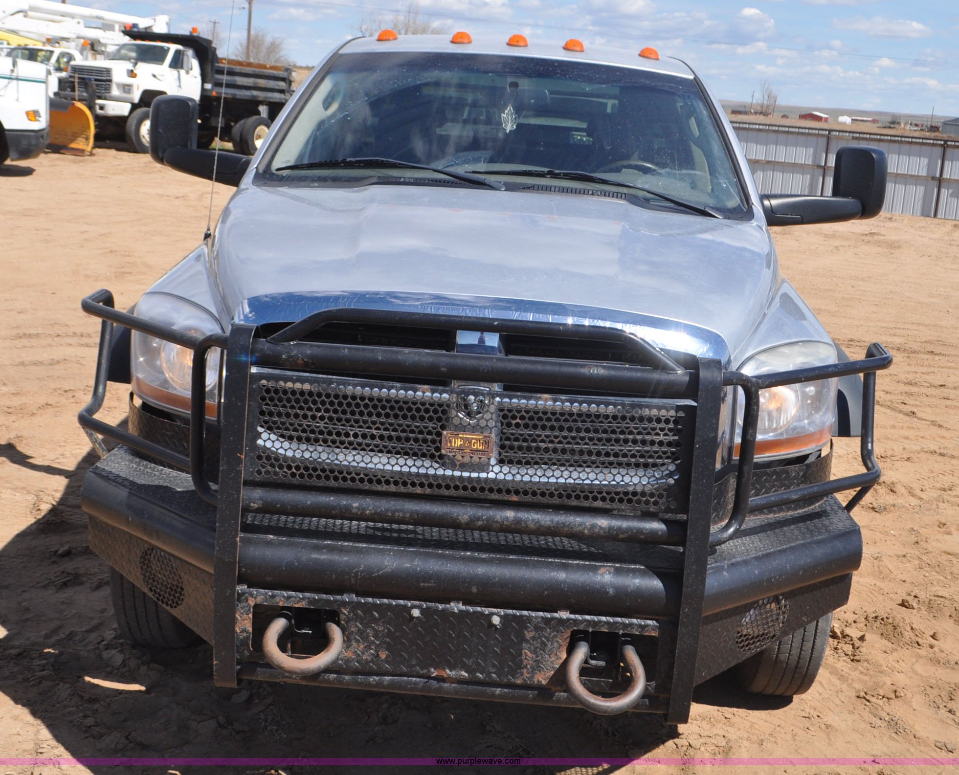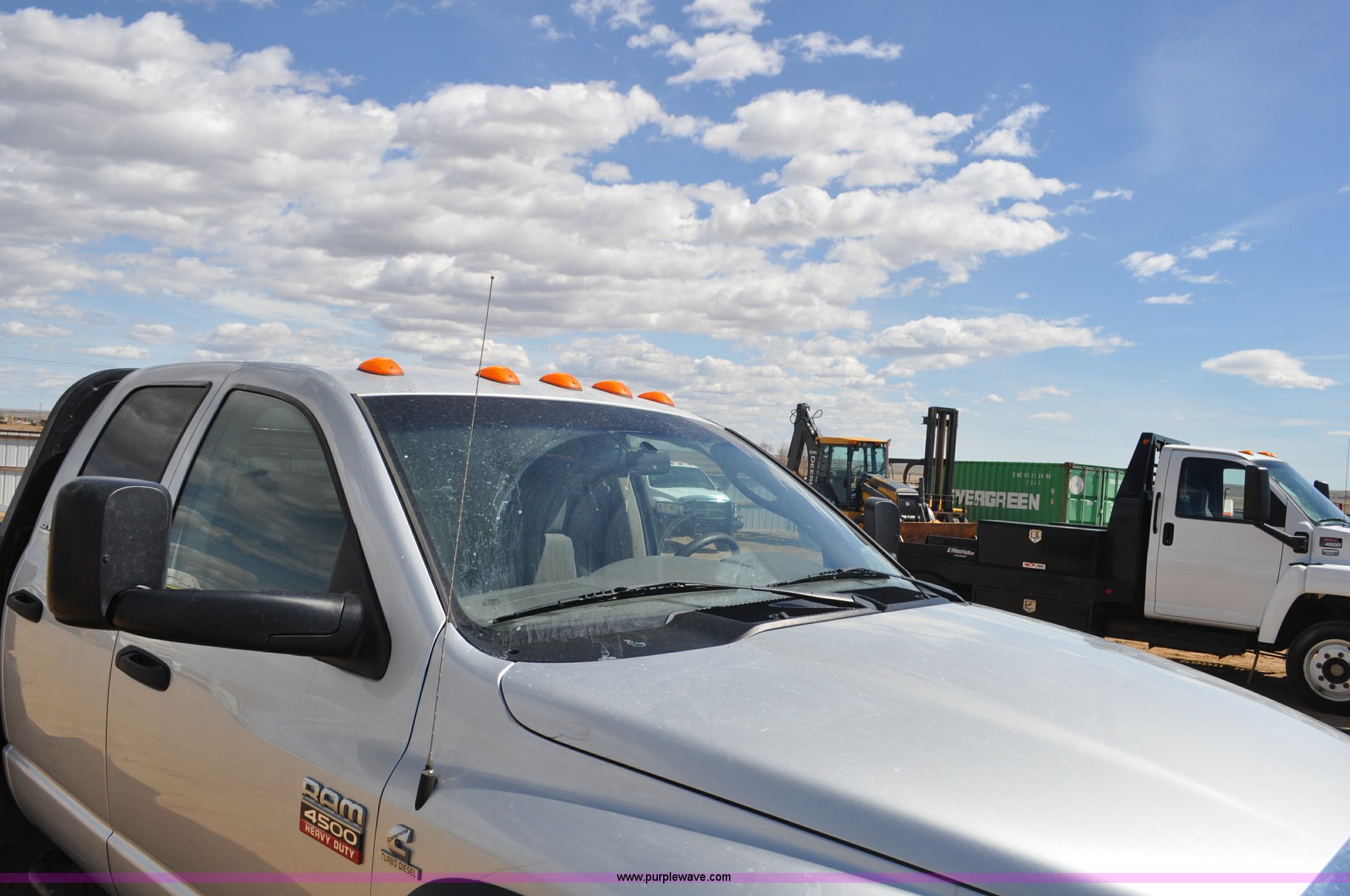 Purple Wave is selling a used Flat Bed Truck in Colorado. This item is a 2009 Dodge Ram 4500HD SLT Quad Cab flatbed truck with the following: 143,628 miles on odometer, 6.7L L6 OHV 24V turbo diesel engine, Automatic transmission, Four wheel drive, Tilt, Cruise, AM/FM/CD, Power windows, locks, mirrors, and seats, Cloth interior, 112"L x 94"W flatbed, Gooseneck hitch, (4) built-in toolboxes, (2) mounted toolboxes, Grill guard, Running boards, Receiver hitch, Trailer wiring, 225/70R19.5 tires, Recently replaced rear window, Interior/exterior cosmetic damage