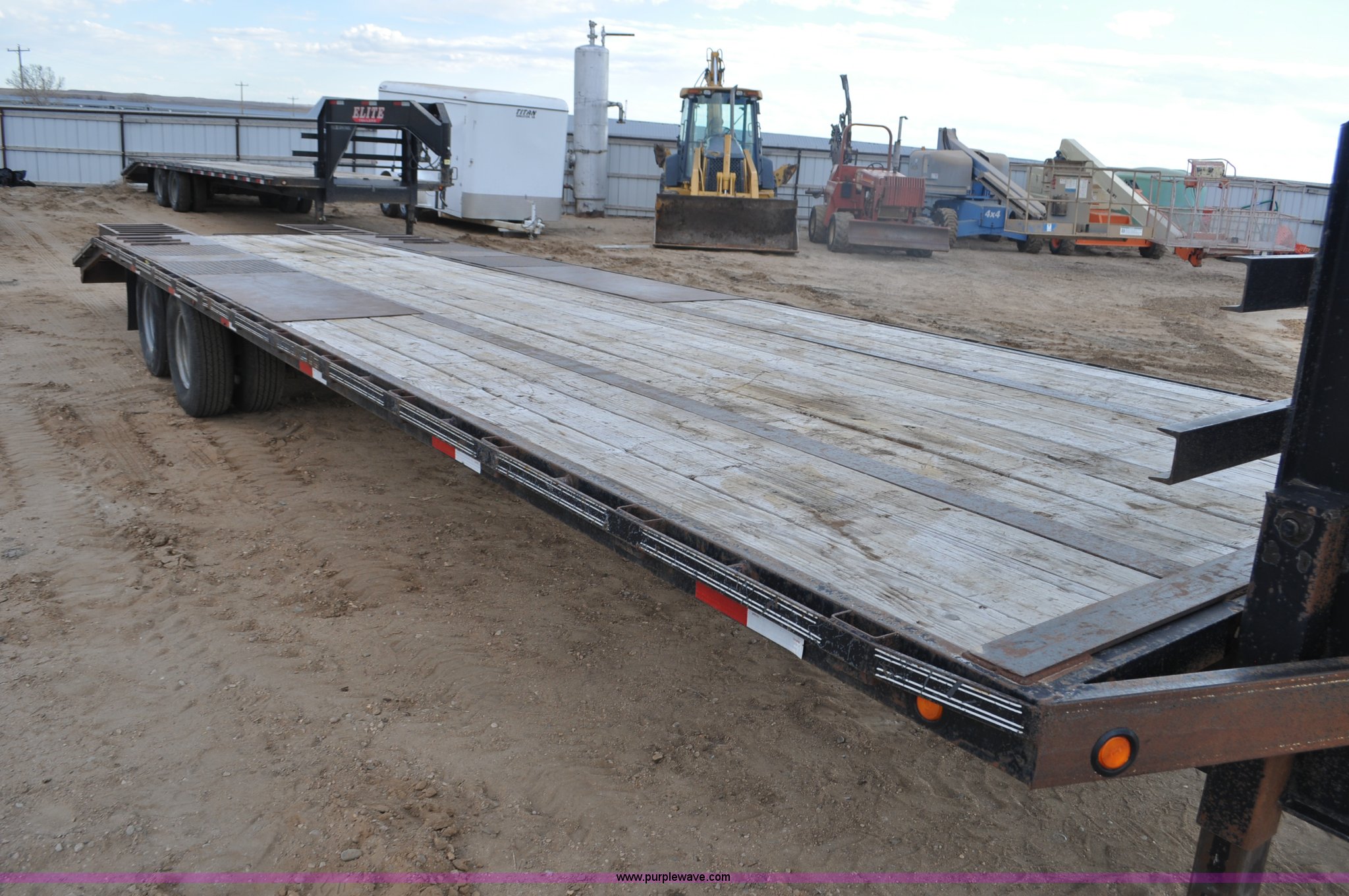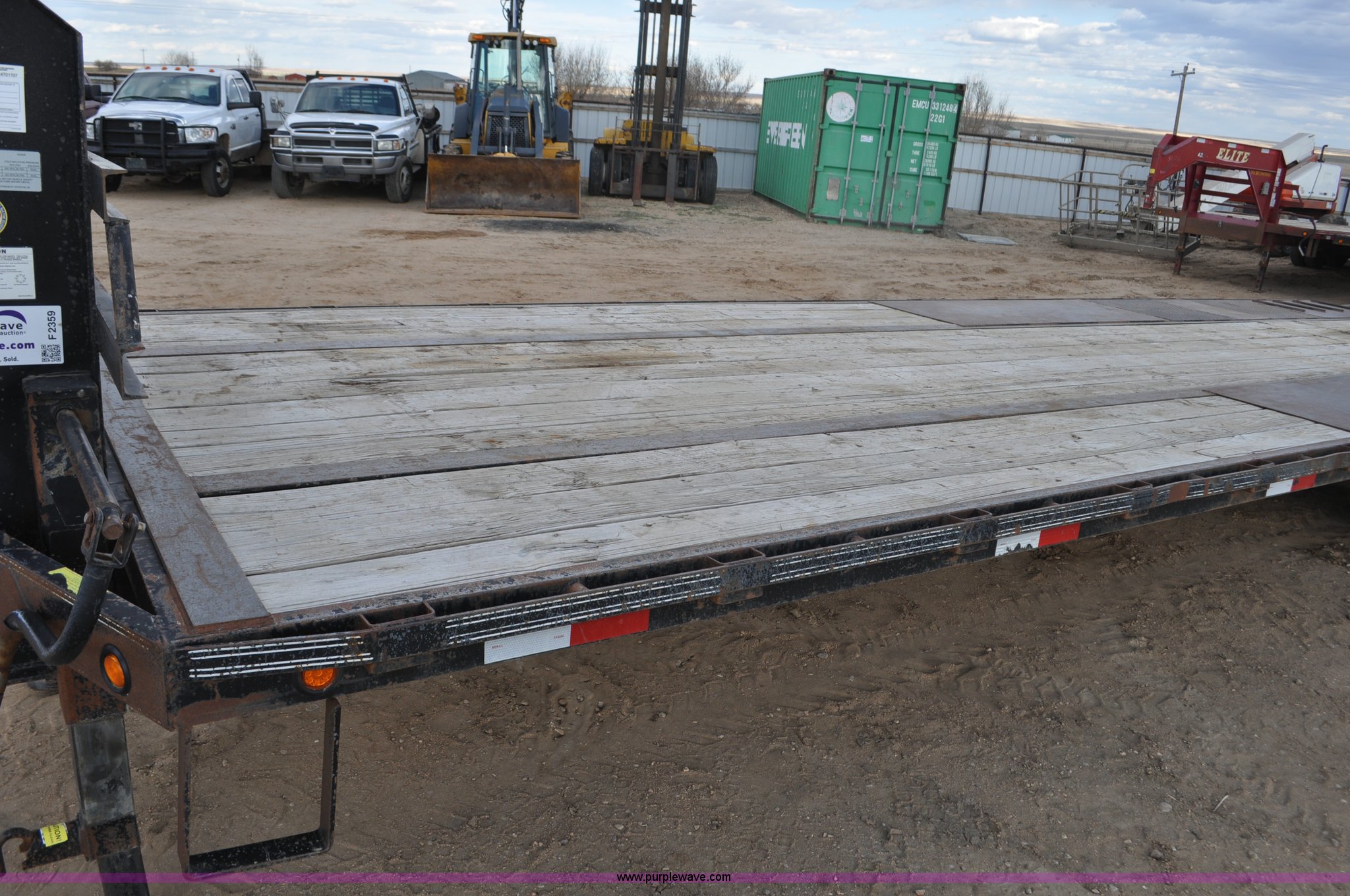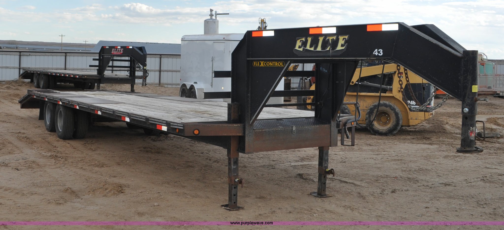 Purple Wave is selling a used Enclosed Cargo Trailer in Colorado. This item is a 2010 Elite GN equipment trailer with the following: 27'L x 102"W deck, 5'L beaver tail, 5'L x 23"W ramps, Dual jack stands, Toolbox, Flex control, Electric brakes, 235/85R16 tires, GVWR 22,500 lbs, FAWR 10,000 lbs, RAWR 10,000 lbs, Straps, boomers, and chains will be removed prior to auction